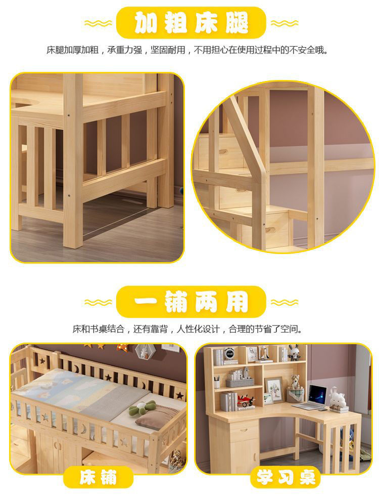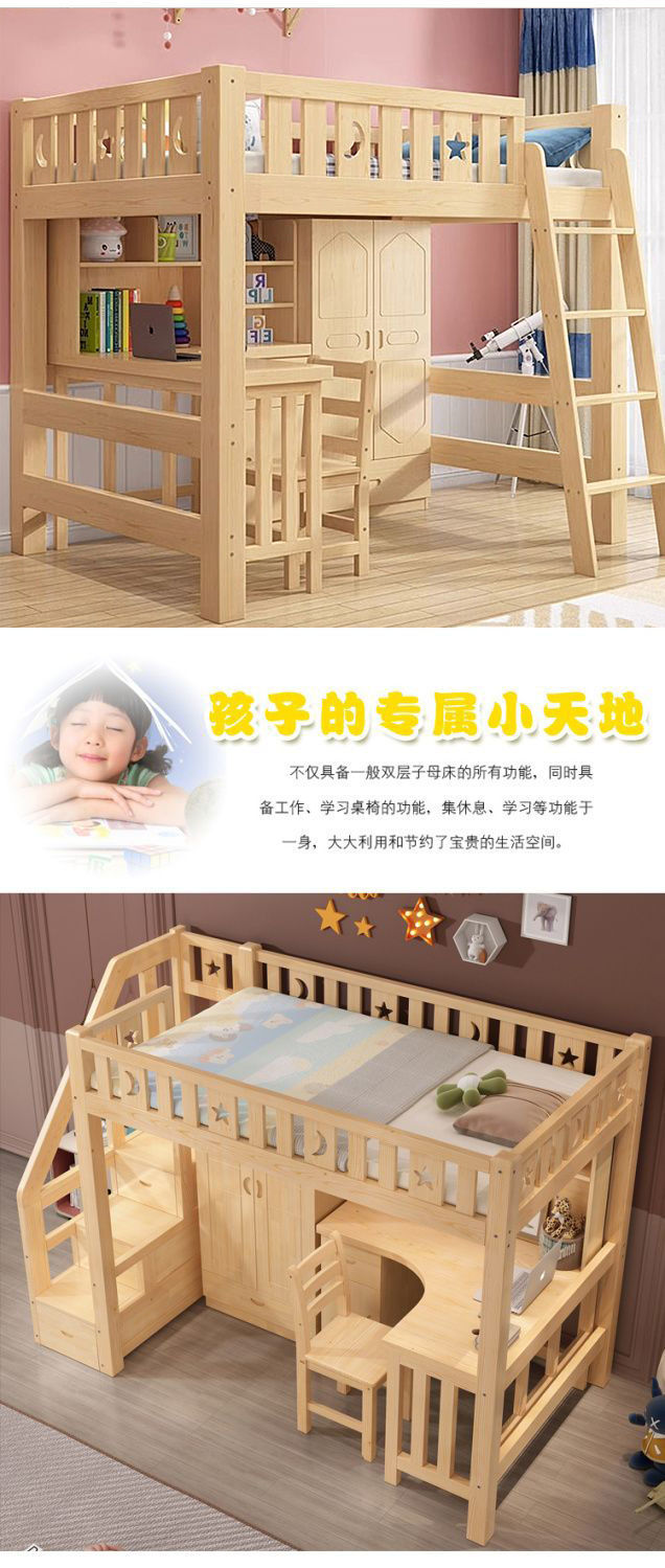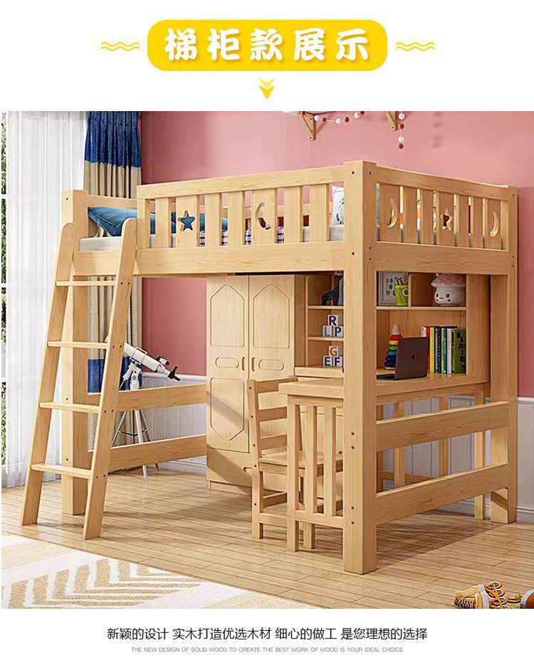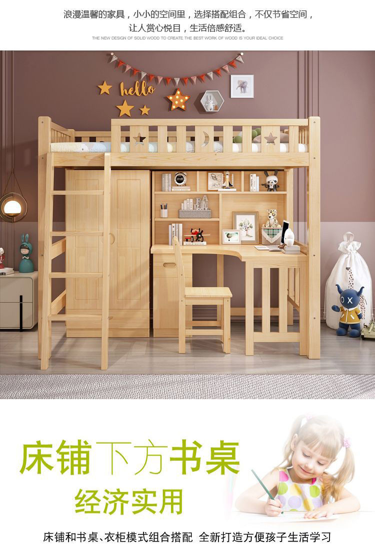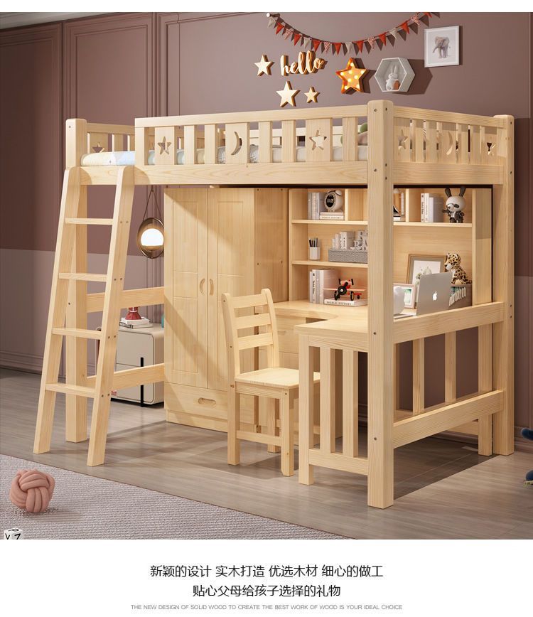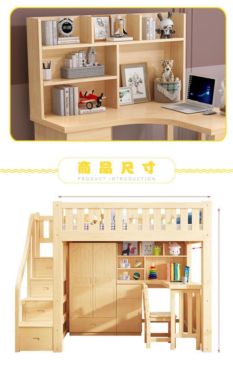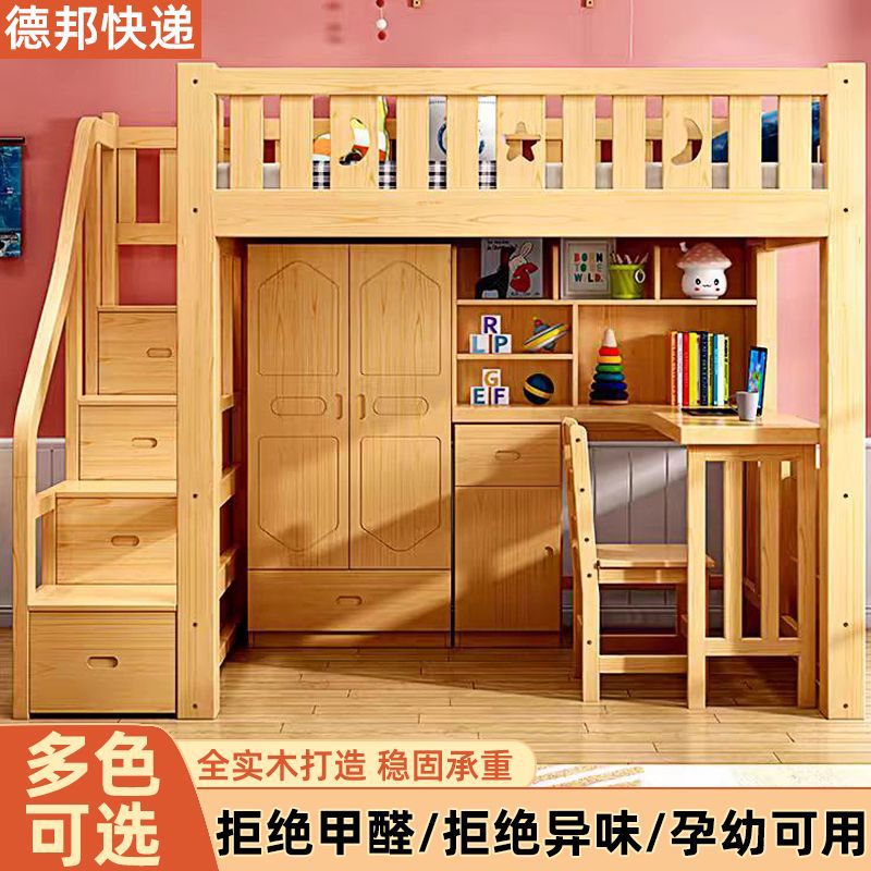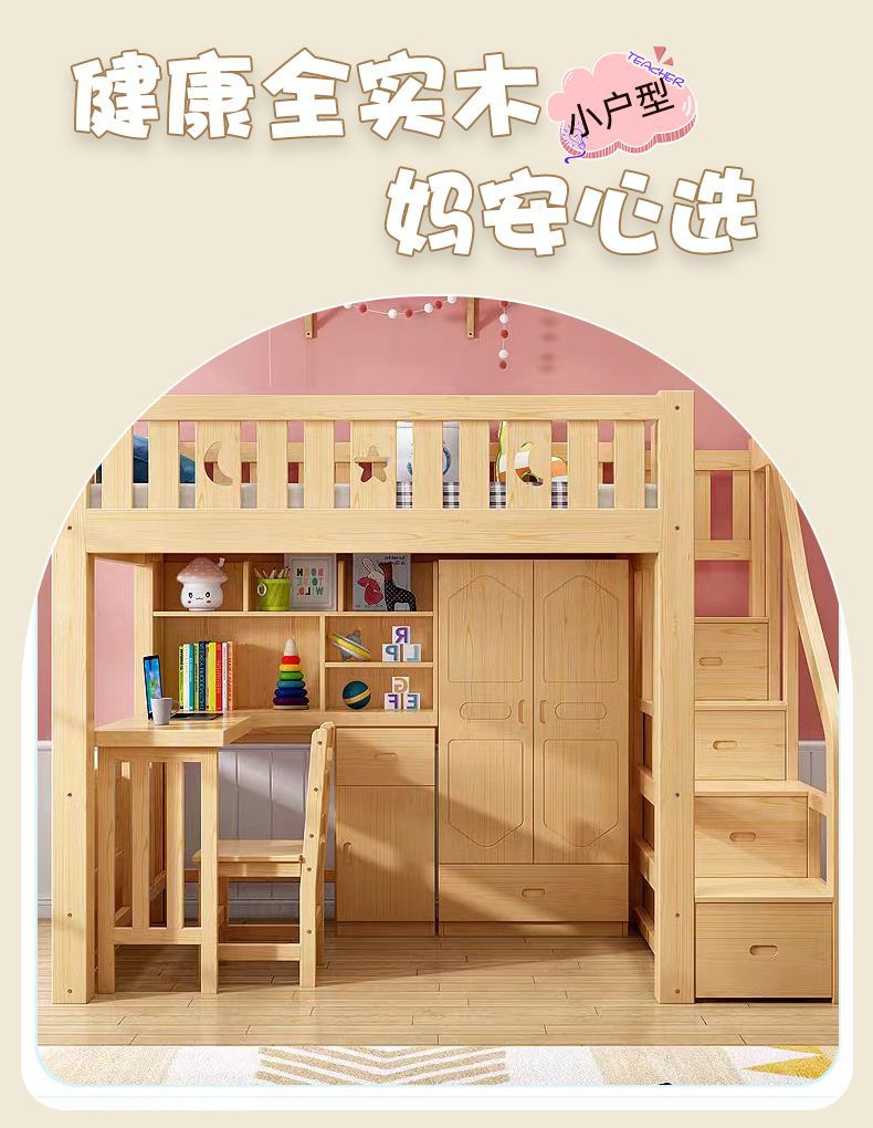 단단한 나무 침대와 테이블, 하이베드와 로우베드 일체형 옷장, 다기능 책상, 학습용 침대, 소형 아파트용 높이 조절 침대