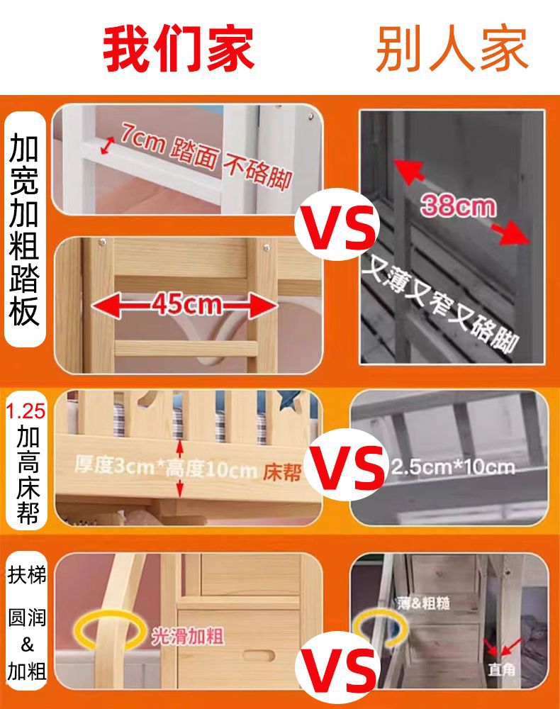 • 로프트 침대 1.2m - 직선형 사다리 스타일 전체 세트