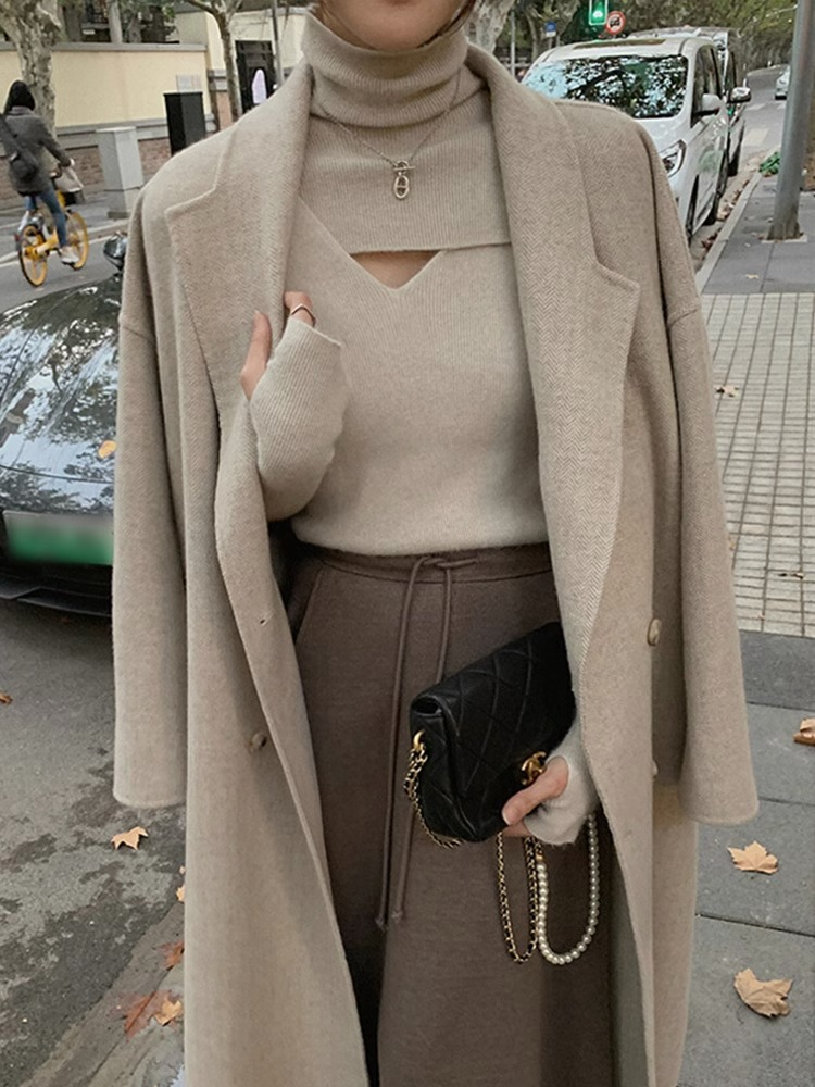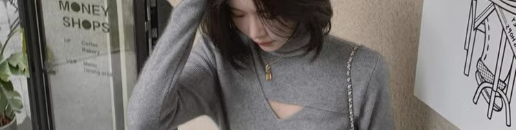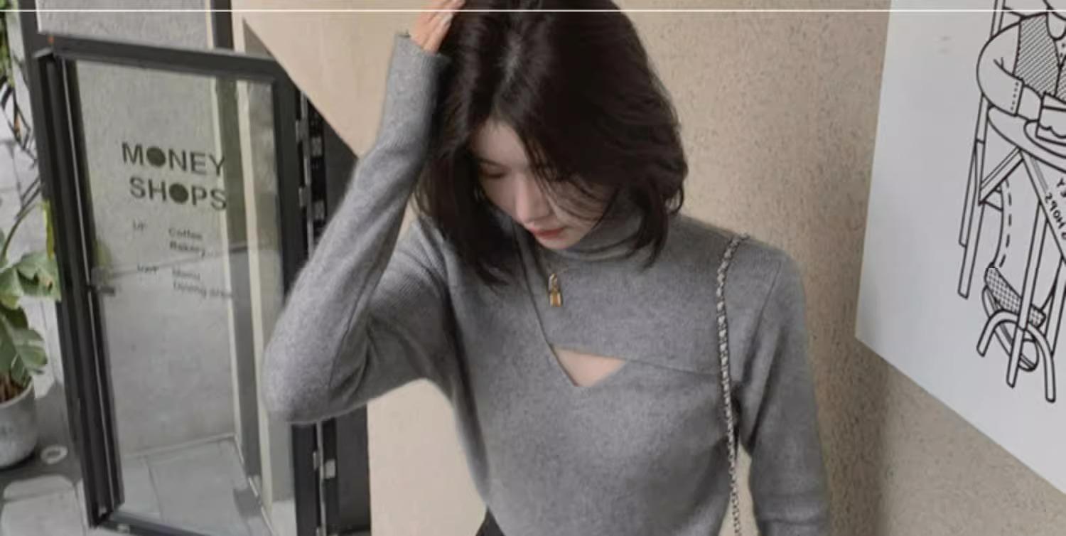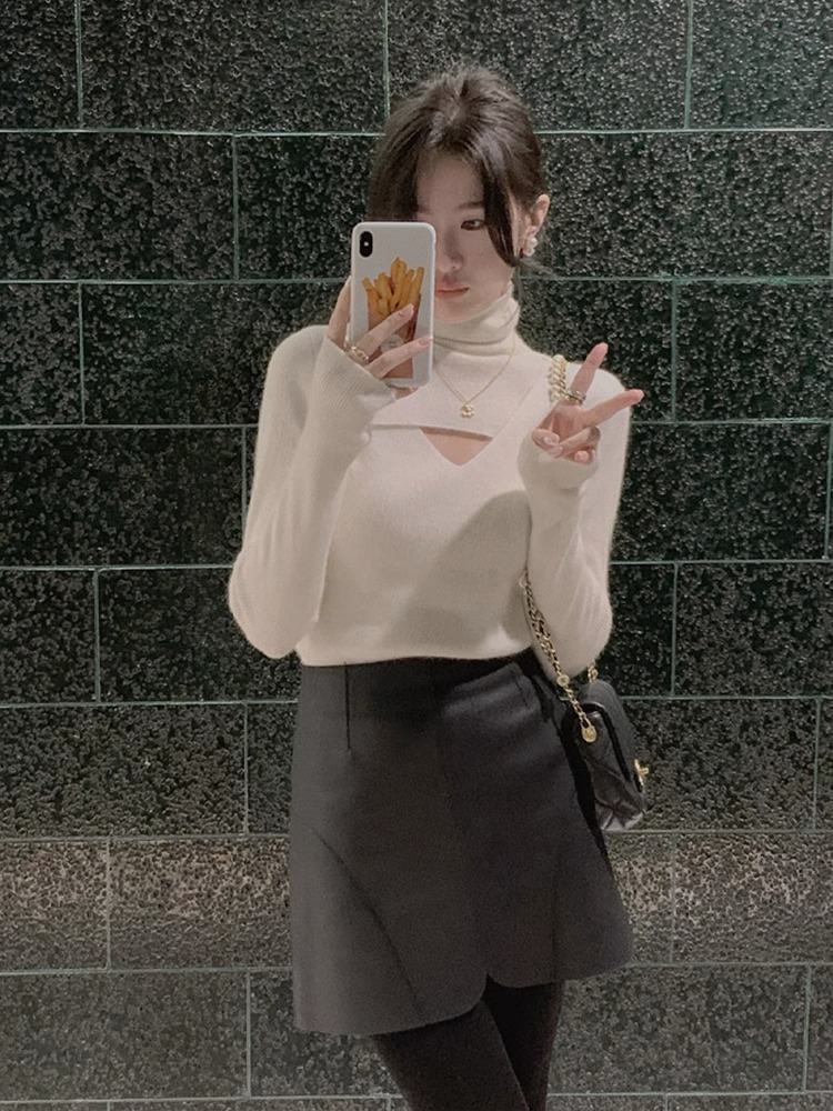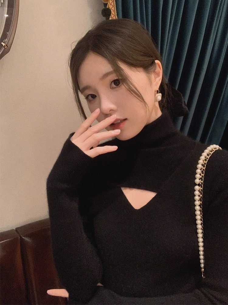 가을 겨울 여성용 푸시업 칼라 풀오버 니트 베이스 레이어, 니치 탑, 시크한 디자인의 하이넥 슬림 스웨터스토어 가기