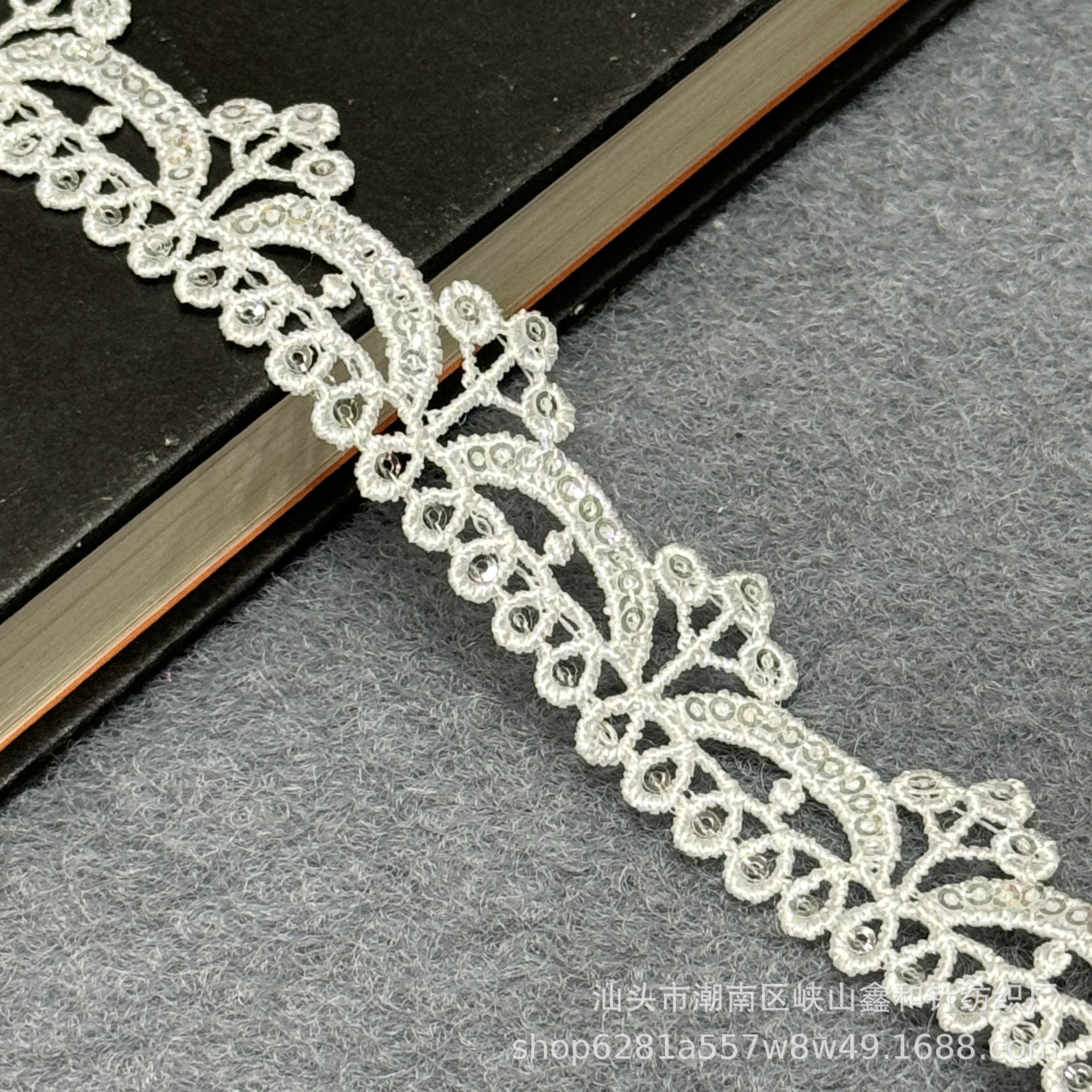 1-5.5CM 반원형 꽃 스팽글 단면 자수 레이스 수제 민족 로리타 웨딩드레스