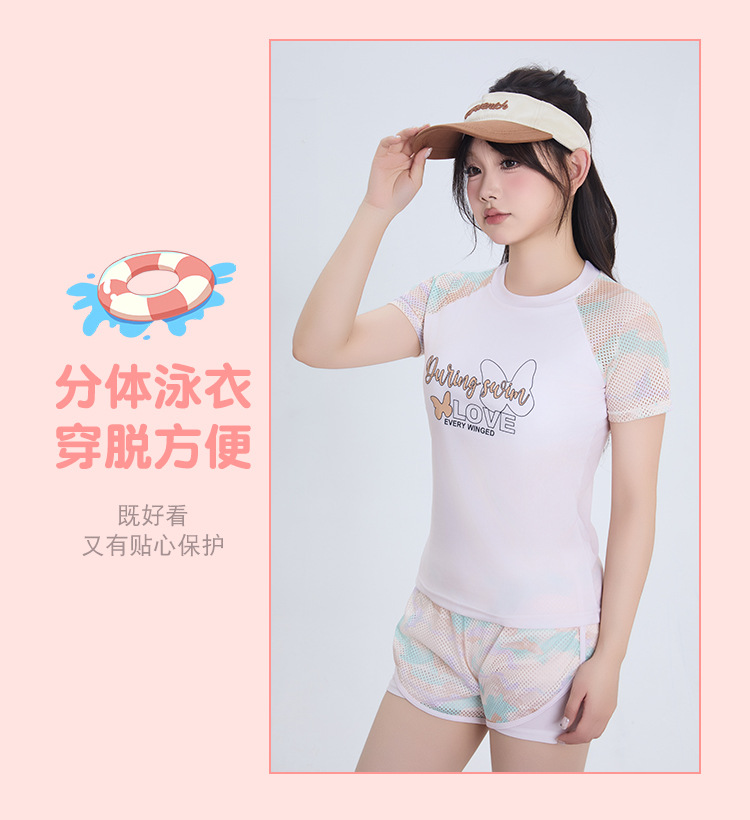 여아 수영복 스포츠 스플릿 반팔 자외선 차단 중대형 어린이 수영복 가슴 패드 포함 어린이 학생 수영복 도매스토어 가기