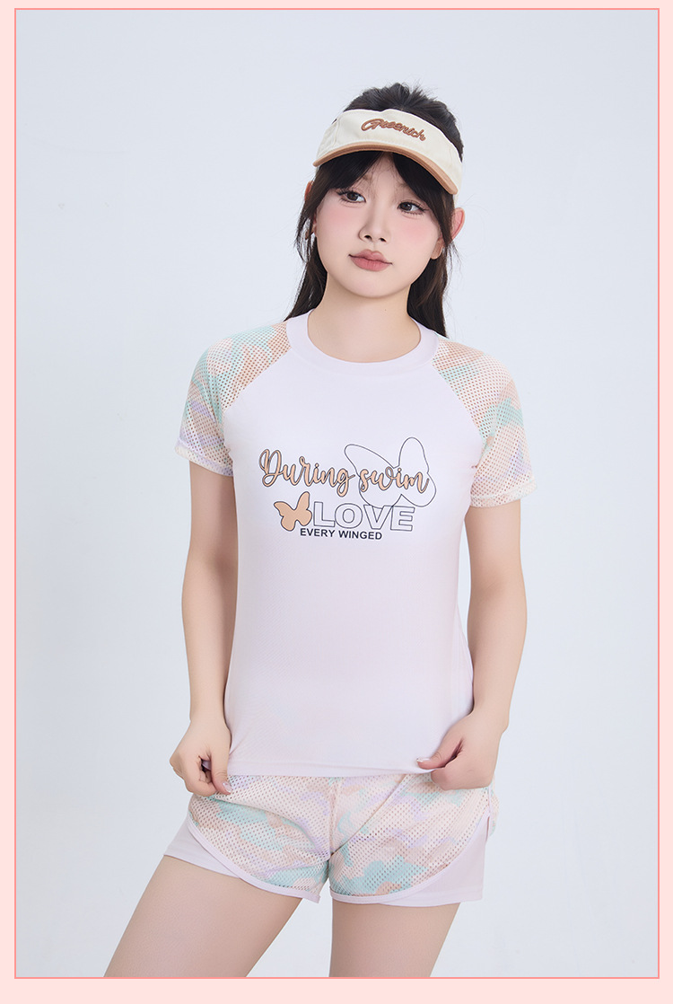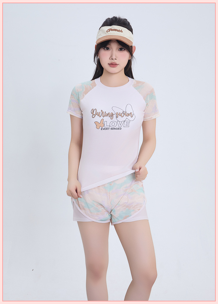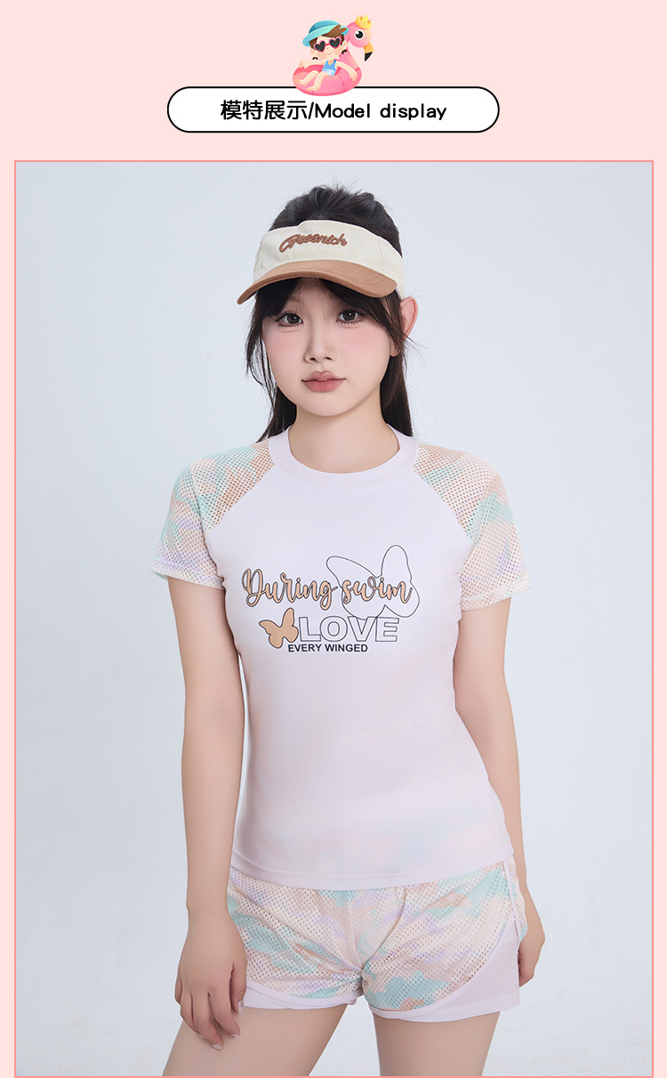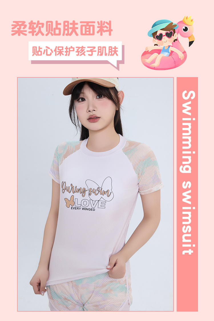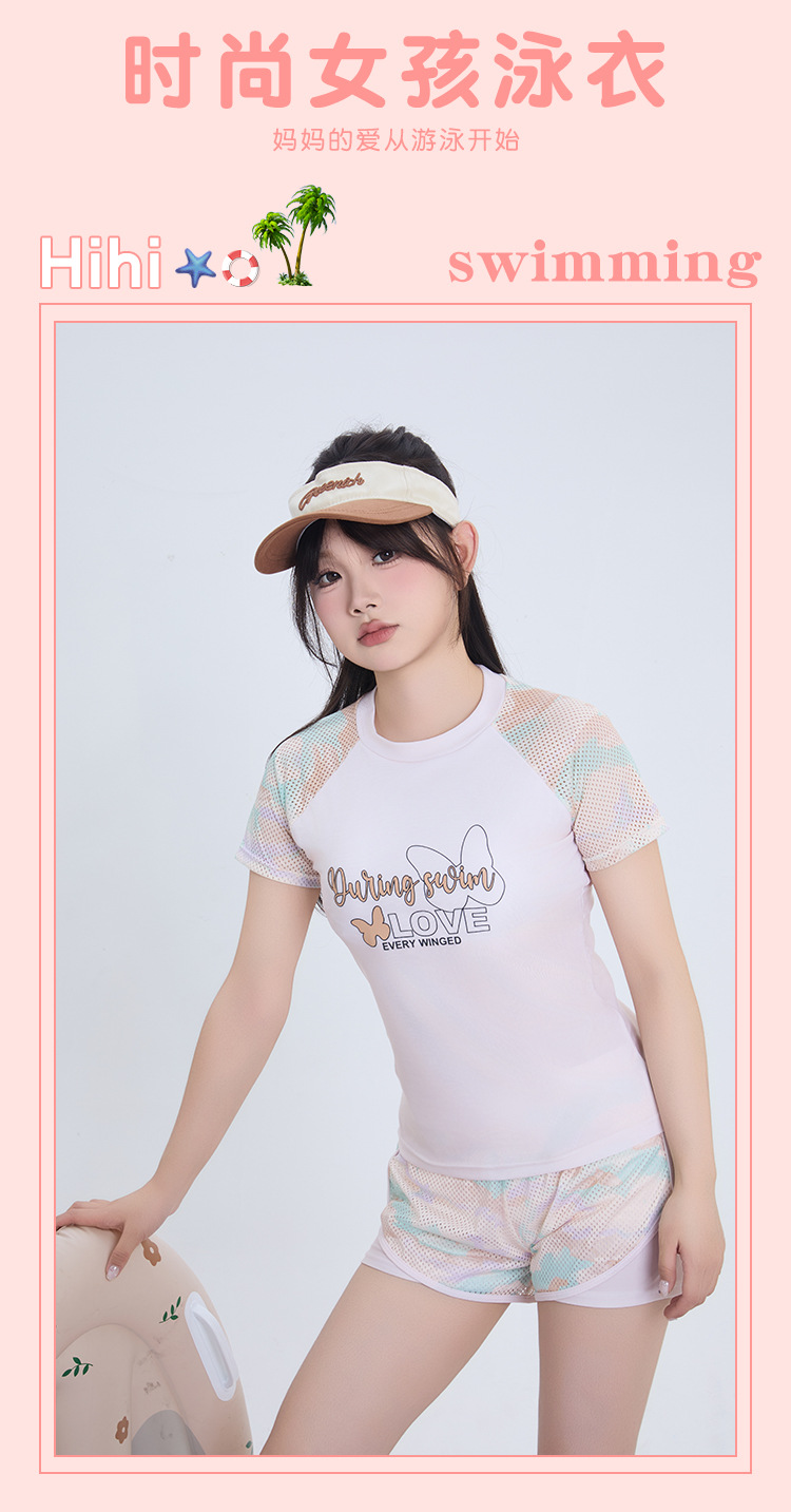 여아 수영복 스포츠 스플릿 반팔 자외선 차단 중대형 어린이 수영복 가슴 패드 포함 어린이 학생 수영복 도매