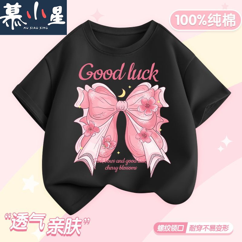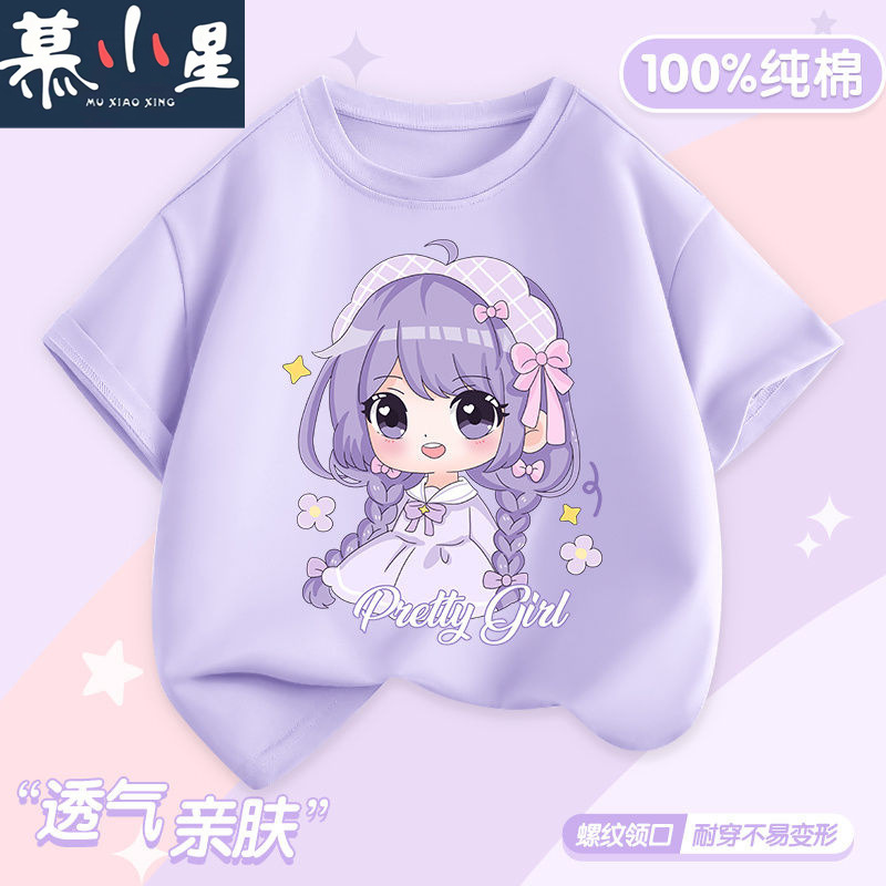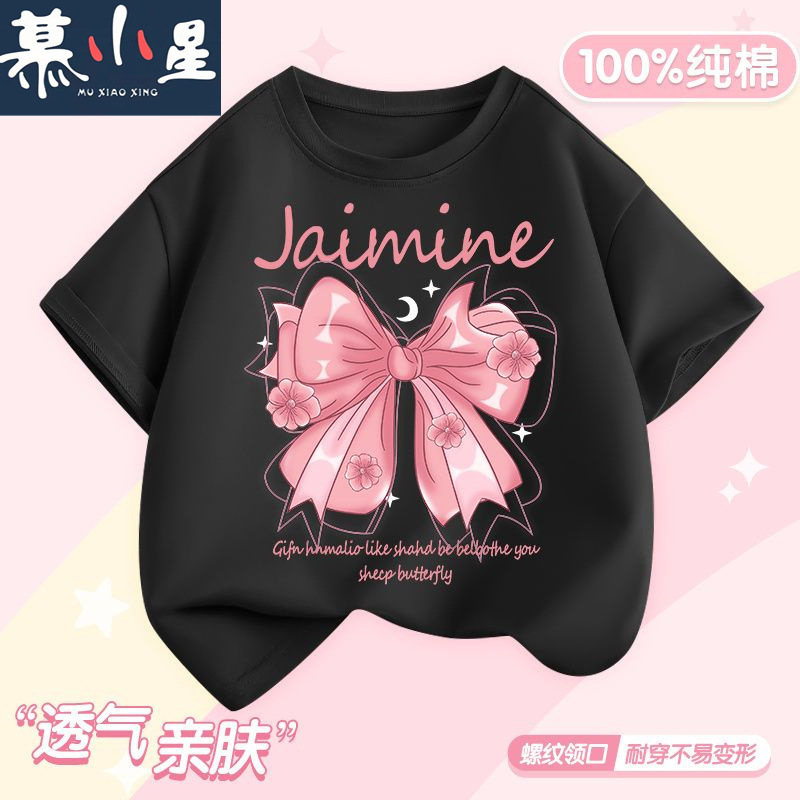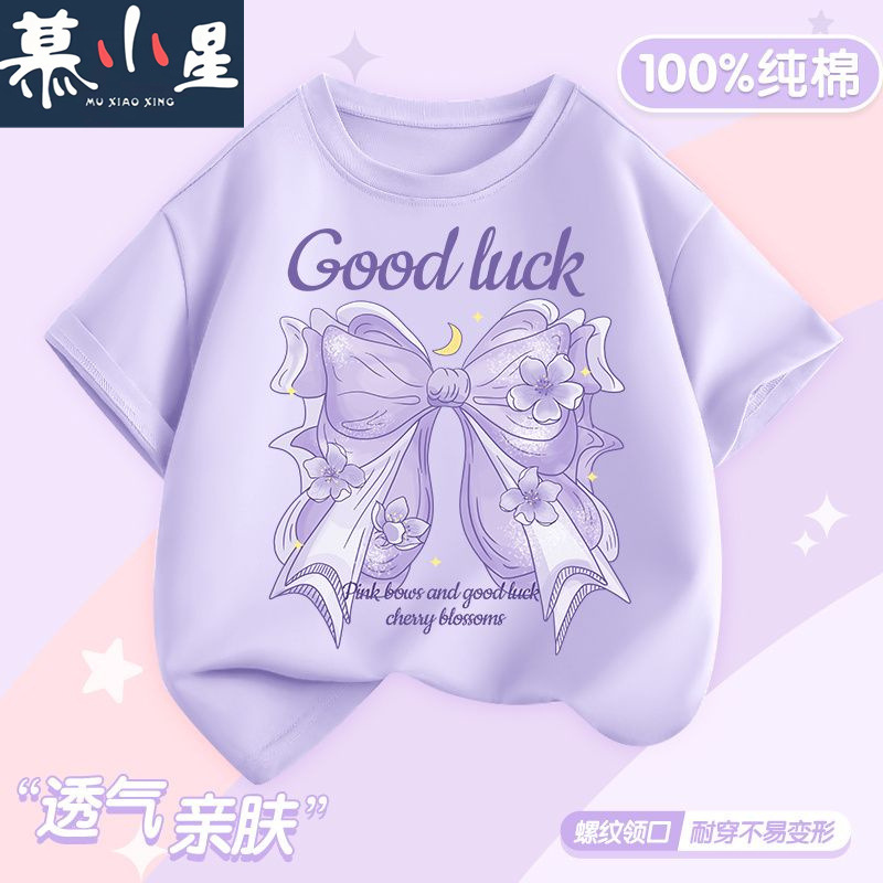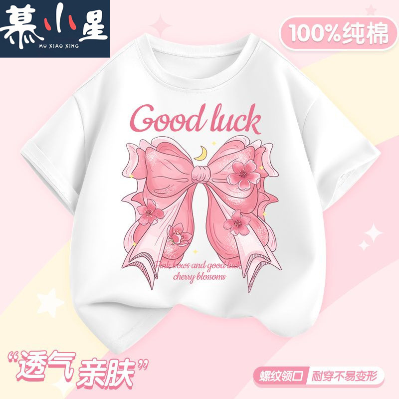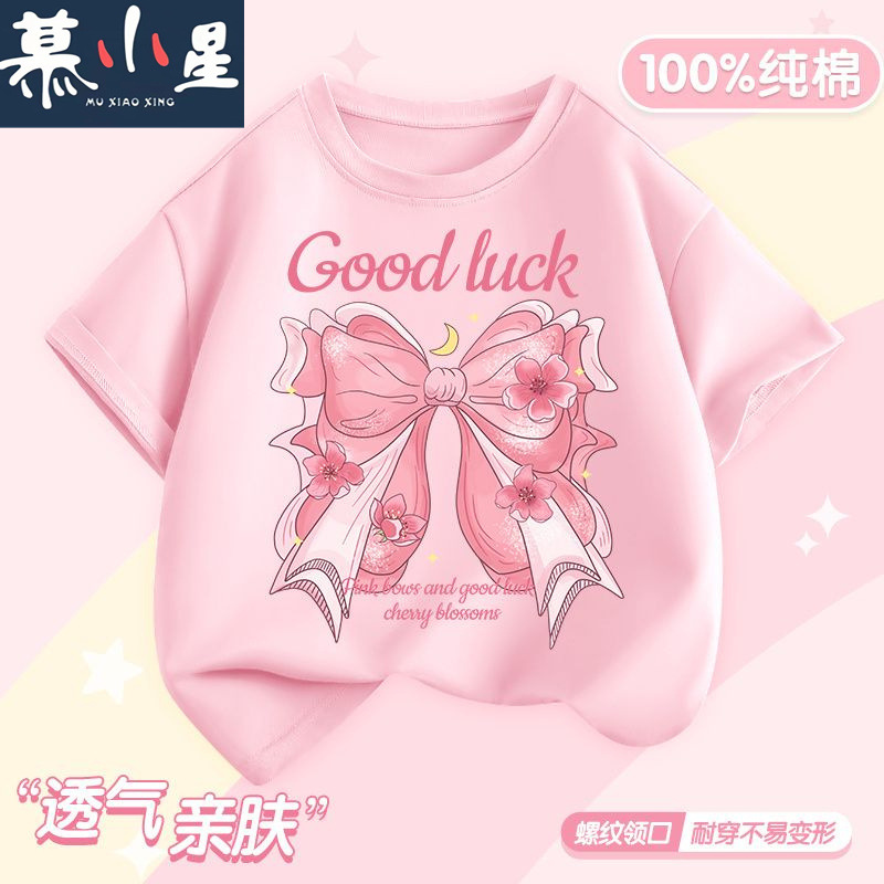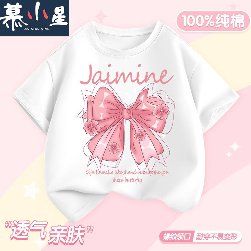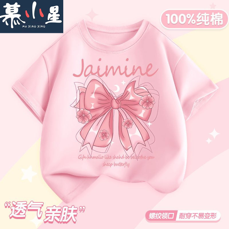 여자 반팔 티셔츠 2025 새로운 여름 스타일 여자 반팔 어린이 탑 여름 티셔츠