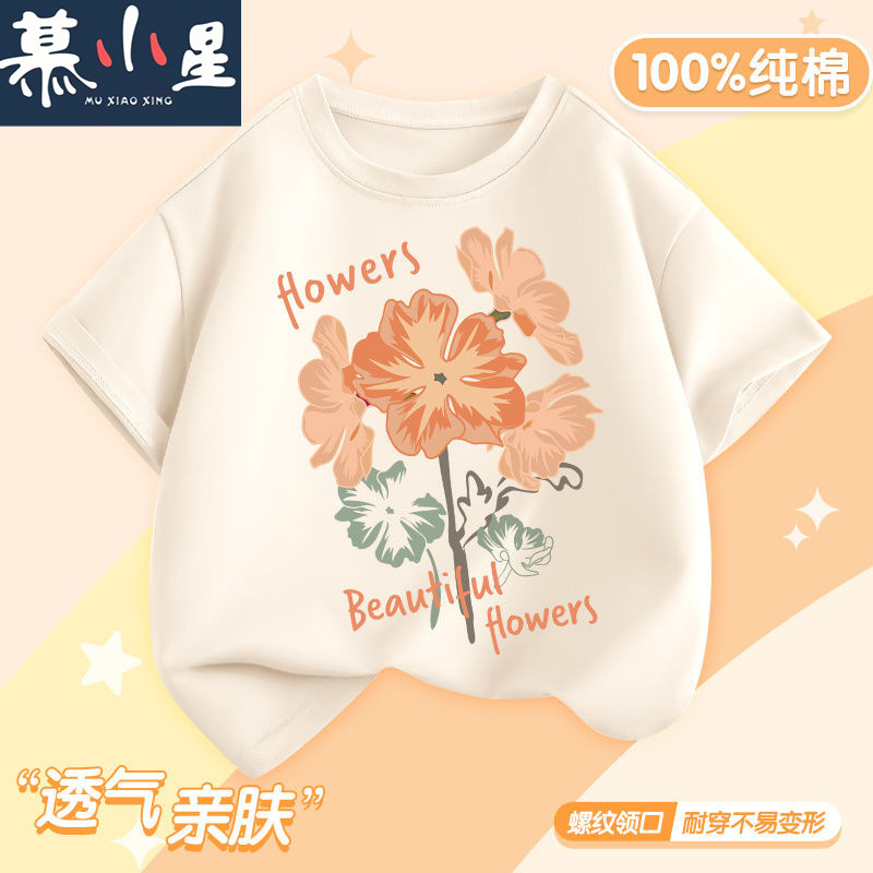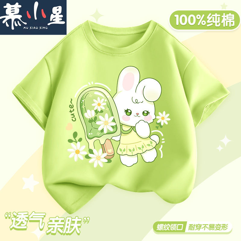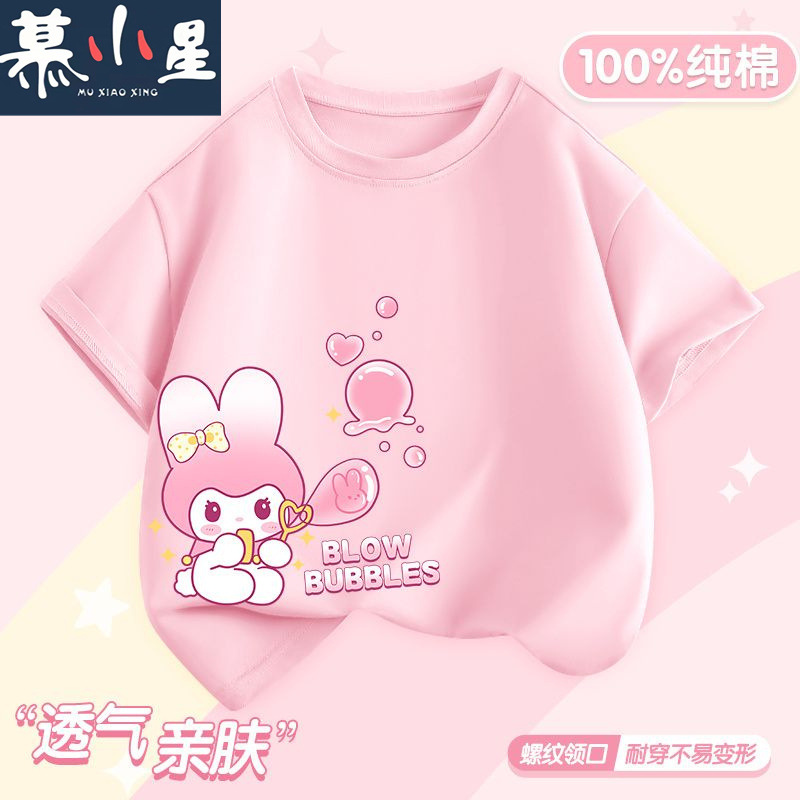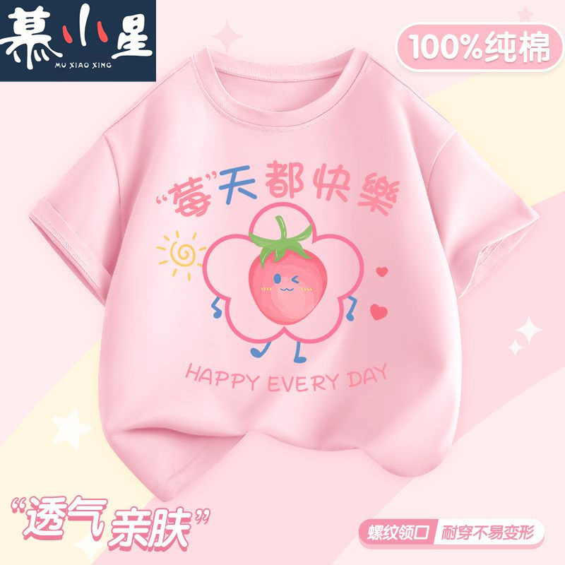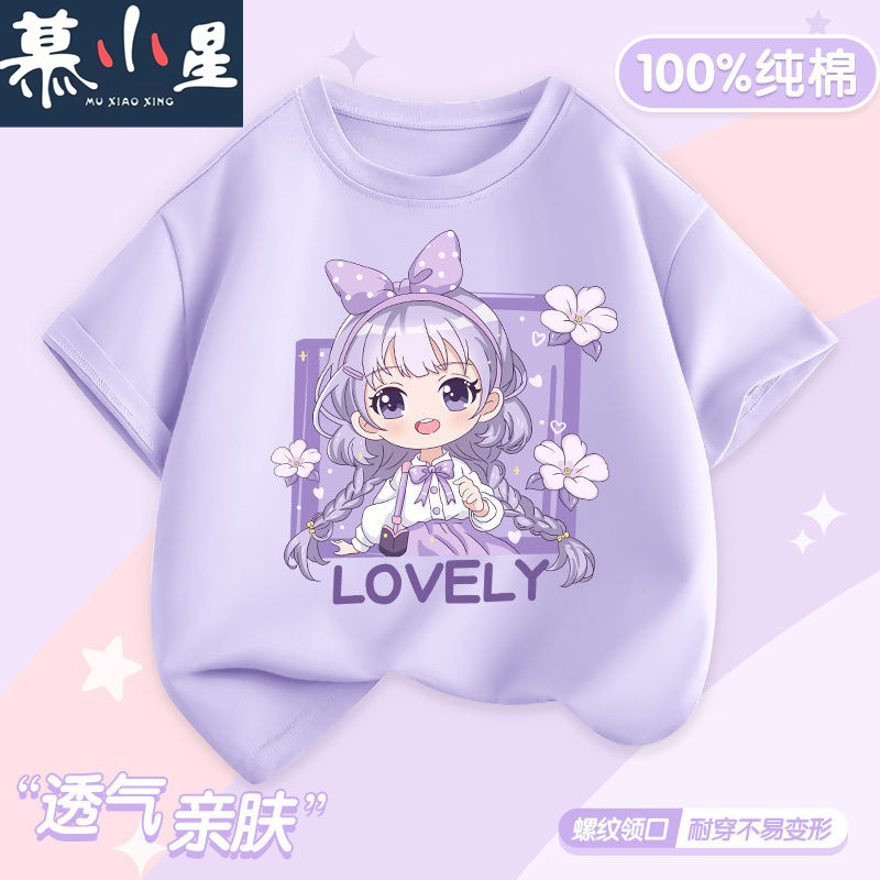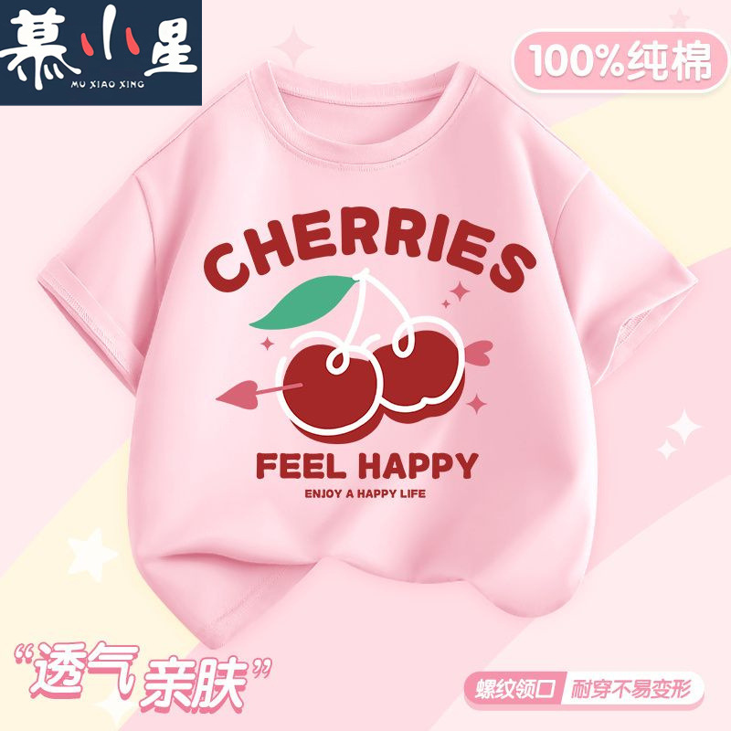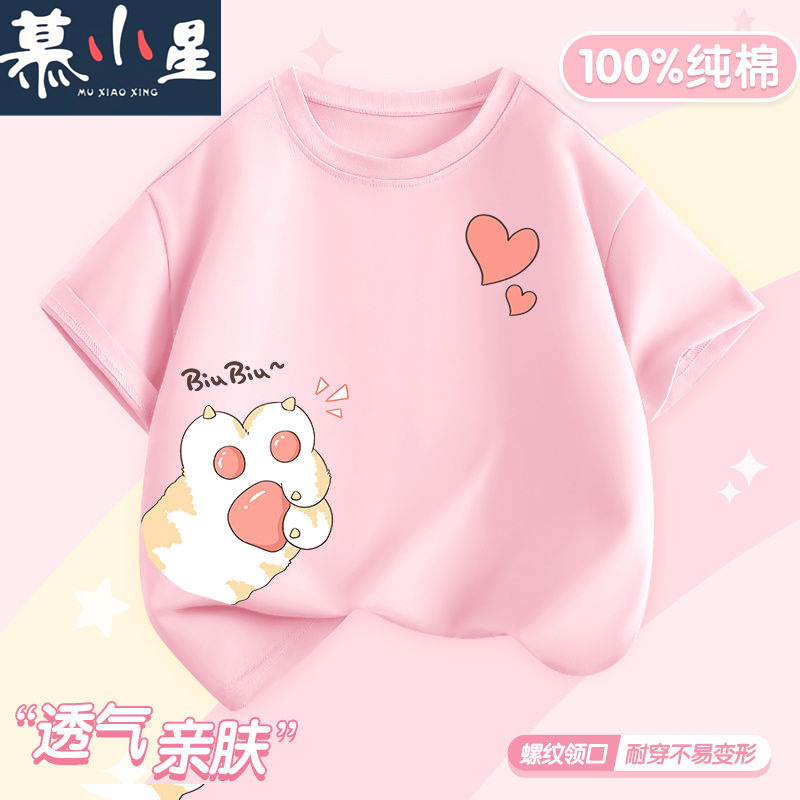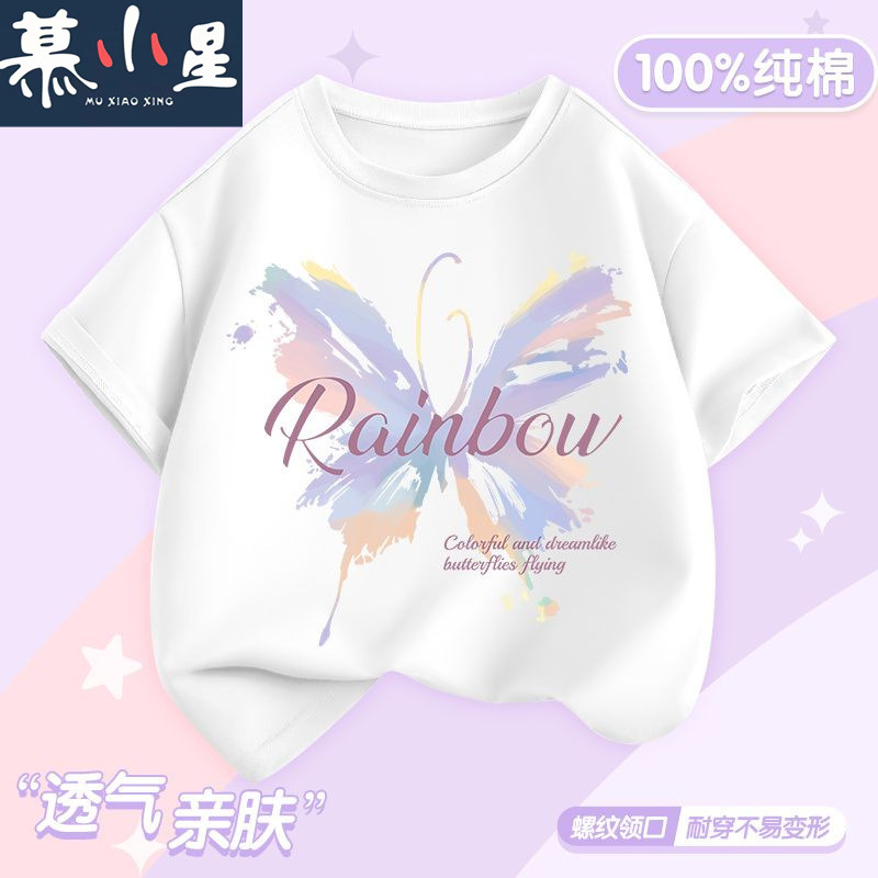 여자 반팔 티셔츠 2025 새로운 여름 스타일 여자 반팔 어린이 탑 여름 티셔츠