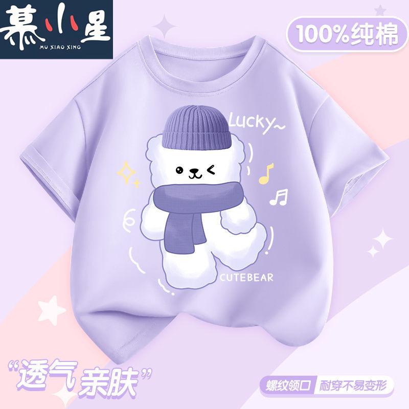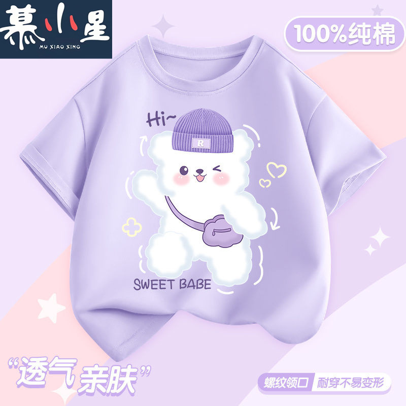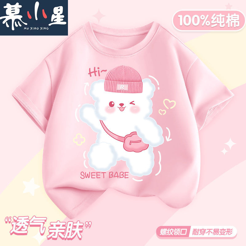 여자 반팔 티셔츠 2025 새로운 여름 스타일 여자 반팔 어린이 탑 여름 티셔츠스토어 가기