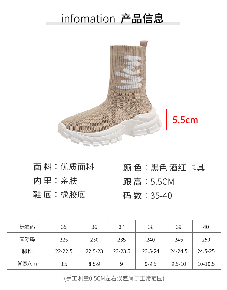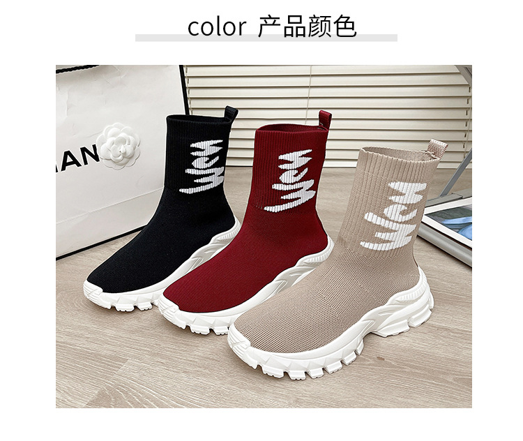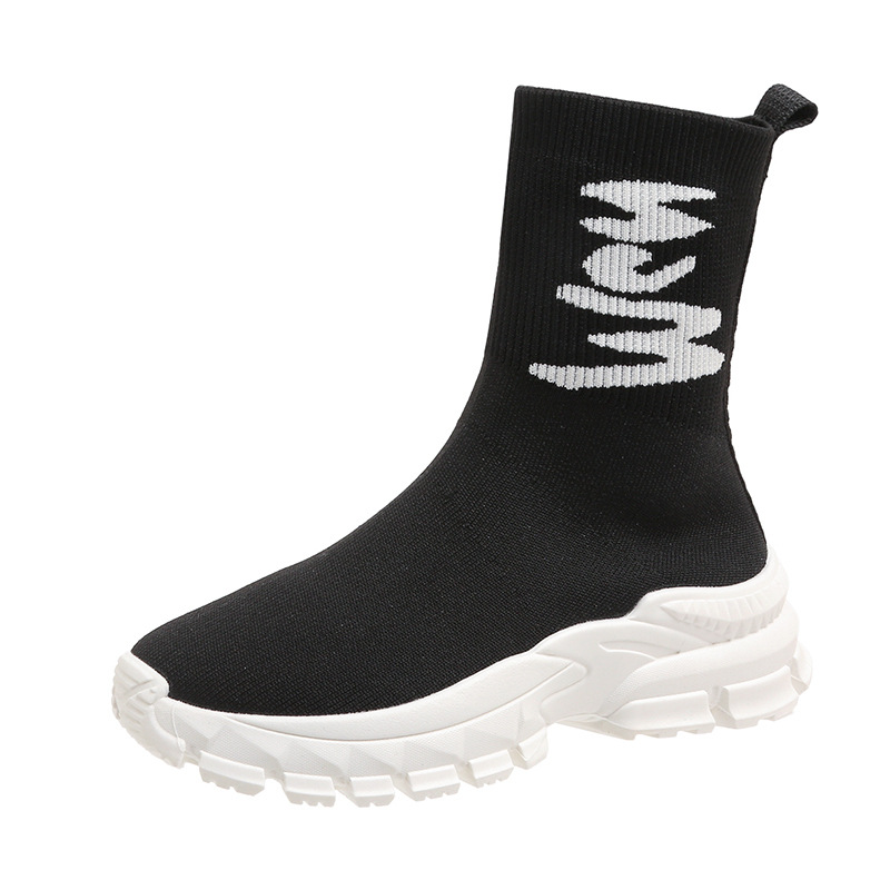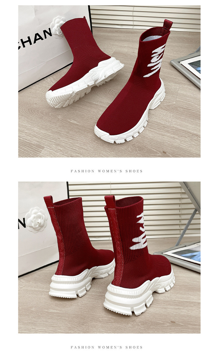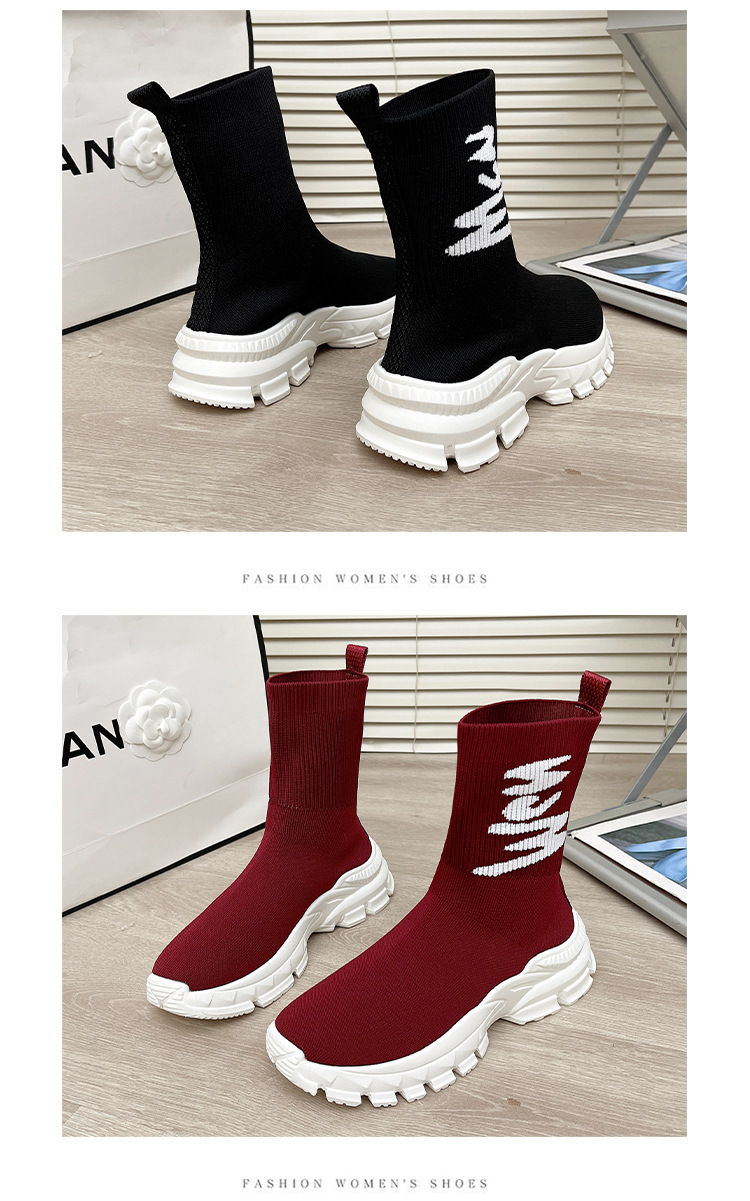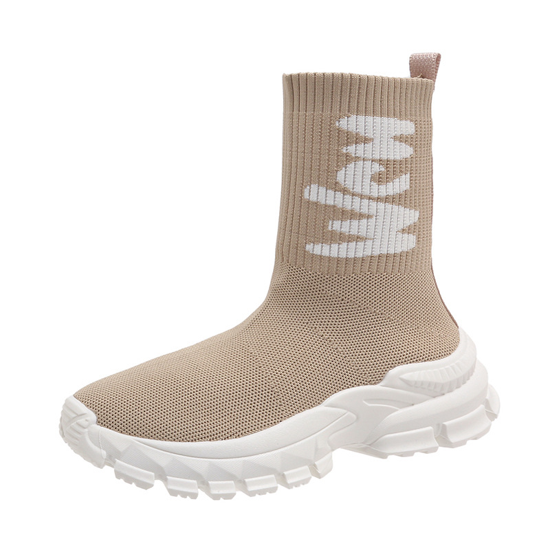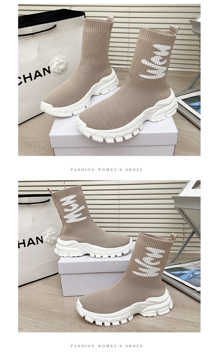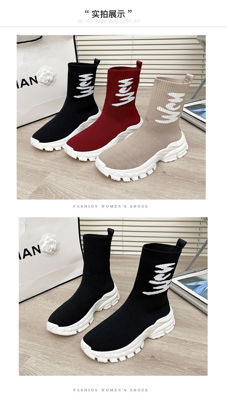 여성용 하이탑 양말 신발 2025 신작 봄 탄성 슬리밍 플라이 니트 양말 부츠 스포츠 및 레저 아빠 두꺼운 밑창 짧은 부츠스토어 가기