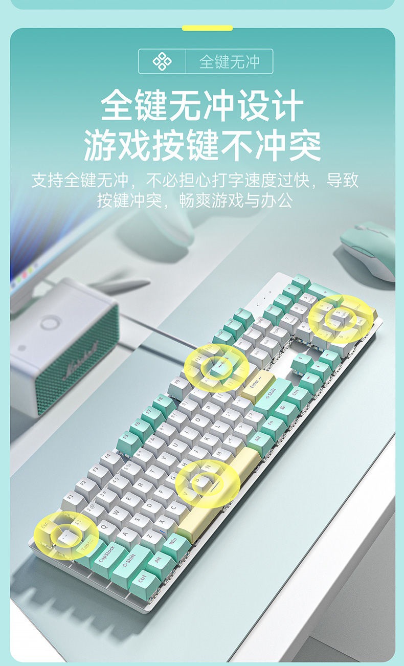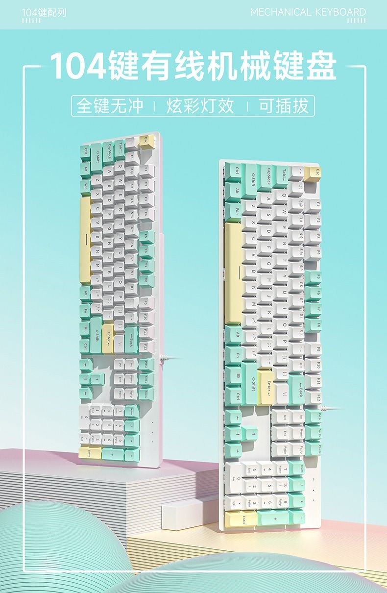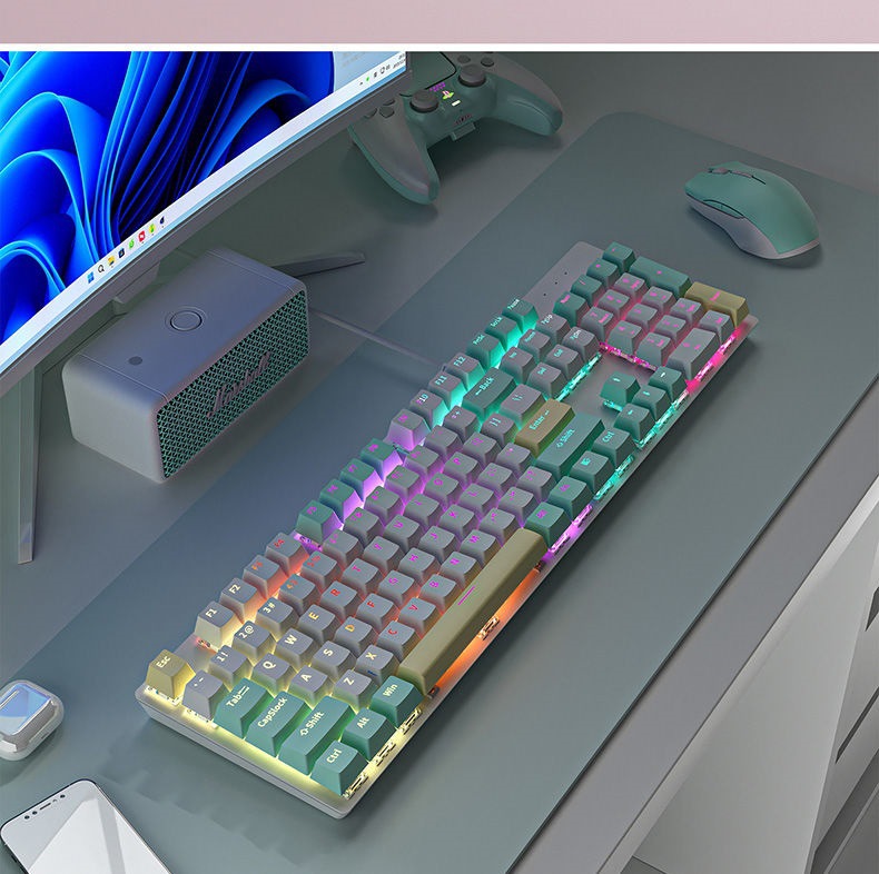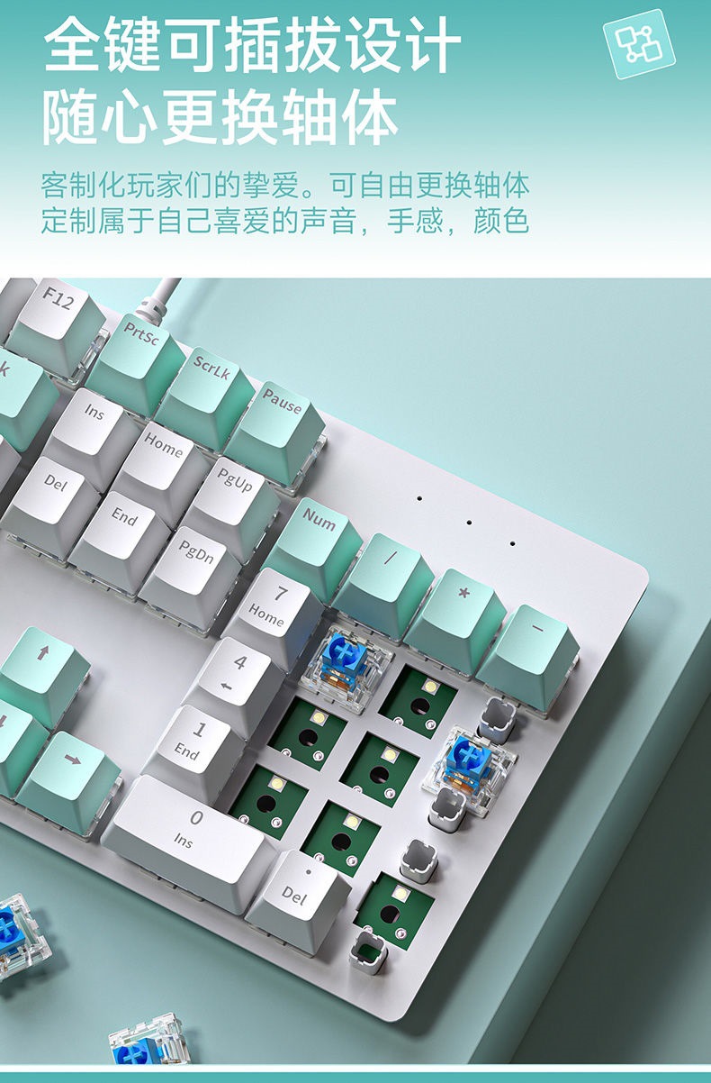 뜨거운 판매 K99 녹색 축 게임 핫 스왑 가능 기계식 키보드 유선 노트북 104 차 축 사무실 e-스포츠 키스토어 가기
