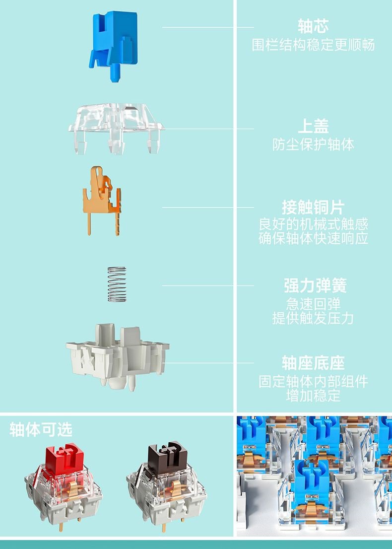 • 빨간색 축 - Luoxia Qiu Shui 핫 스왑 가능 + 손목 보호대.