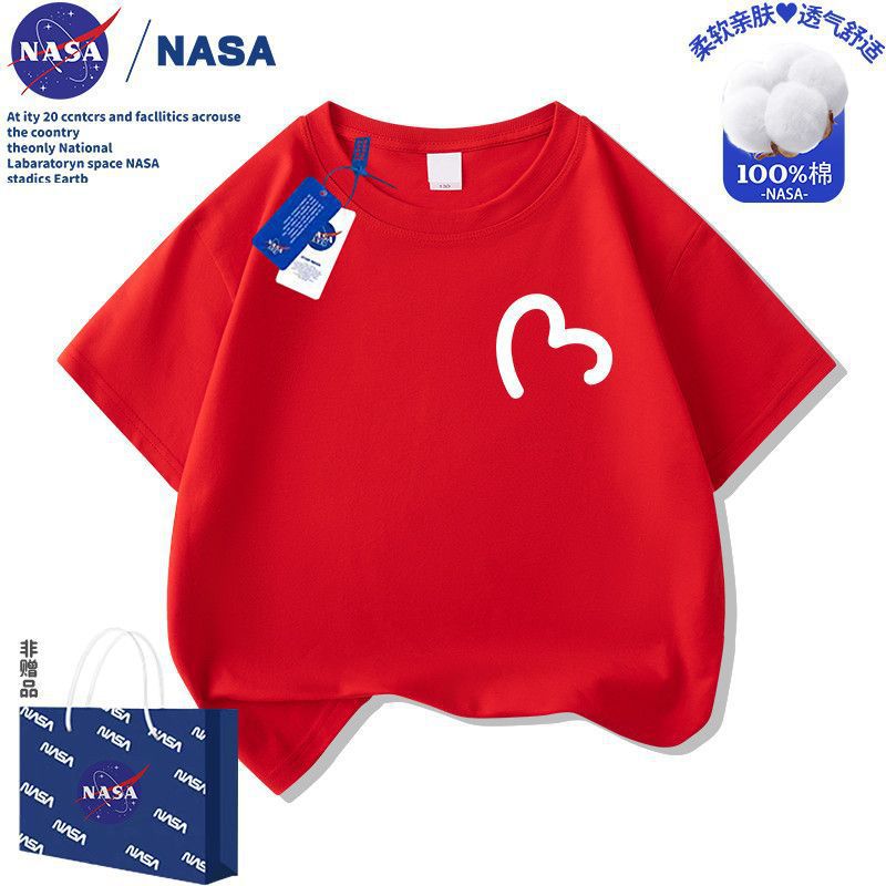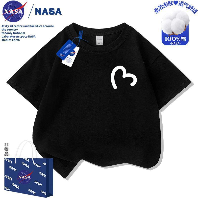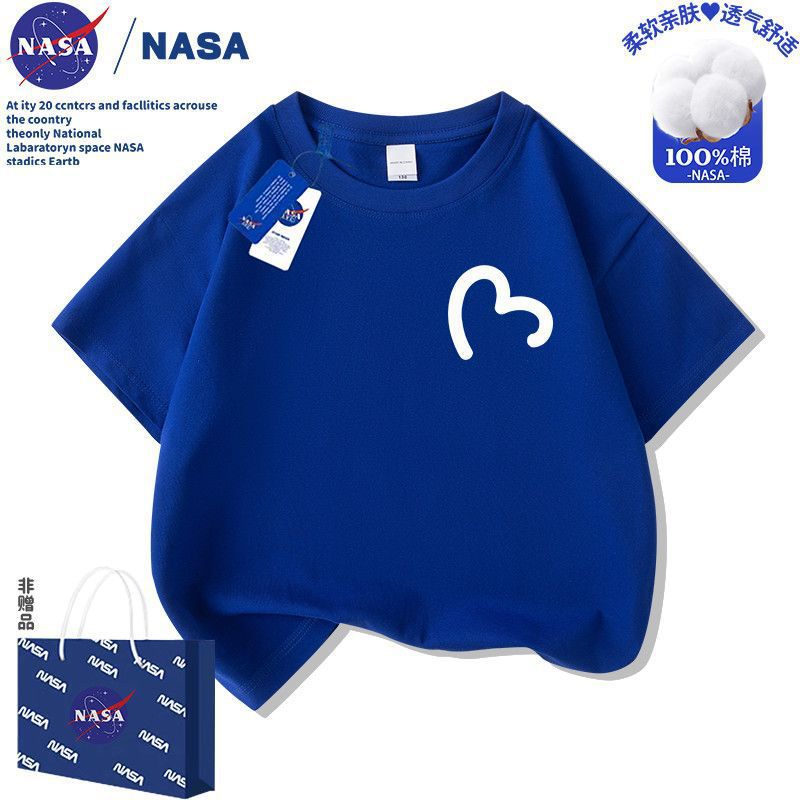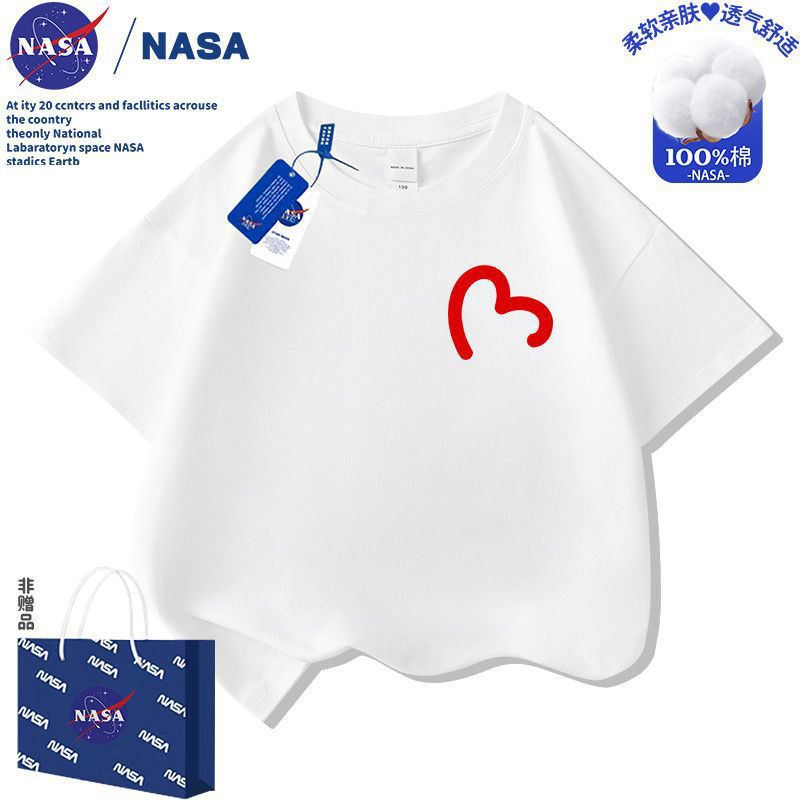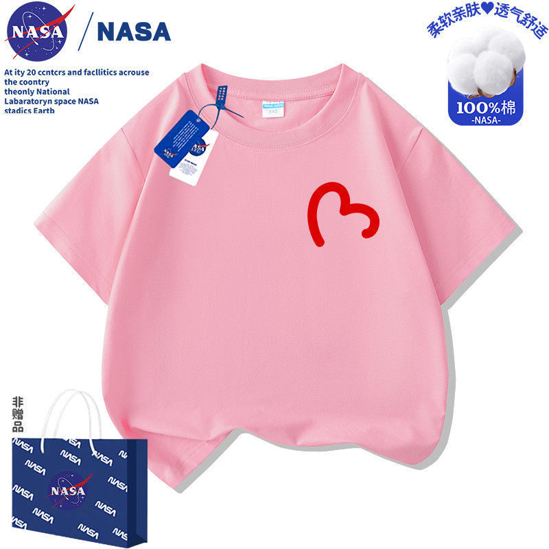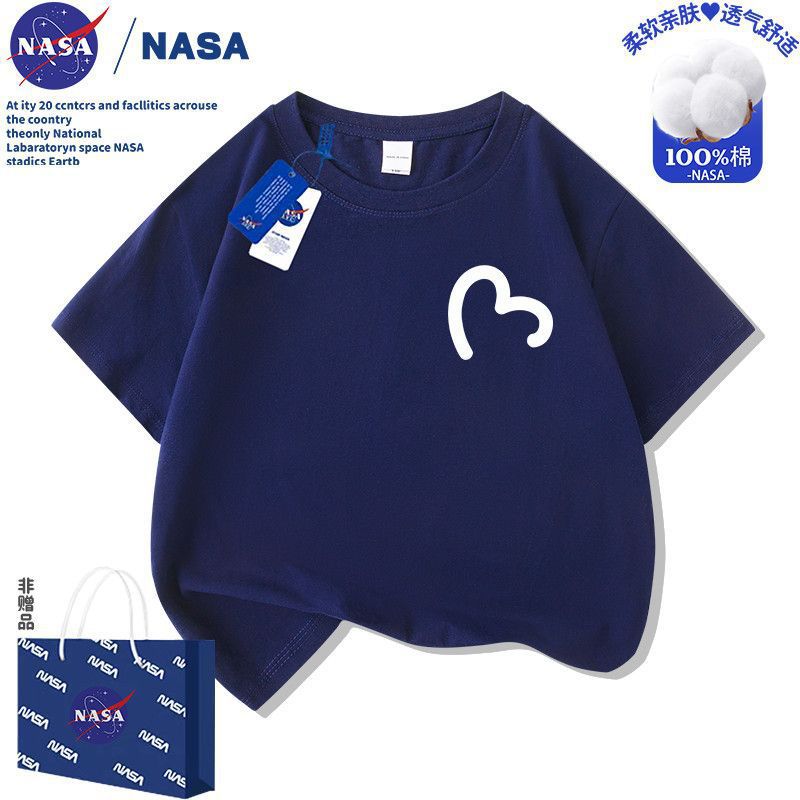 NASA 어린이 작은 사랑 인쇄 순수 코튼 반팔 티셔츠 여름 만화 라운드 넥 패션 다목적 중대형 아동용상의