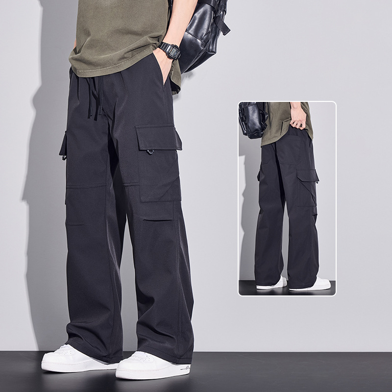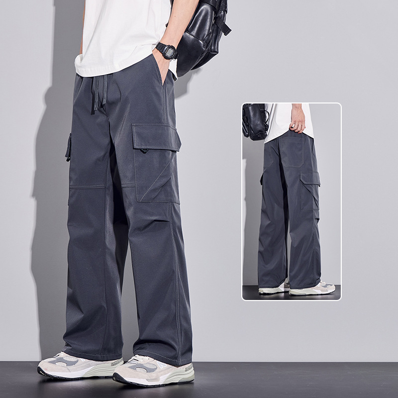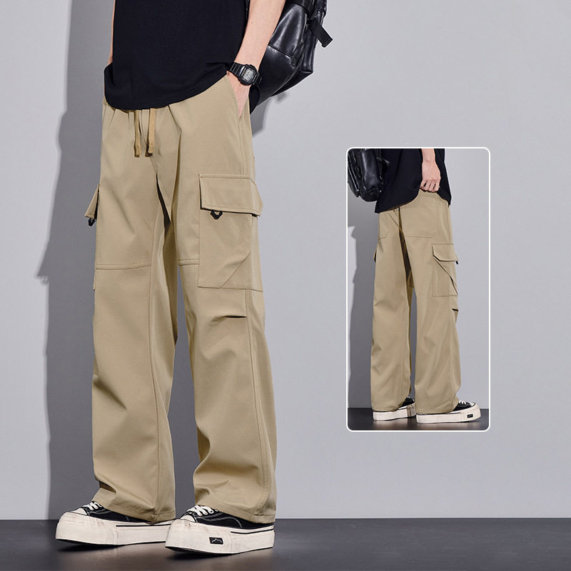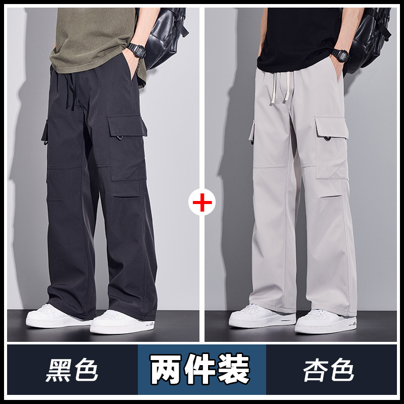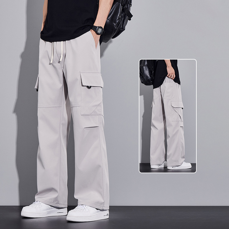 여름용 작업복, 아이스 실크 얇은 드레이프 스트레이트 작업복, 와이드 레그 루즈 스트레이트 캐주얼 바지, 남성용