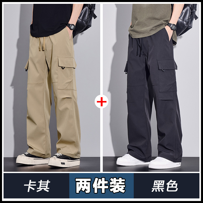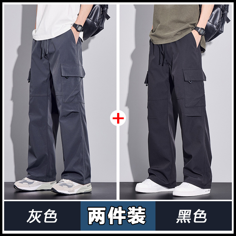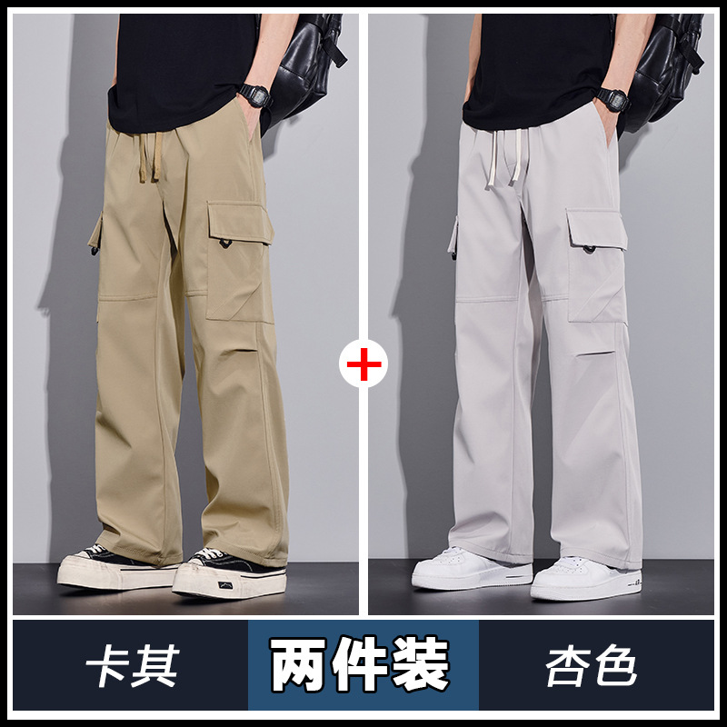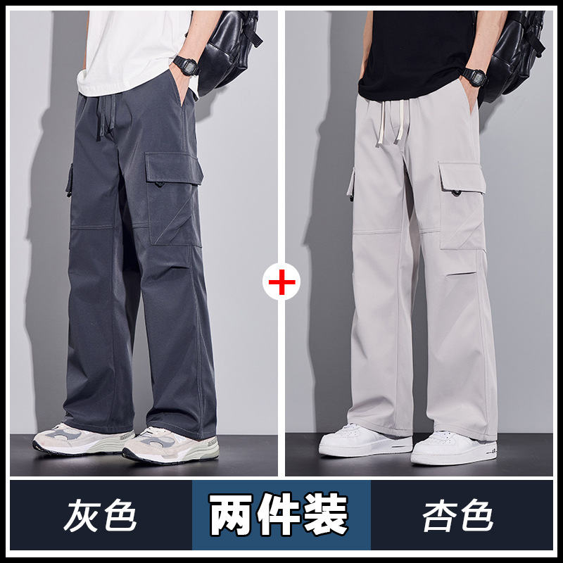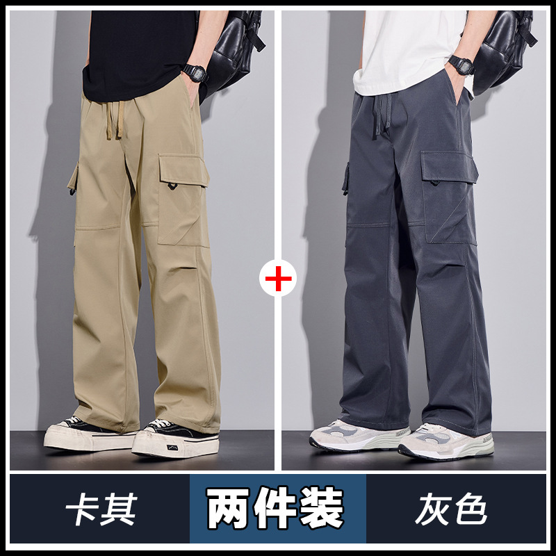 여름용 작업복, 아이스 실크 얇은 드레이프 스트레이트 작업복, 와이드 레그 루즈 스트레이트 캐주얼 바지, 남성용