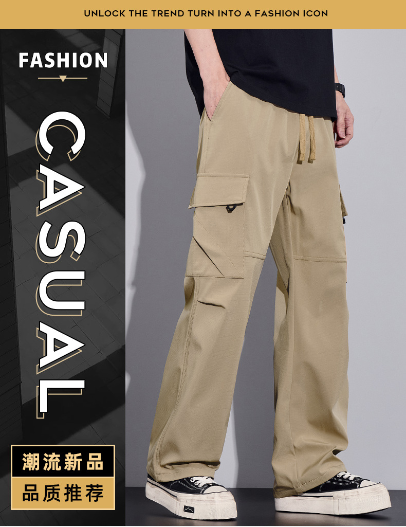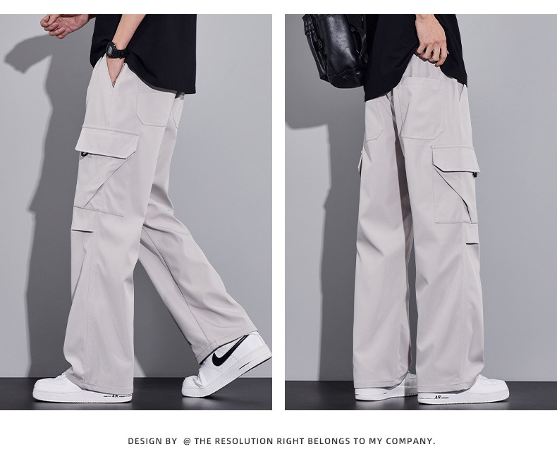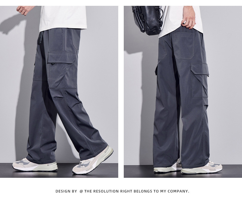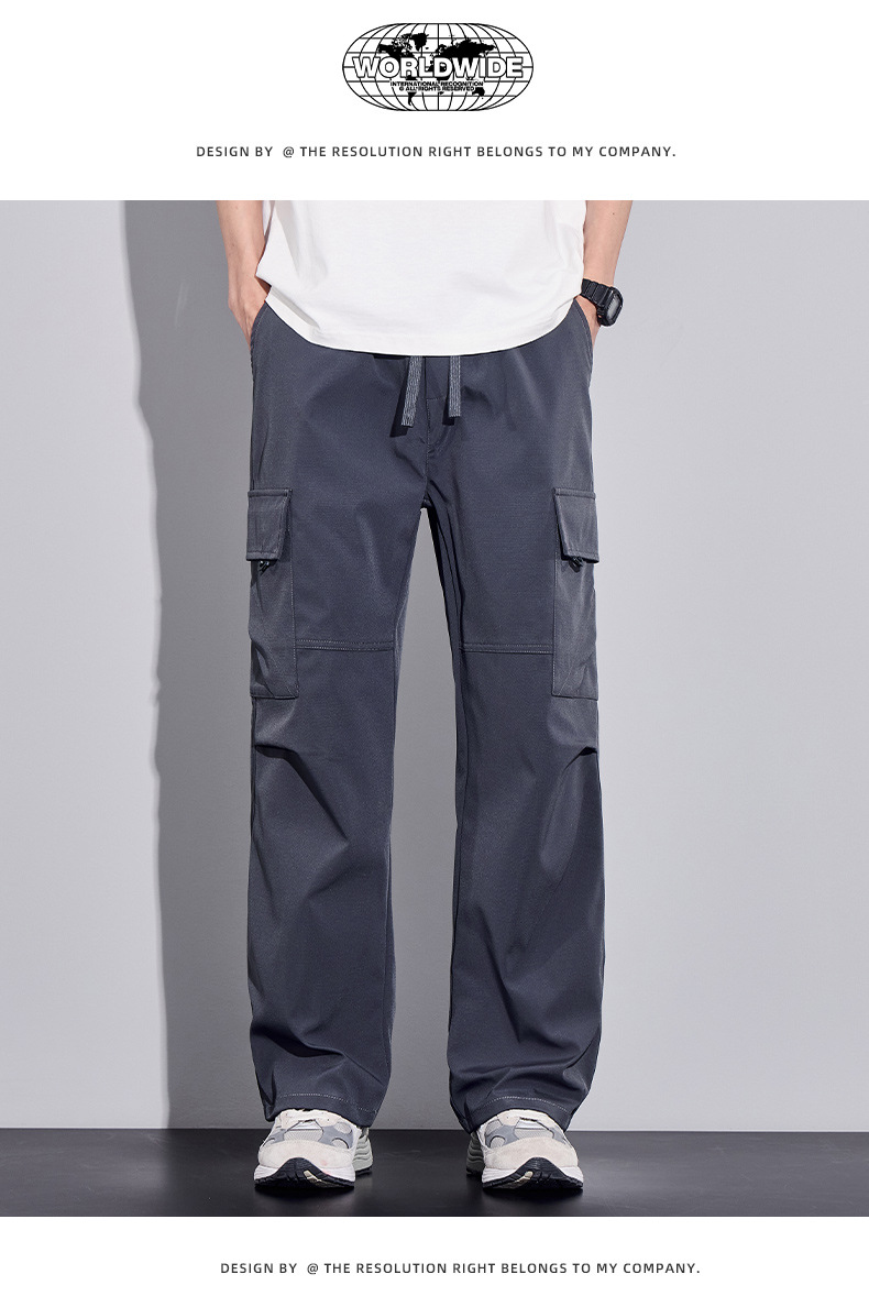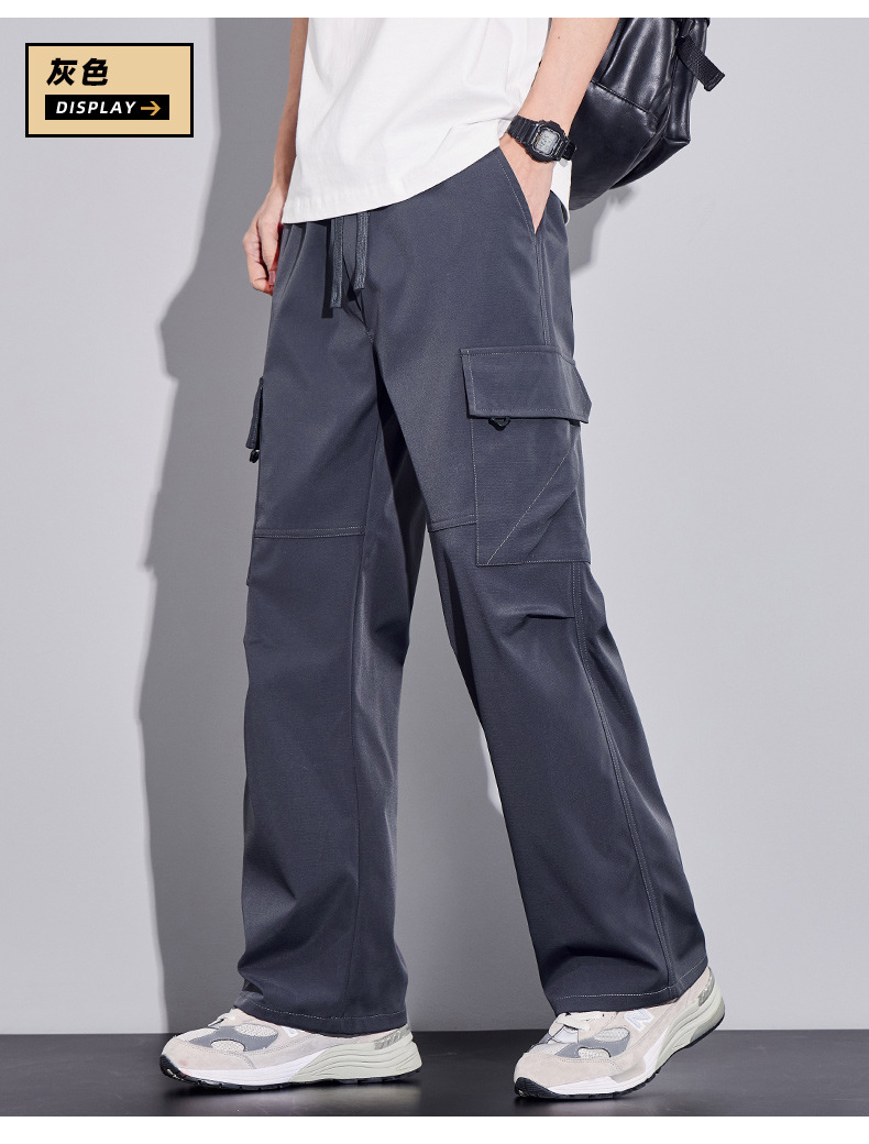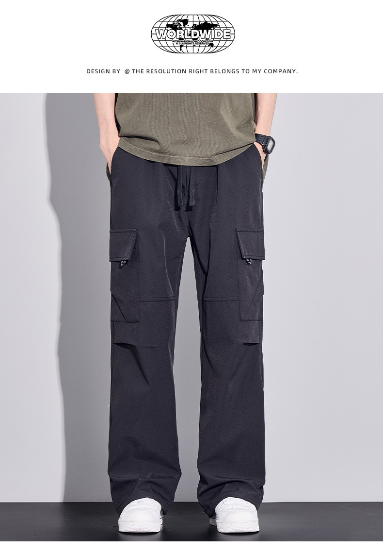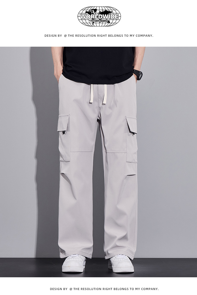 여름용 작업복, 아이스 실크 얇은 드레이프 스트레이트 작업복, 와이드 레그 루즈 스트레이트 캐주얼 바지, 남성용스토어 가기