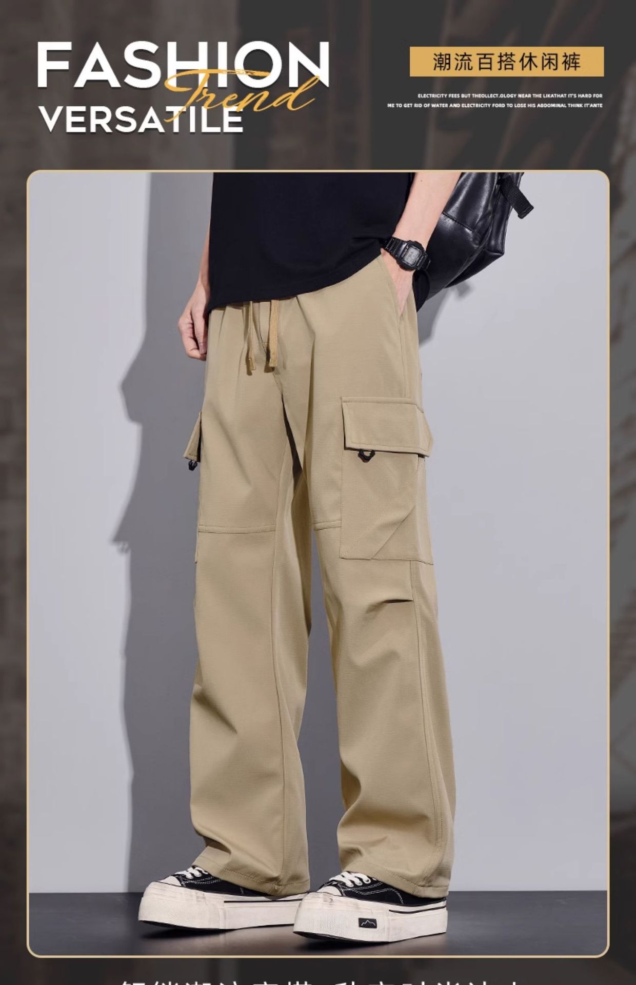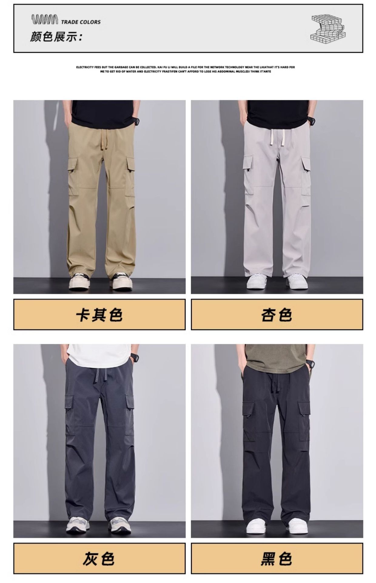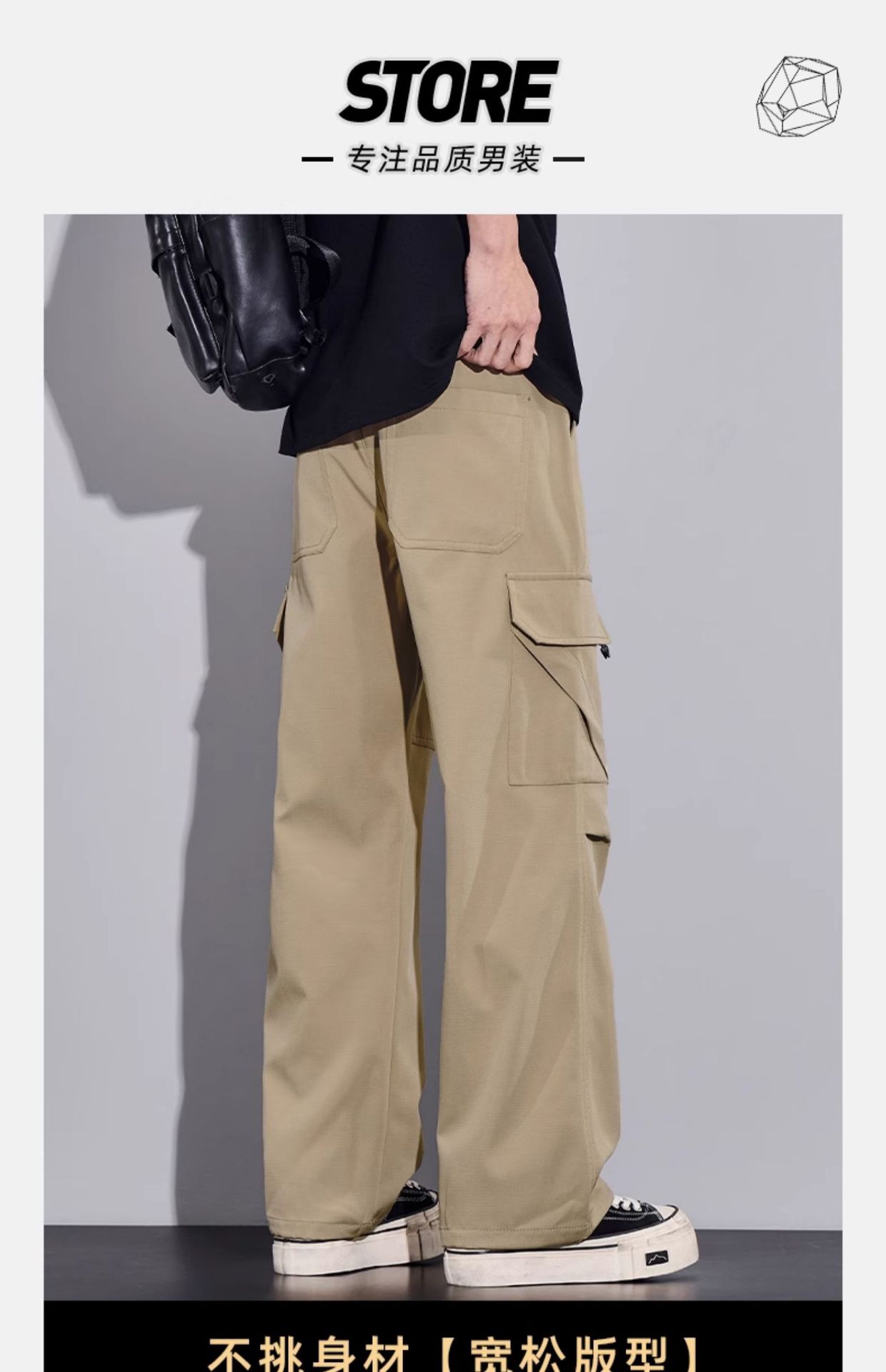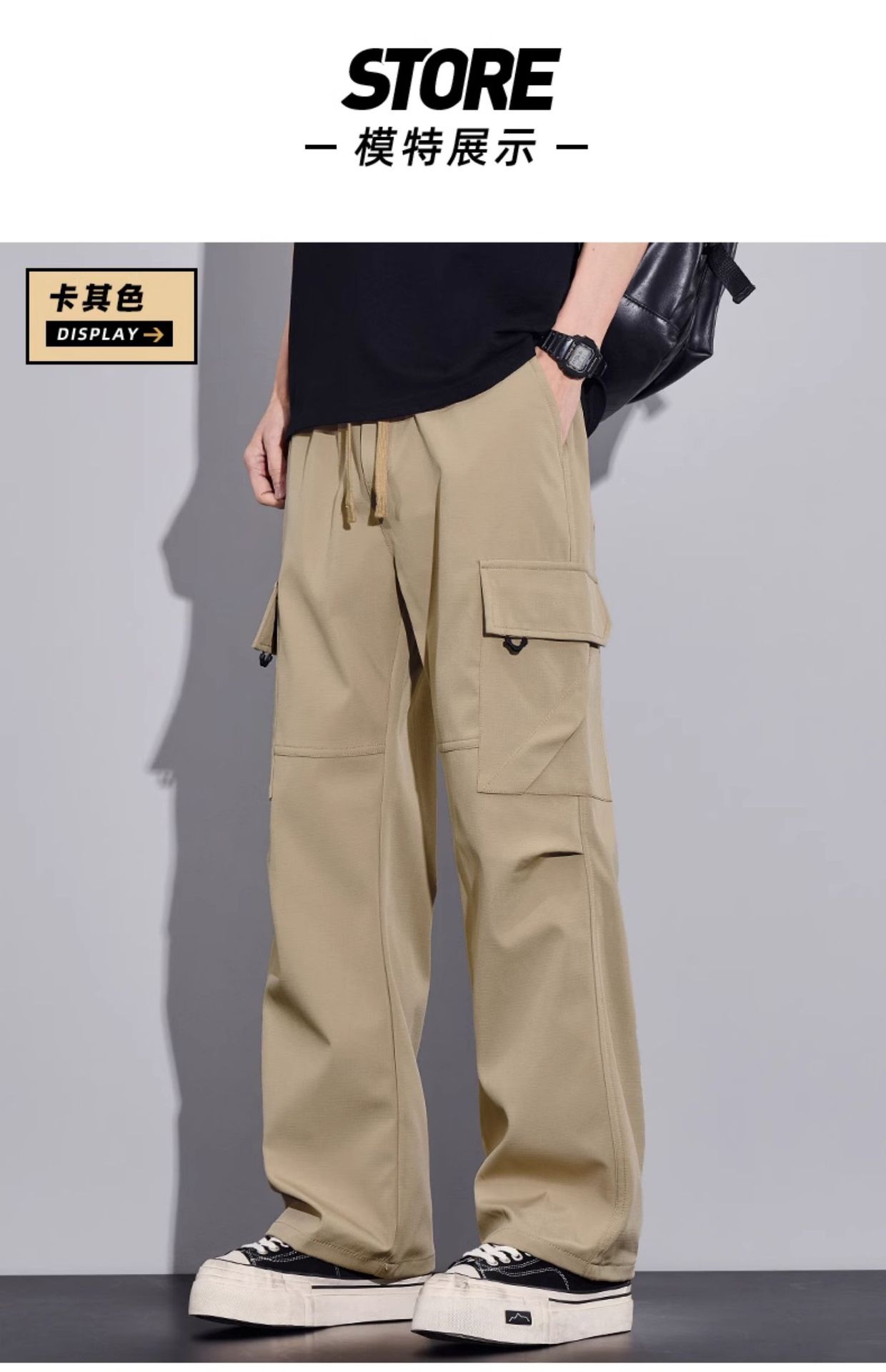 여름용 작업복, 아이스 실크 얇은 드레이프 스트레이트 작업복, 와이드 레그 루즈 스트레이트 캐주얼 바지, 남성용스토어 가기