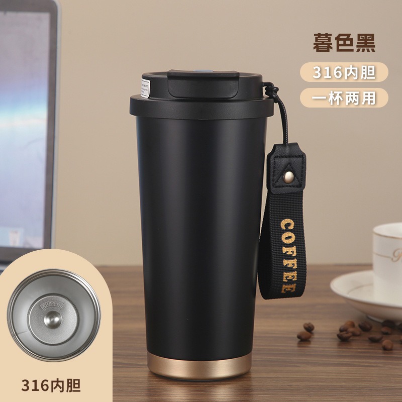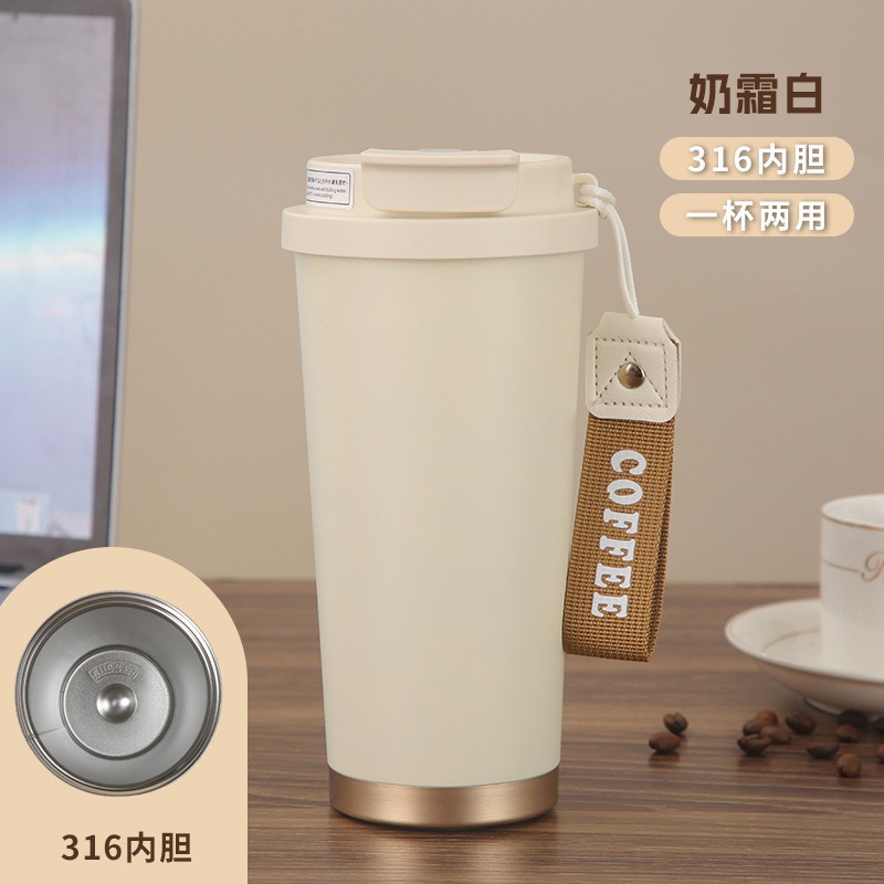 316不锈钢保温杯双饮随行水杯高颜值吸管杯铃兰花咖啡杯便携杯子
