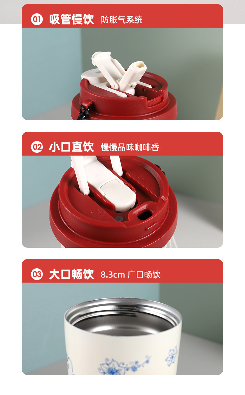 316不锈钢保温杯双饮随行水杯高颜值吸管杯铃兰花咖啡杯便携杯子스토어 가기