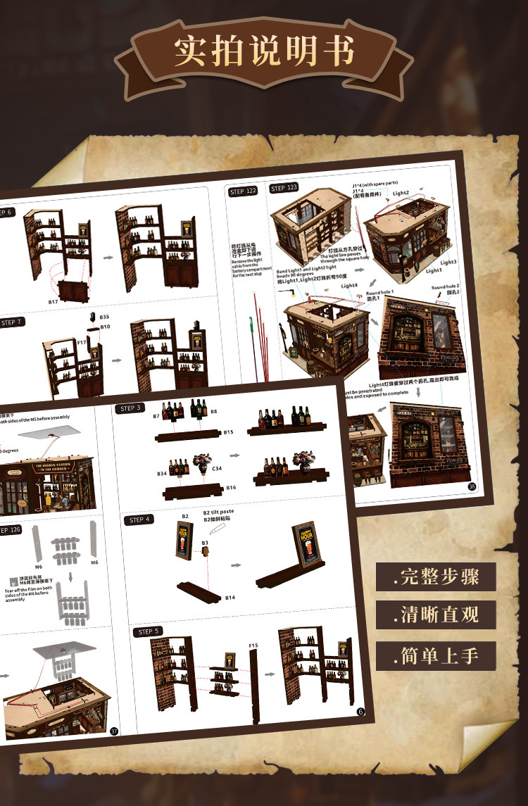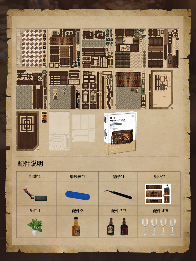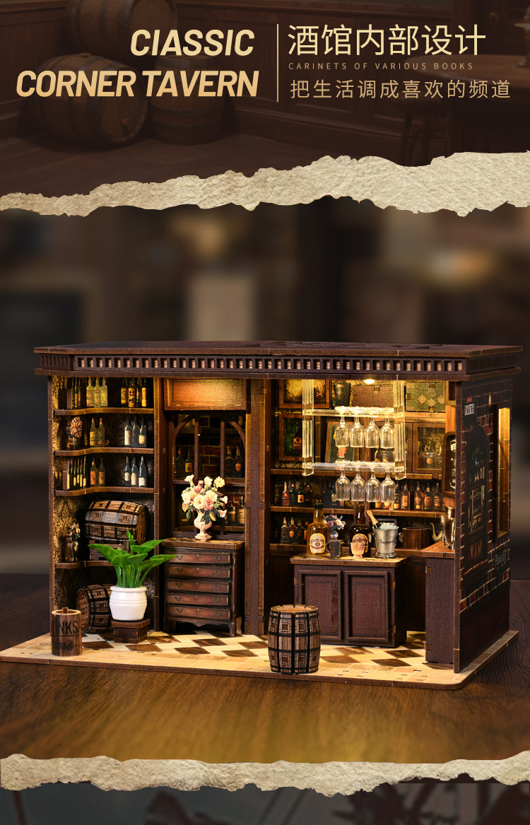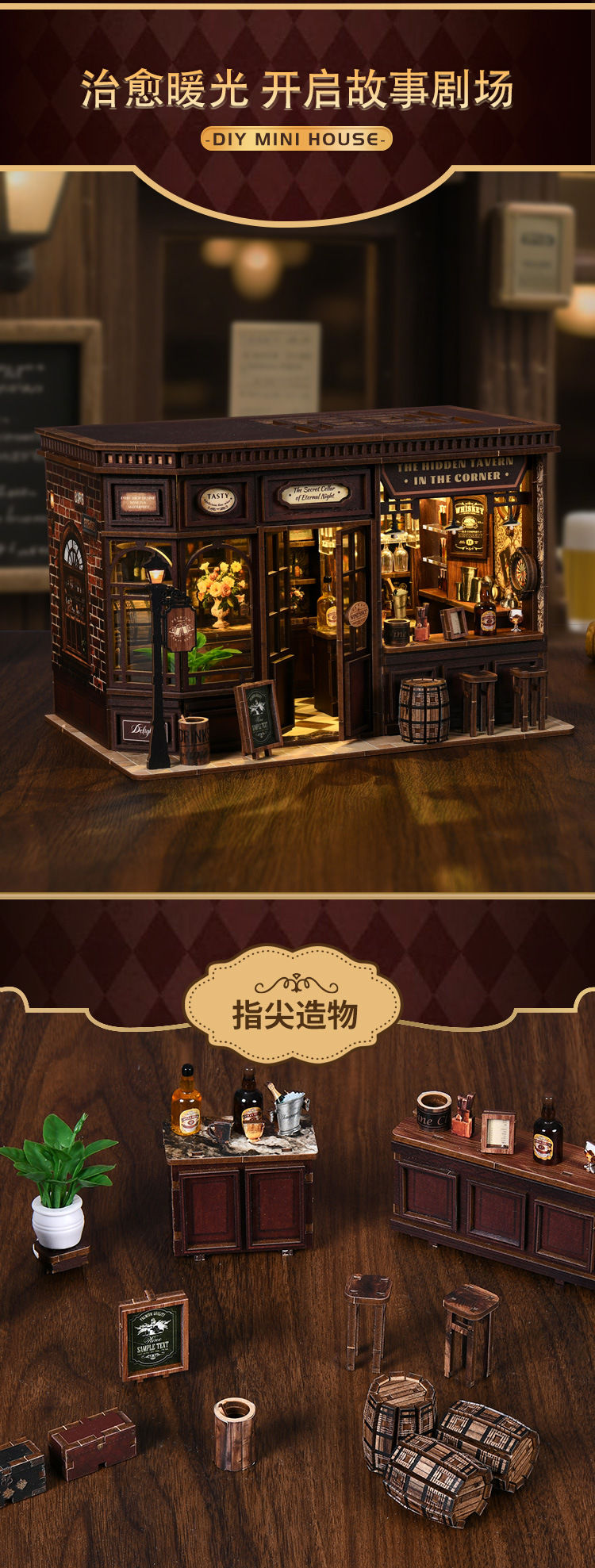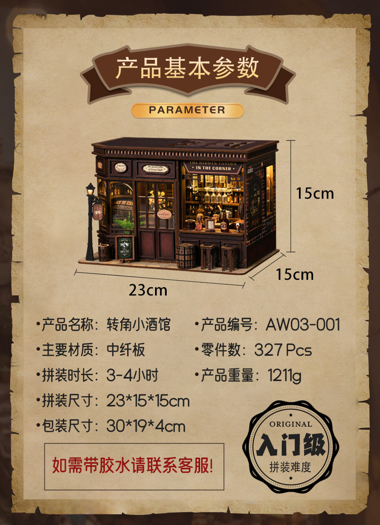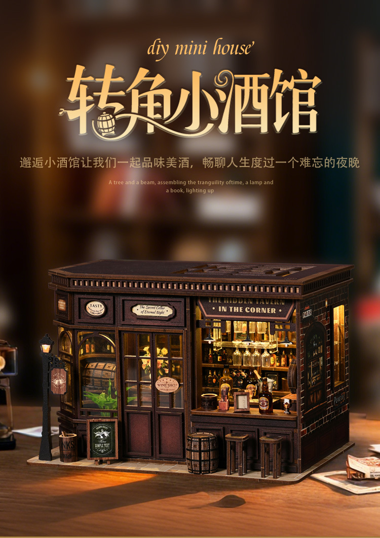 코너 비스트로 복고풍 유럽 건물 손으로 조립한 미니어처 하우스 크리 에이 티브 장난감 소년 선물스토어 가기