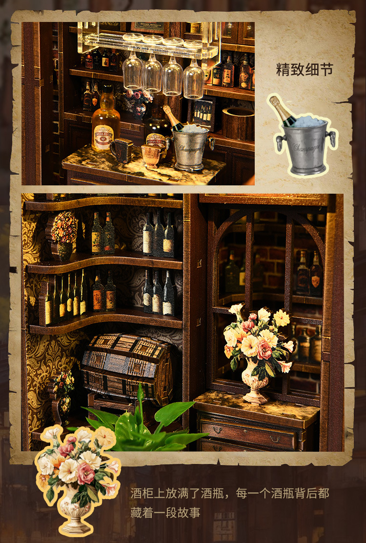 코너 비스트로 복고풍 유럽 건물 손으로 조립한 미니어처 하우스 크리 에이 티브 장난감 소년 선물