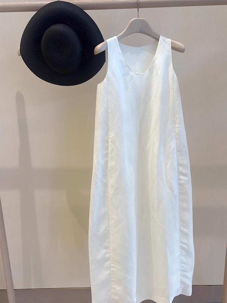 CHAO 등급 추천! 여름 휴가를 위한 Bi! 여성용 화이트 린넨 하이엔드 슬리밍 U 넥 민소매 드레스스토어 가기