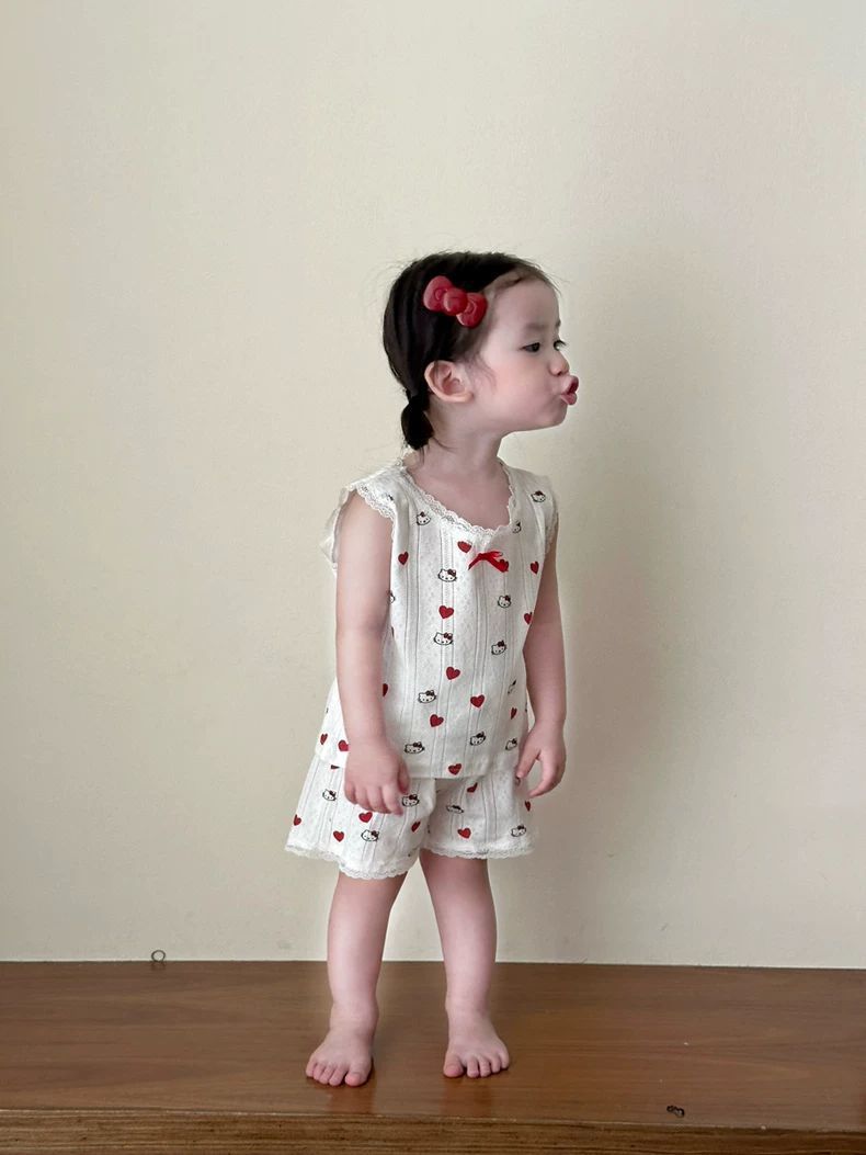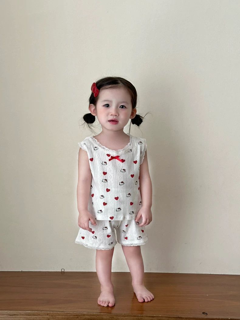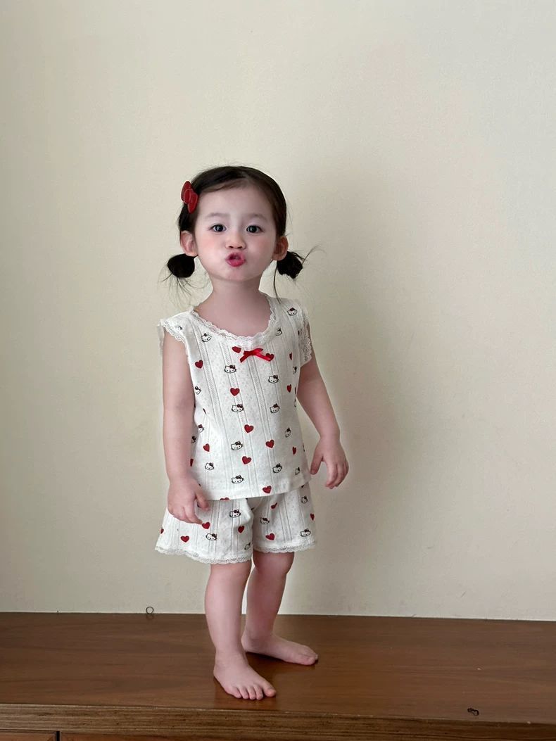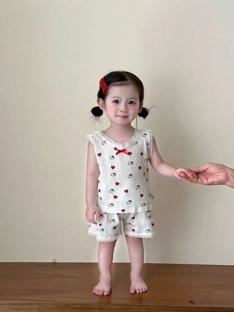 여자 홈웨어 세트 2025 새로운 여름 아기 만화 레이스 조끼 반바지 잠옷 투피스 세트