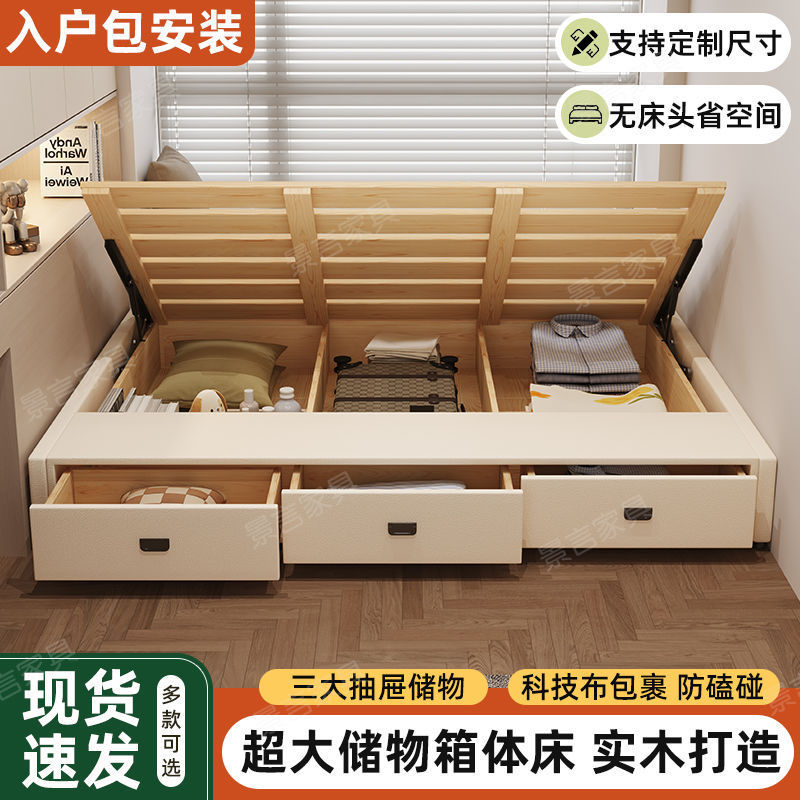 침대 옆이 없는 현대적인 미니멀리스트 행 뼈대 크기 다다미 침실 공기압 저장 침실 단단한 나무 침대 공장 도매스토어 가기