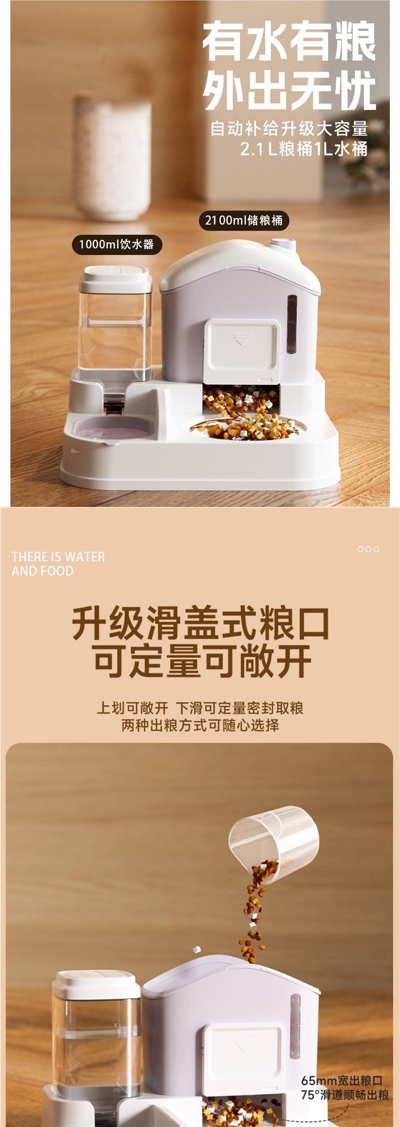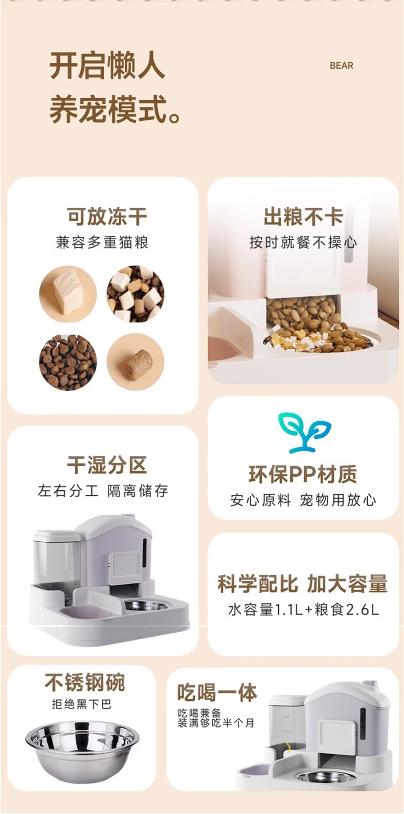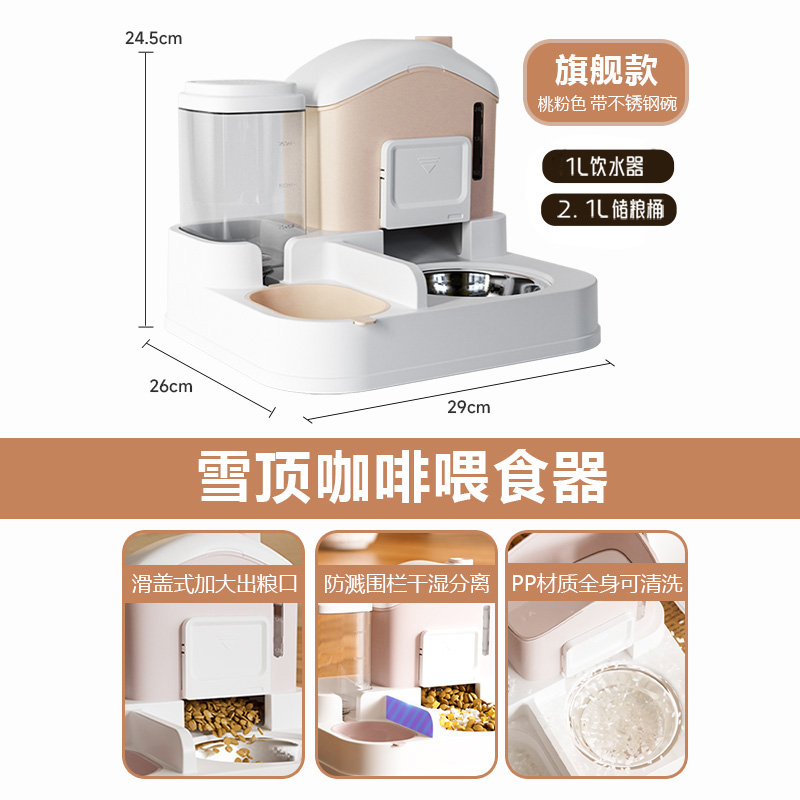 • 피치 핑크 + 스테인리스 그릇 [곡물 조절 가능, 청소 용이]