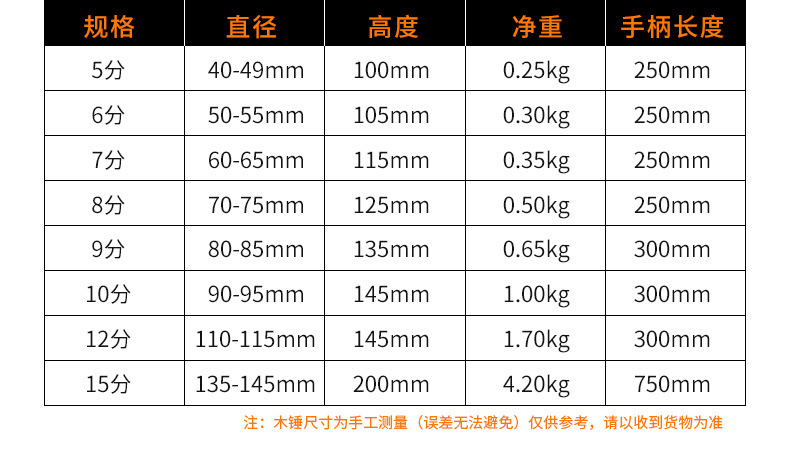 • 페인트가 포함된 중형 및 대형 로즈우드 해머(65MM)
