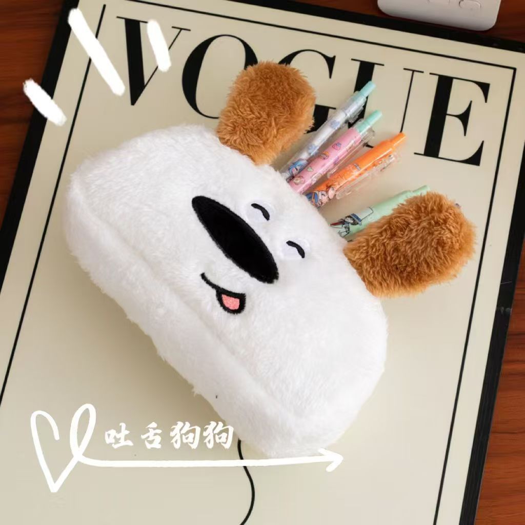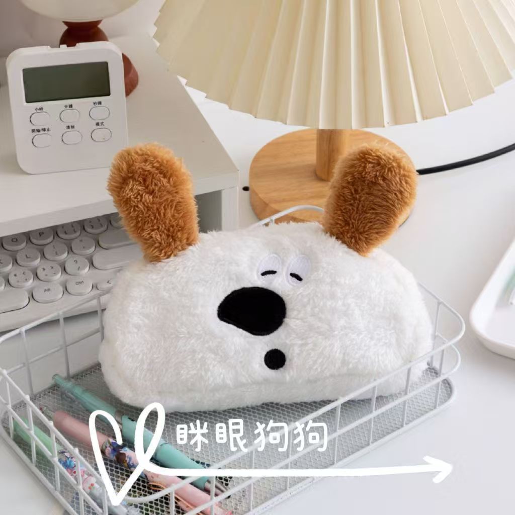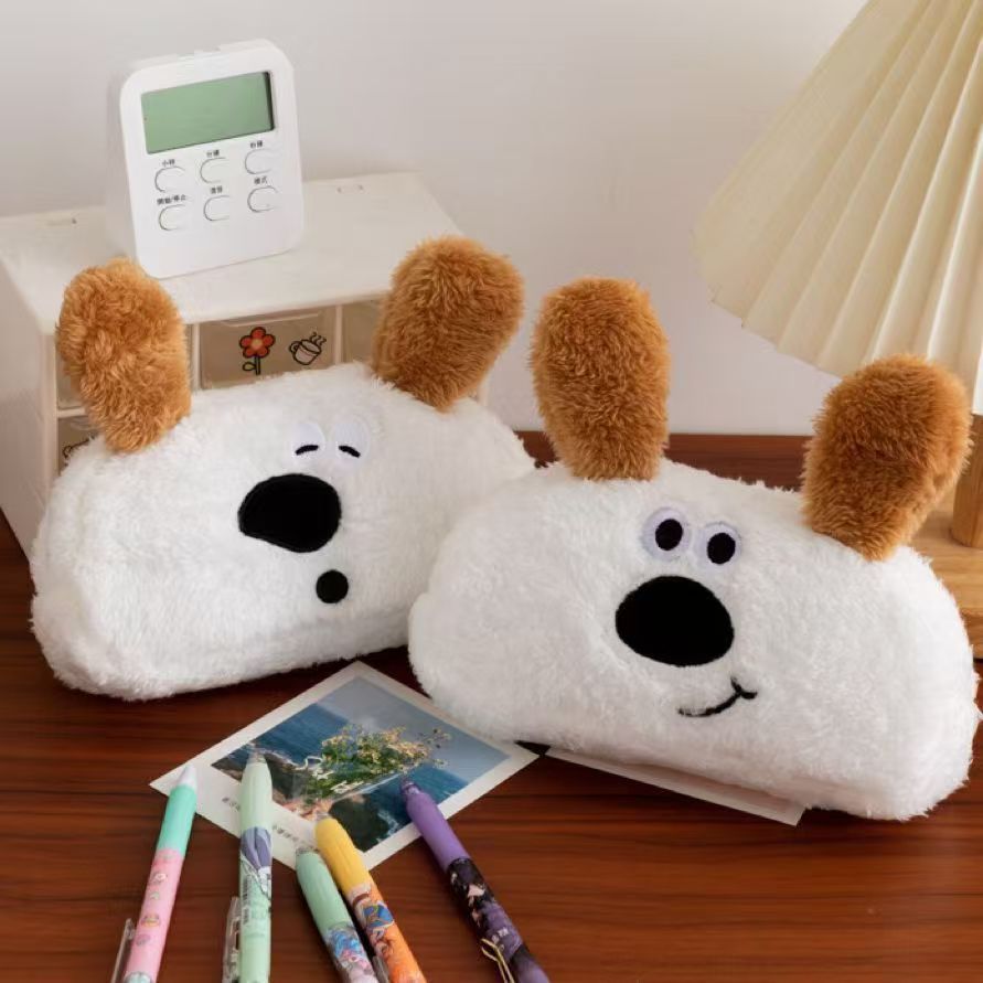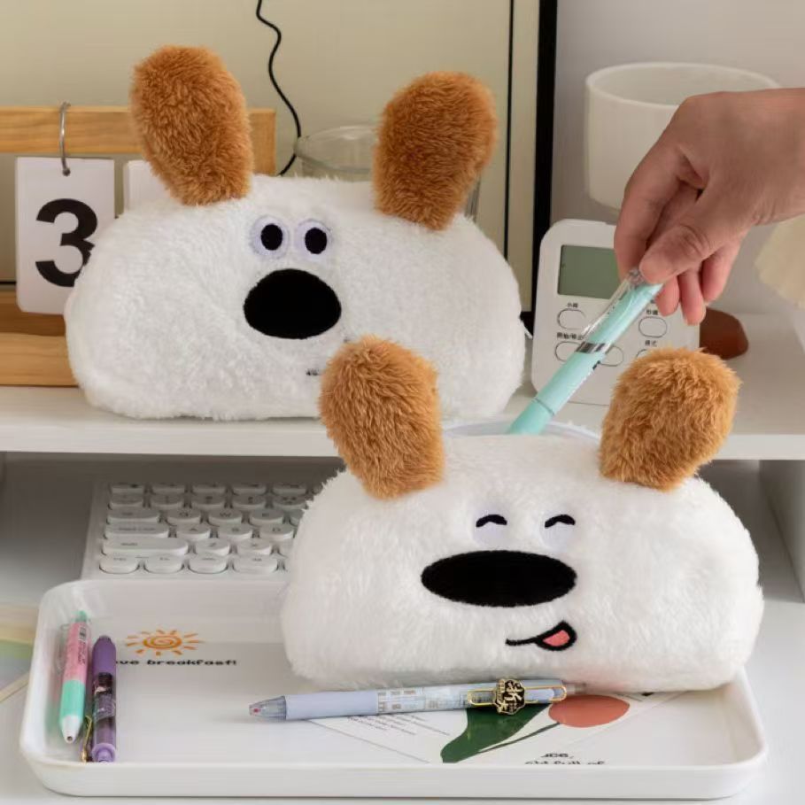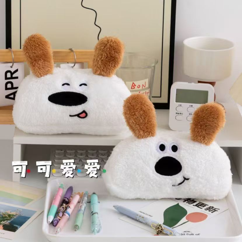 귀여운 강아지 플러시 펜 가방, 고급스러운 대용량 문구 보관 가방, ins 스타일 학생 소녀 하트 문구 상자스토어 가기