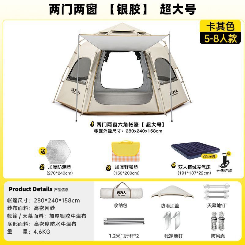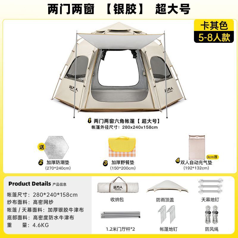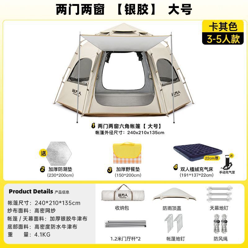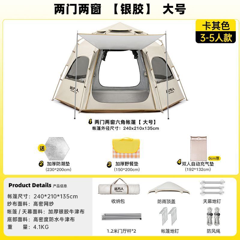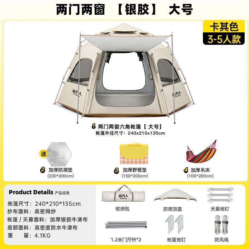 완전 자동 텐트 야외 캠핑 야간 캠핑 장비 두꺼운 실내 공원 가을 겨울 설치가 필요 없는 방수 장비스토어 가기