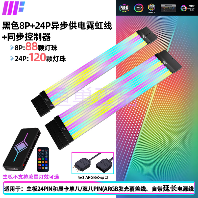 • [검정색: 동기화] 마더보드 24P + 그래픽 카드 단일 8/듀얼 8P + 동기화 컨트롤러