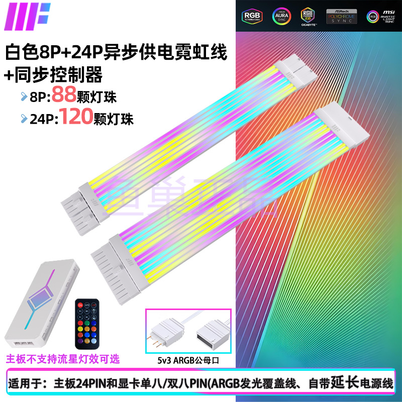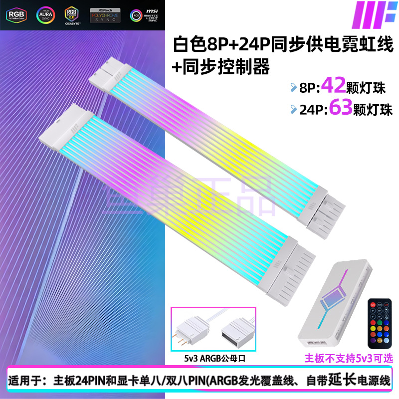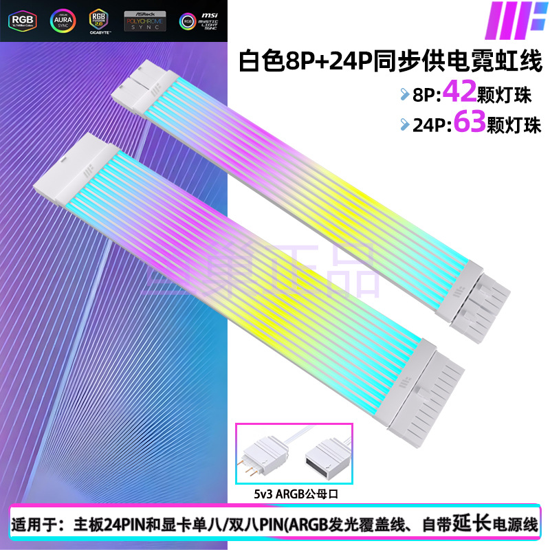 그래픽 카드 네온 라이트 라인 8p 마더 보드 24Pin 전원 네온 연장 케이블 ARGB 라이트 스트립 컴퓨터 케이스 장식스토어 가기
