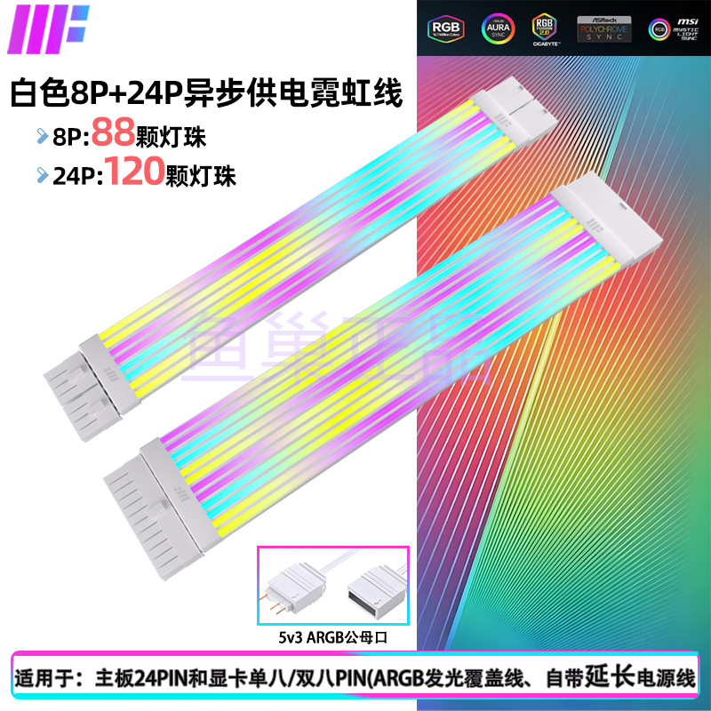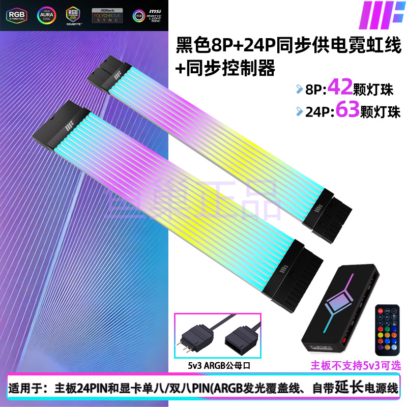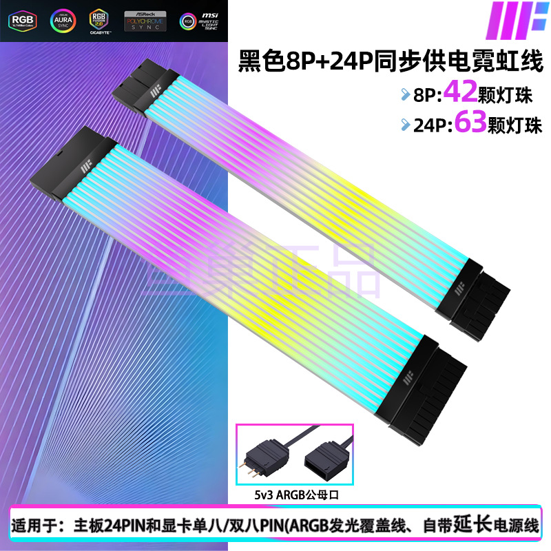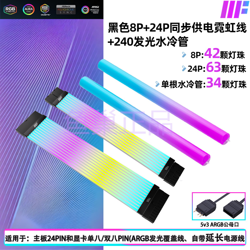 그래픽 카드 네온 라이트 라인 8p 마더 보드 24Pin 전원 네온 연장 케이블 ARGB 라이트 스트립 컴퓨터 케이스 장식