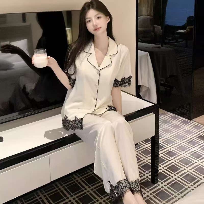 여성용 아이스 실크 잠옷 여름 신상품 럭셔리 4피스 세트 끈팬츠와 함께 고급스러운 홈웨어스토어 가기
