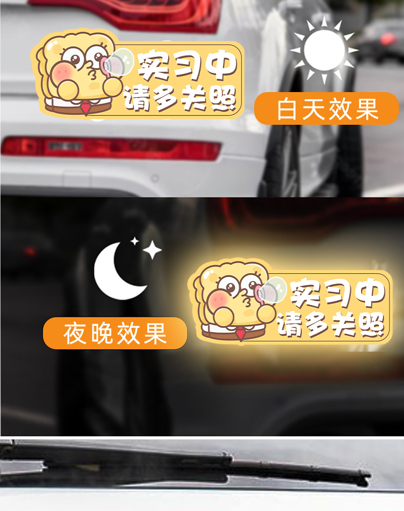 실습 여자 운전자 실습 자석 흡입 초보자 도로 자동차 스티커 여성을위한 자동차 방수 태양 보호 반사 바디 장식 스티커