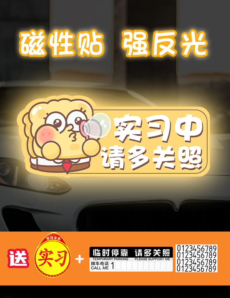 실습 여자 운전자 실습 자석 흡입 초보자 도로 자동차 스티커 여성을위한 자동차 방수 태양 보호 반사 바디 장식 스티커스토어 가기