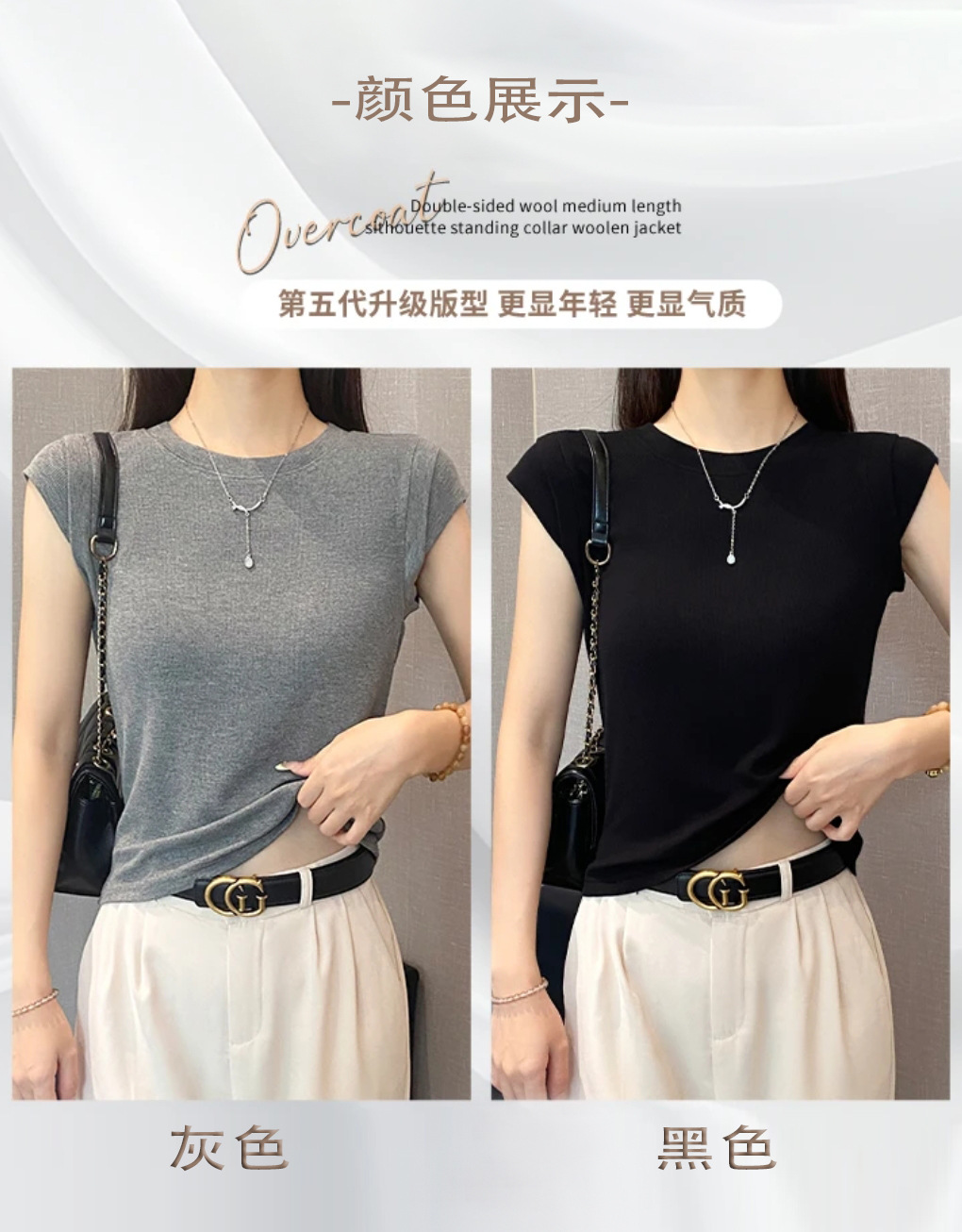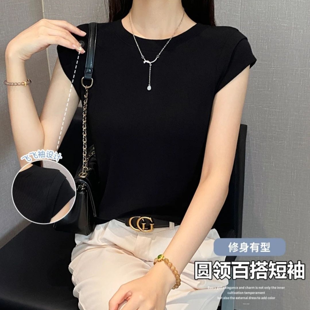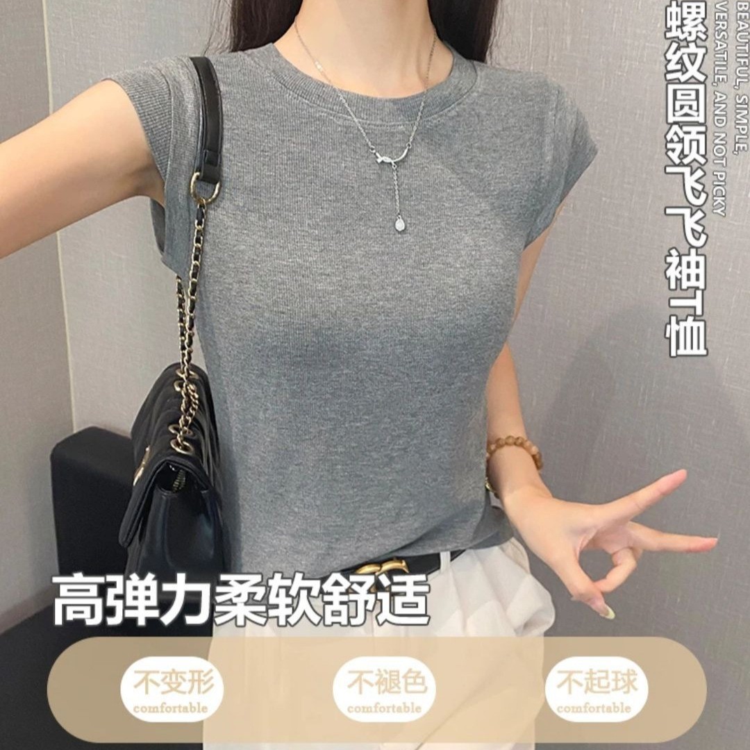여름 여성용 스레드 라운드 넥 플라잉 슬리브 티셔츠, 슬림핏 밑단 셔츠, 다용도 슬리밍 반팔 탑, 다용도