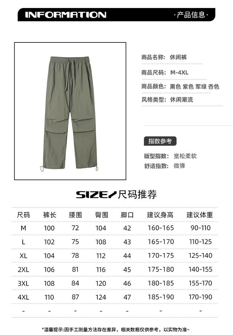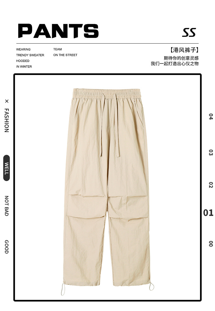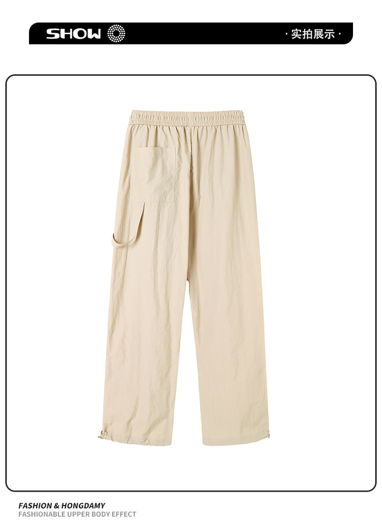 아메리칸 워크웨어 캐주얼 긴바지 남아 여름 아이스 실크 얇은 속건성 드레이프 스트레이트 와이드 레그 파라트리저 바지스토어 가기
