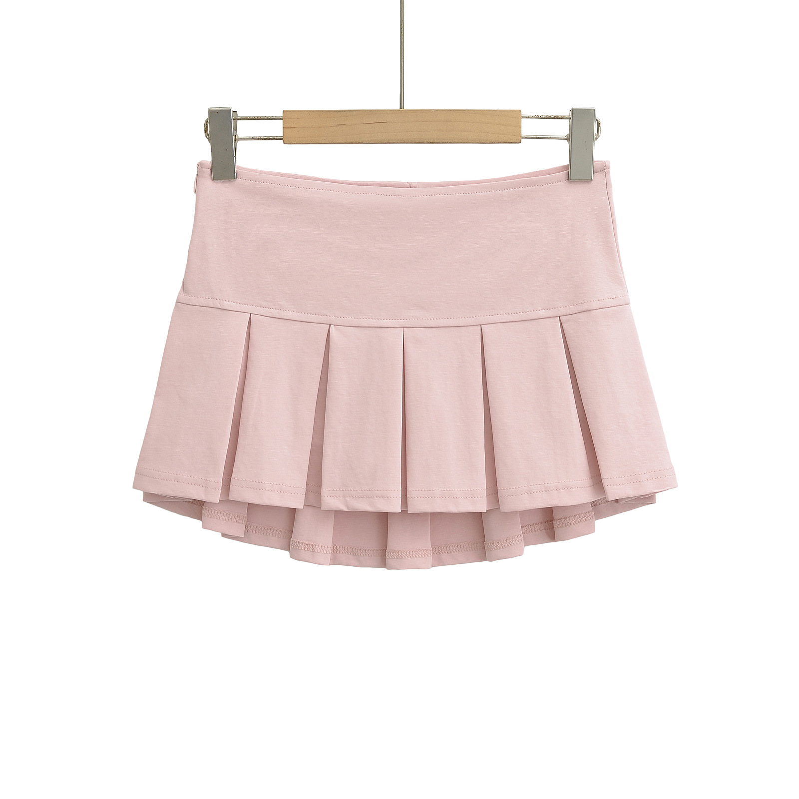 아메리칸 핫걸 플리츠 스커트, 퓨어 러블리 디자인, A라인 앞이 짧고 뒤가 긴 스커트, 미니스커트