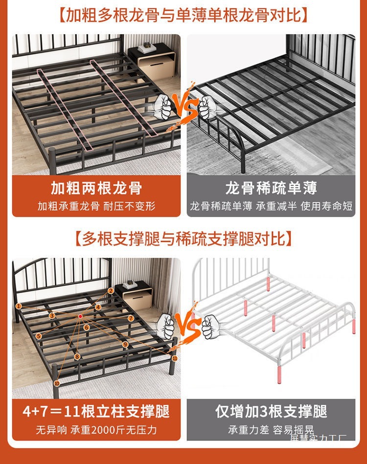 북유럽 철제 침대 철제 침대 1.5m 임대실 철제 프레임 침대 12 싱글 침대 인터넷 연예인 더블 침대 무음 모던 1.8m스토어 가기