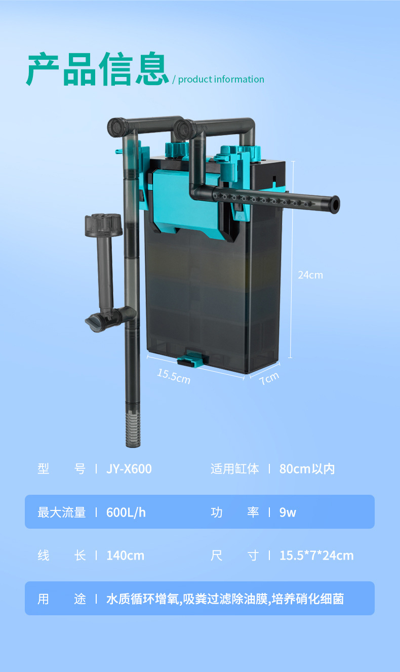 Jingye 수조 벽걸이 형 필터 정수 소형 자동 외부 필터 버킷 순환 워터 펌프 필터 상자스토어 가기