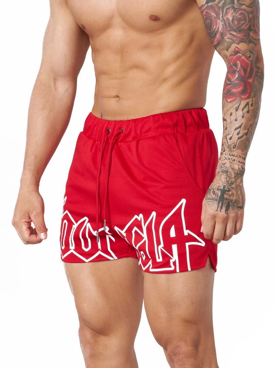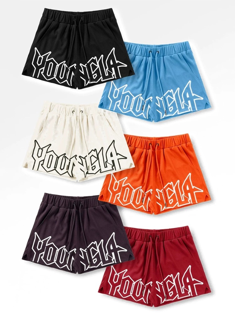 YOUNGLA 미국 트렌디 스포츠 피트니스 반바지 남성 트레이닝 3점 바지 여름 속건성 통기성 메쉬 비치 바지