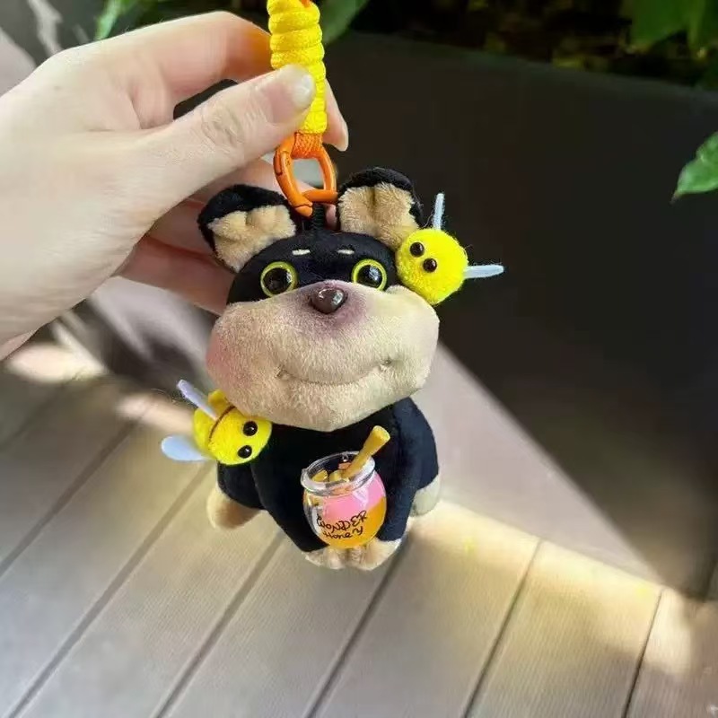 꿀벌 개 봉제 인형 가방 학교 가방 펜던트 키 체인 쥬얼리 펜던트 만화 귀여운 강아지 펜던트