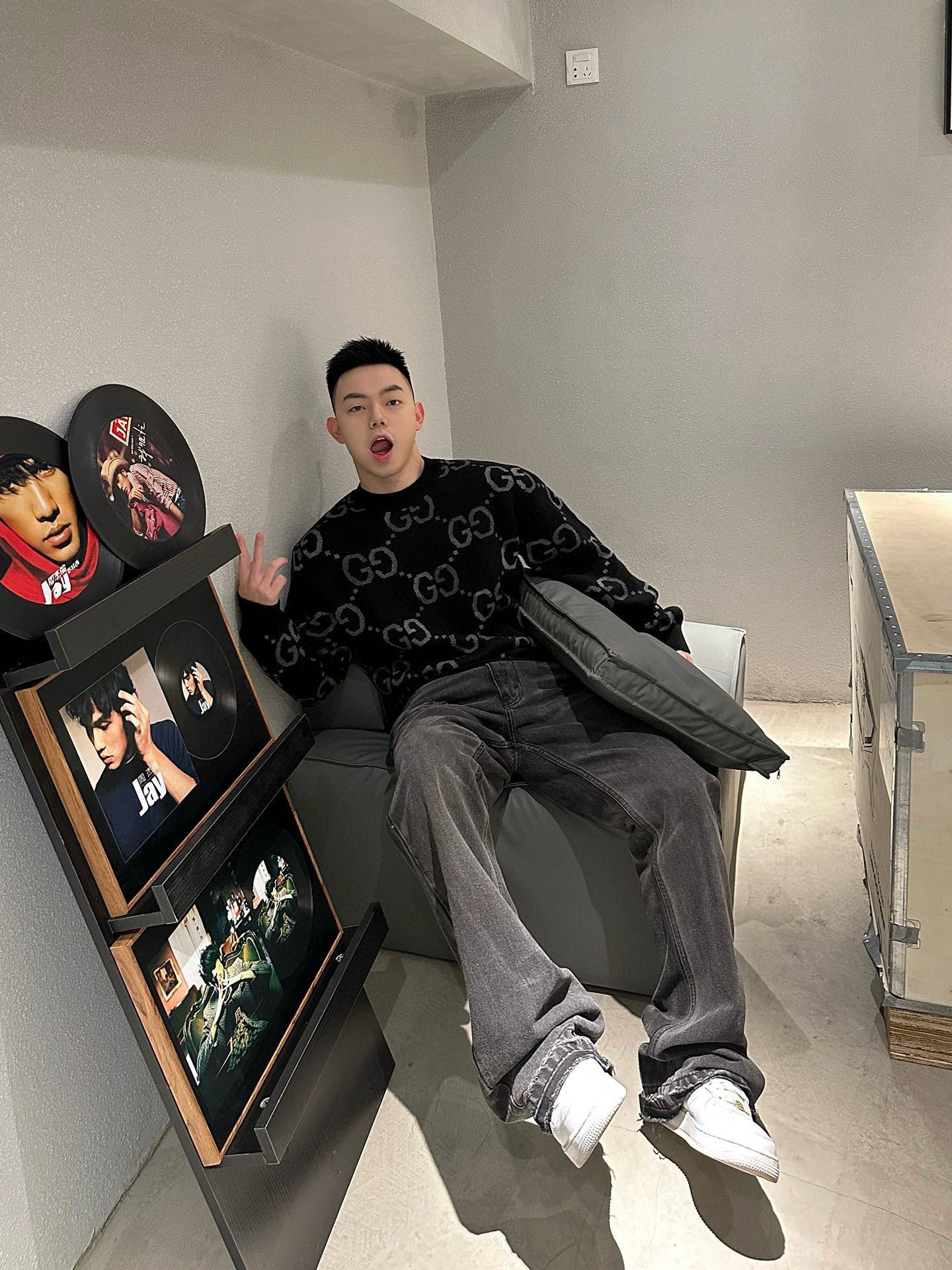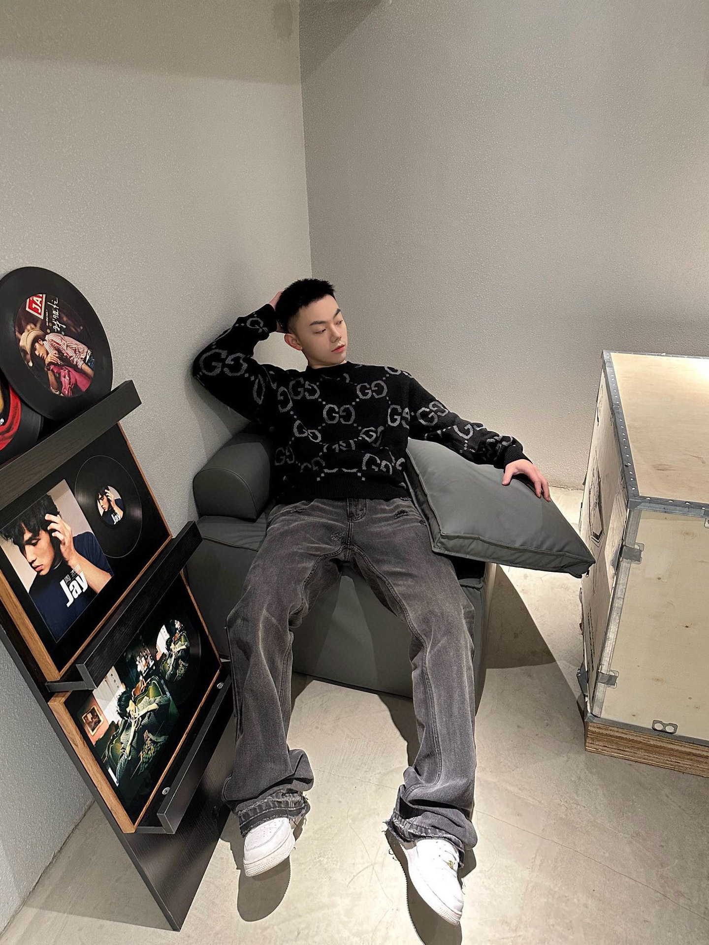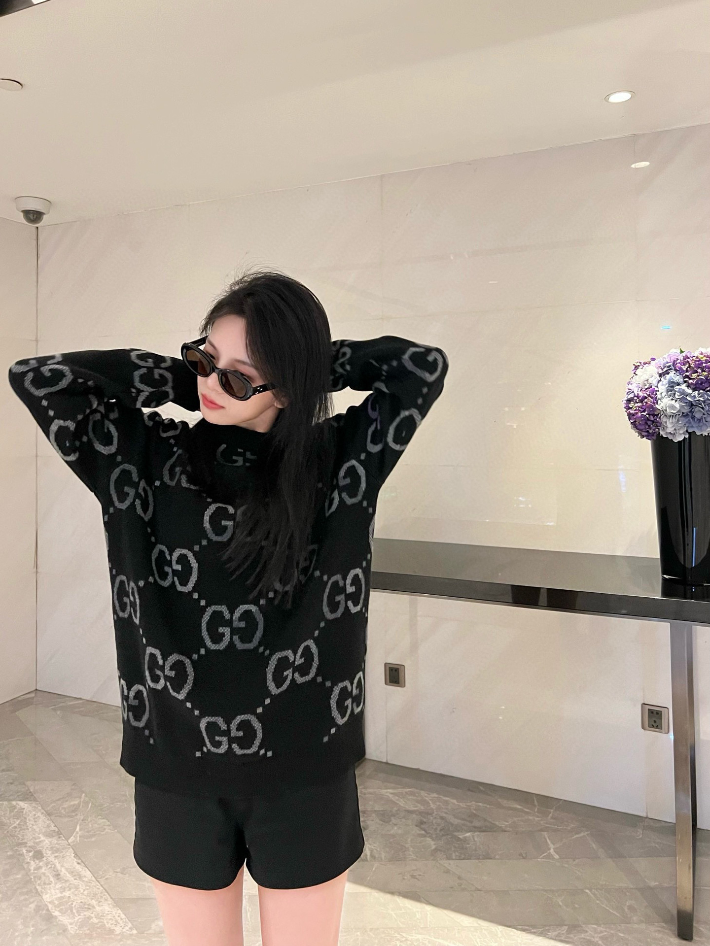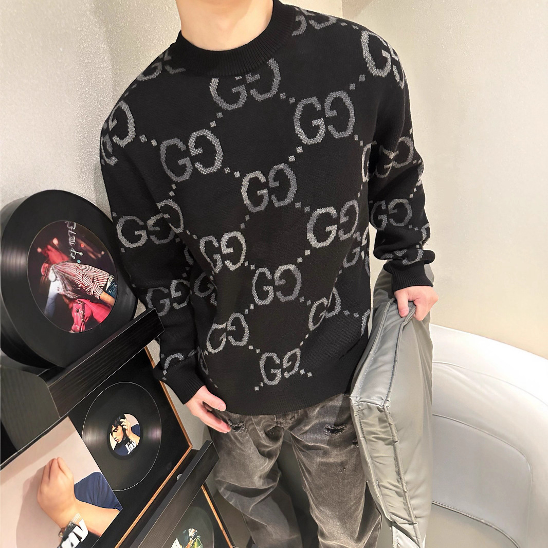 유럽국경 간 경계를 넘어 가을 겨울 남성용 가벼운 럭셔리 신제품 G 문자 전체 프린트 자카드 라운드 넥 풀오버 스웨터를 공급합니다.스토어 가기
