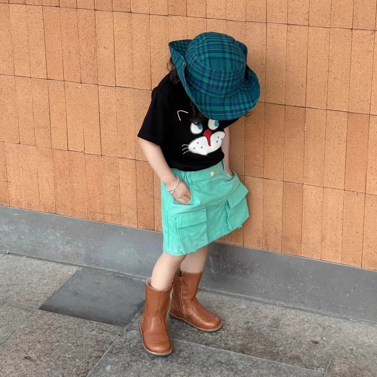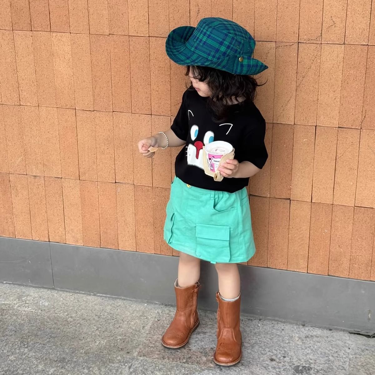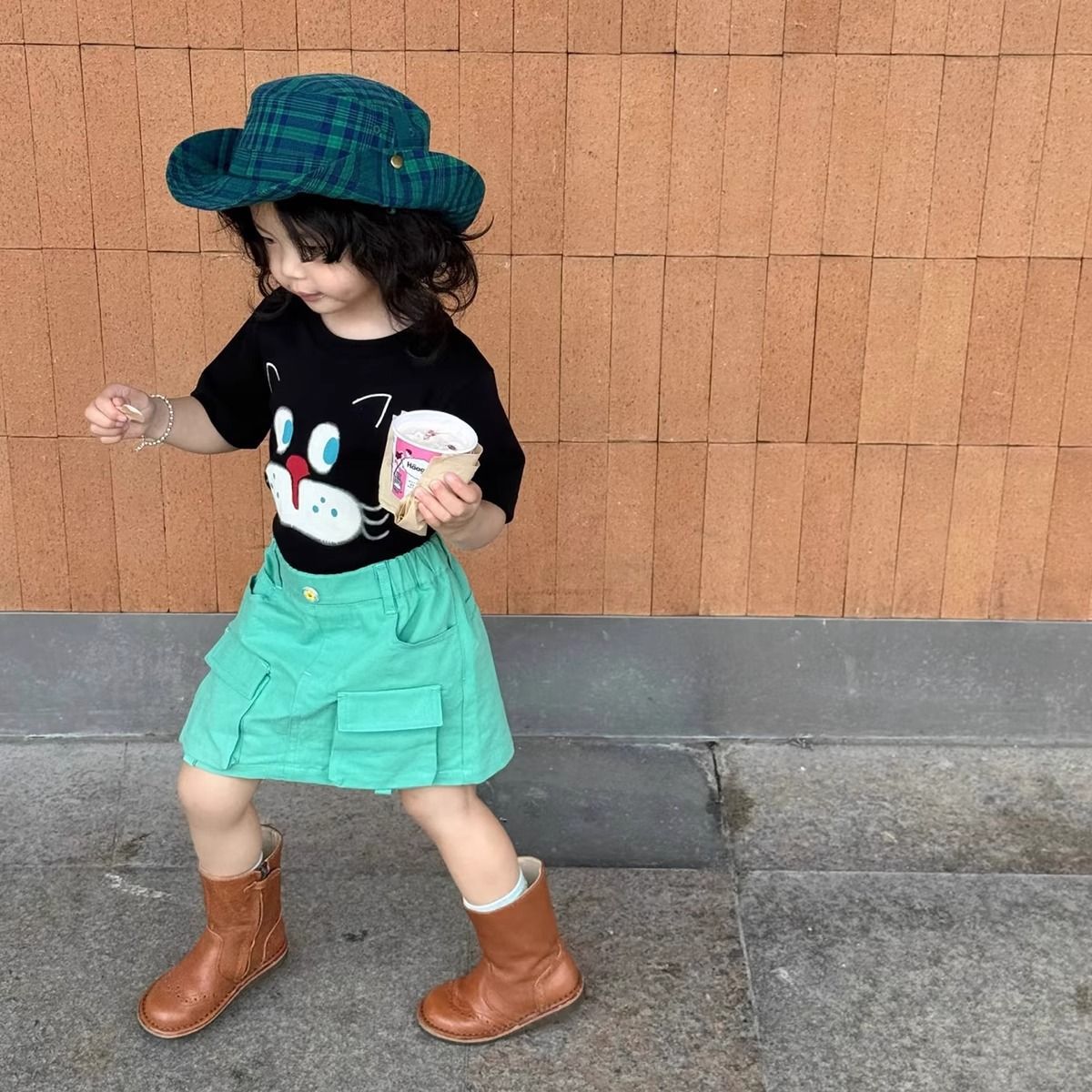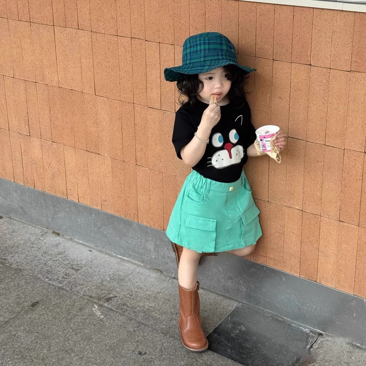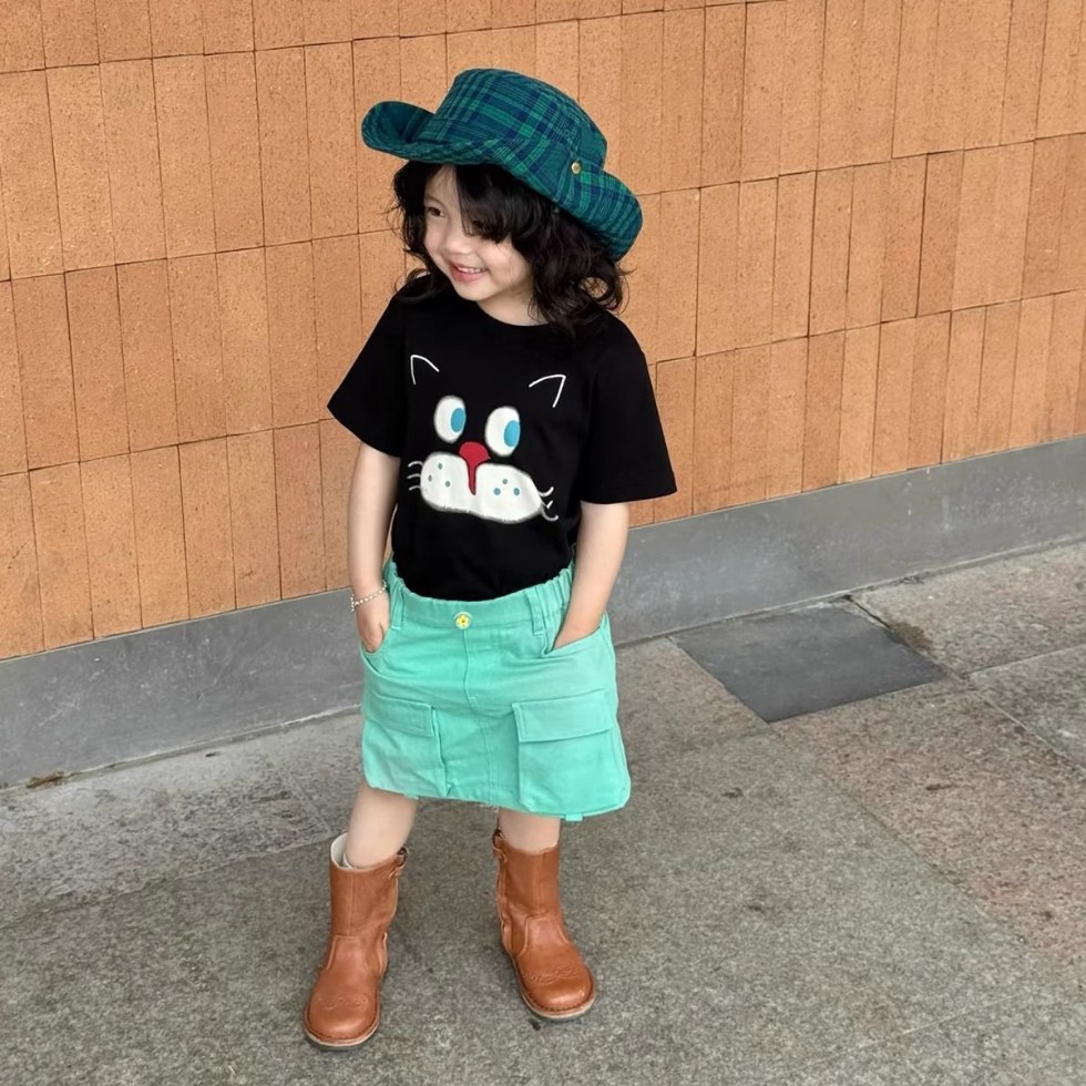 여아 의류 한국어 버전 세련된 만화 프린트 라운드 넥 반팔 티셔츠 아동용 여름 신작 순면 베이비 탑스토어 가기