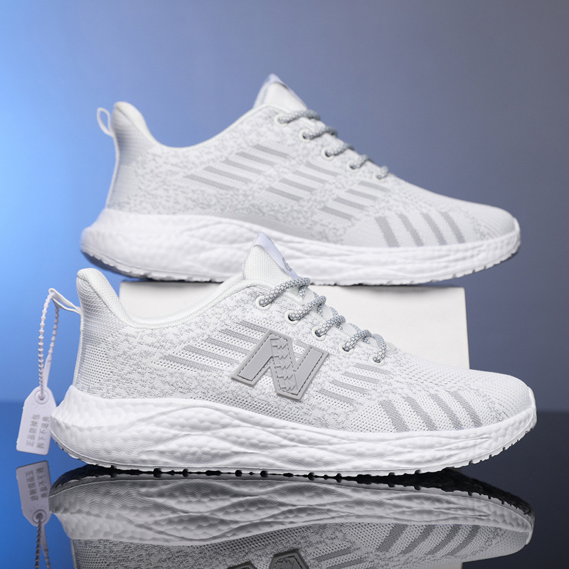 커플을 위한 새로운 여름 플라이 니트 통기성 캐주얼 흰색 신발, 패셔너블한 캐주얼 신발, 가벼운 둥근 발가락 크로스보더 신발, 운동화스토어 가기