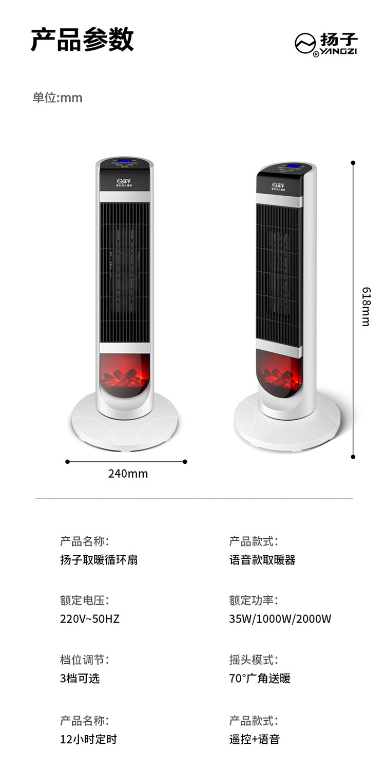 Yangzi 음성 불꽃 히터 가정용 수직 자동 히터 에너지 절약형 고속 가열 전기 히터 선물 도매
