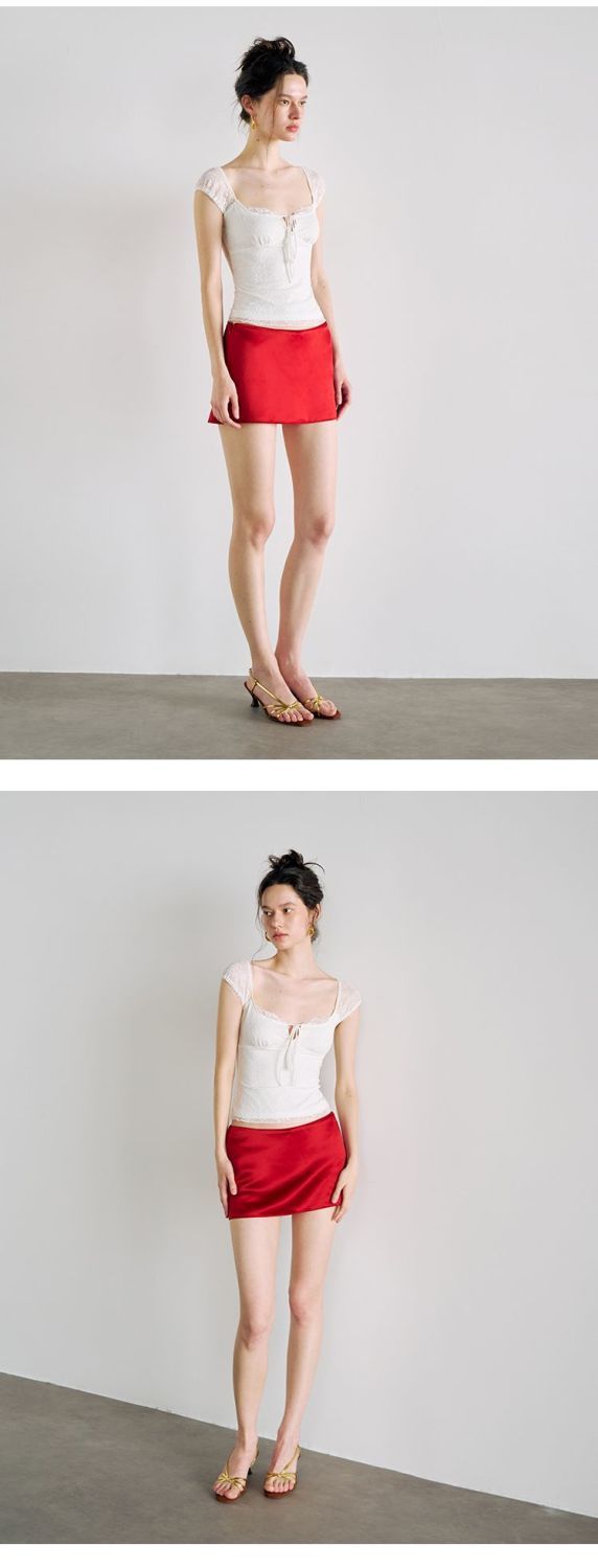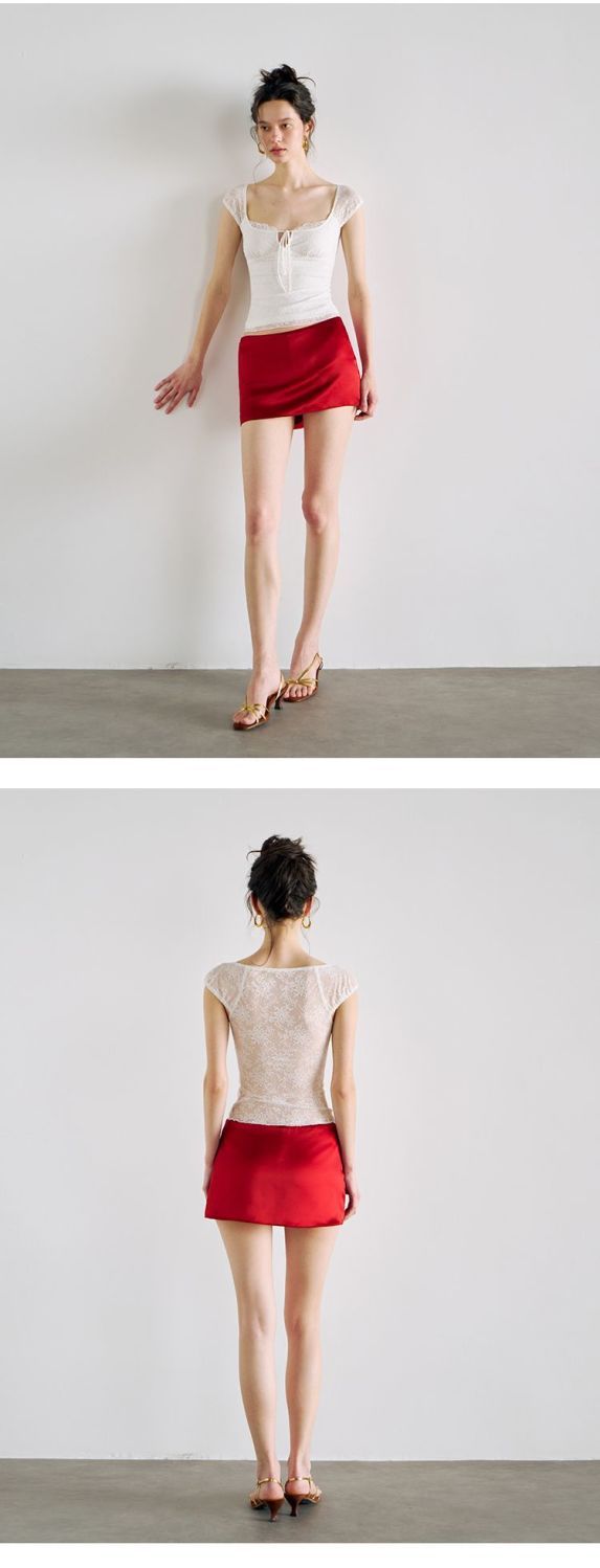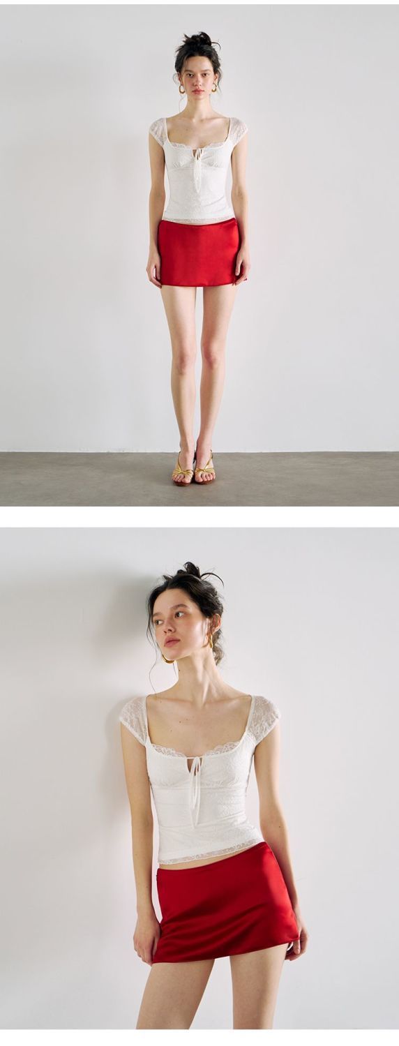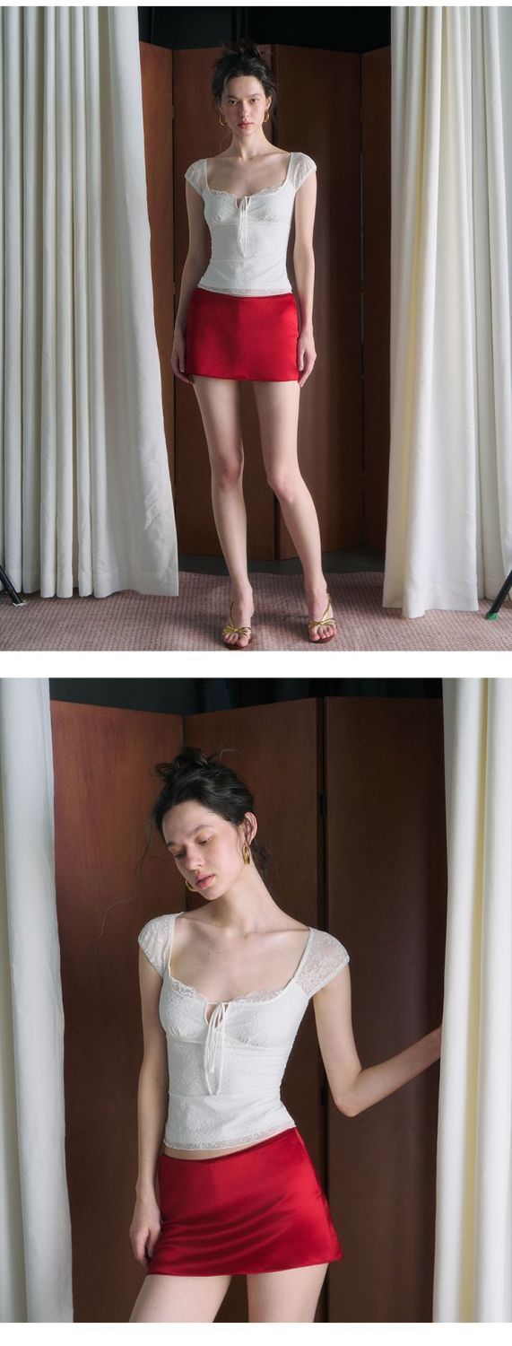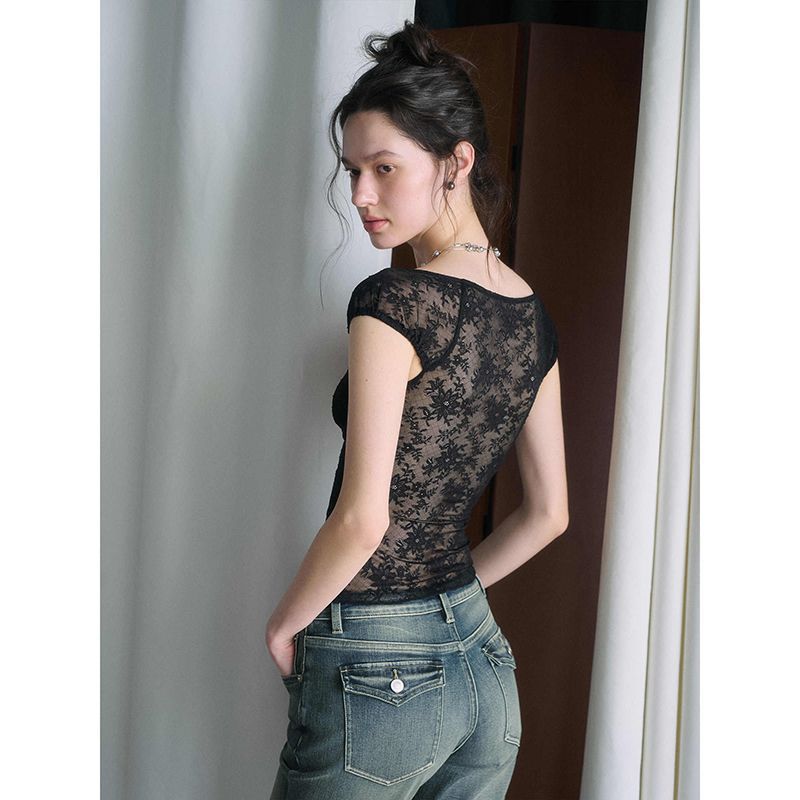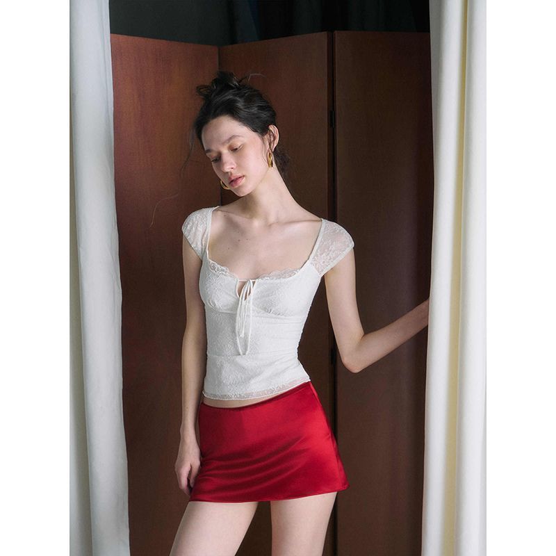 섹시한 핫 소녀 레이스 스플 라이스 오른쪽 어깨 반팔 티셔츠 여성 여름 새로운 슬림 피트 짧은 크롭 탑 트렌디스토어 가기