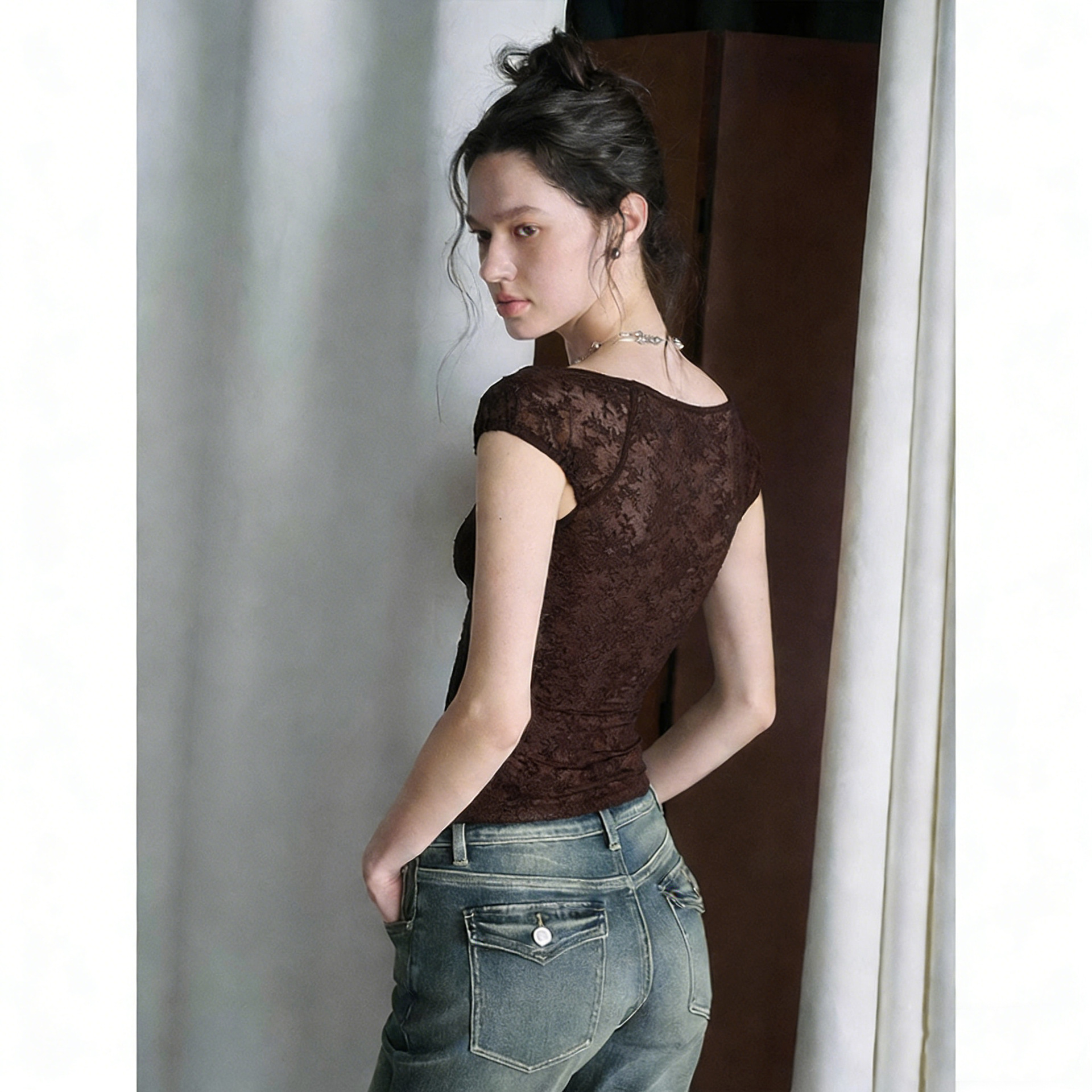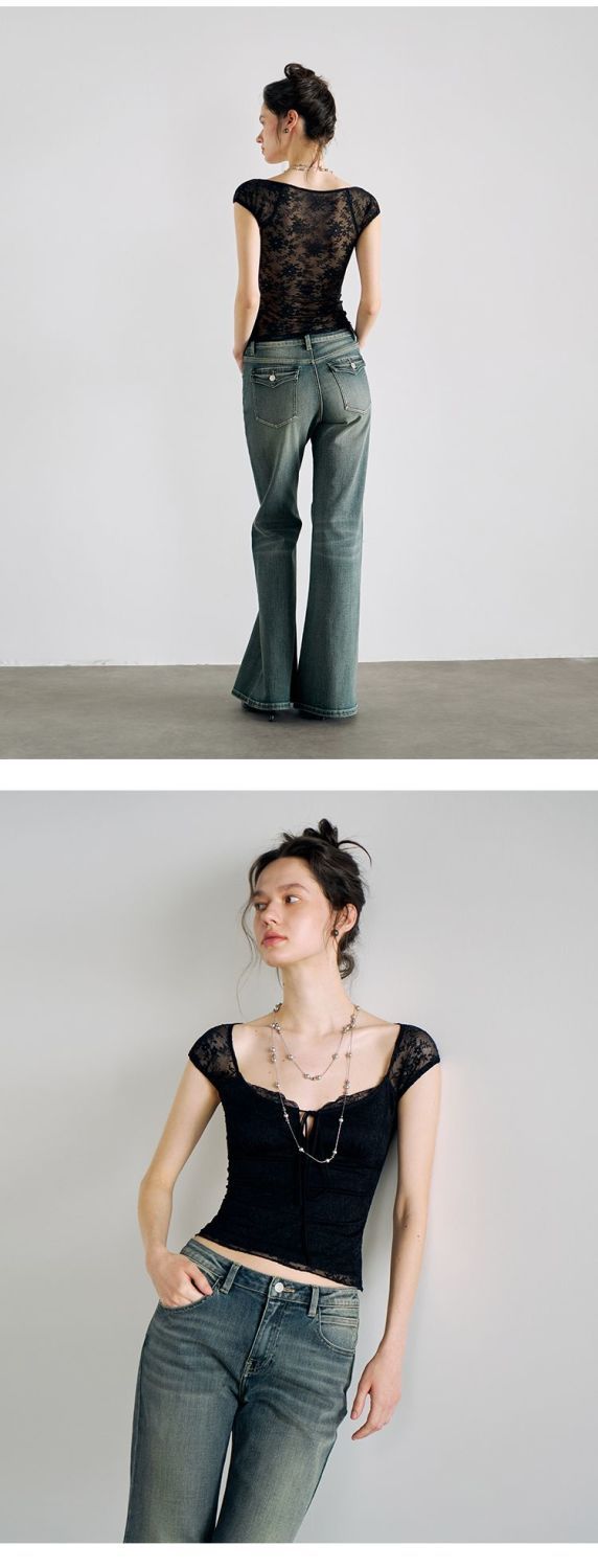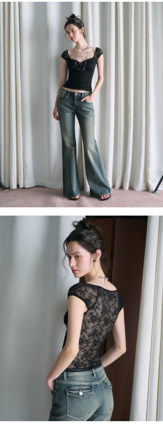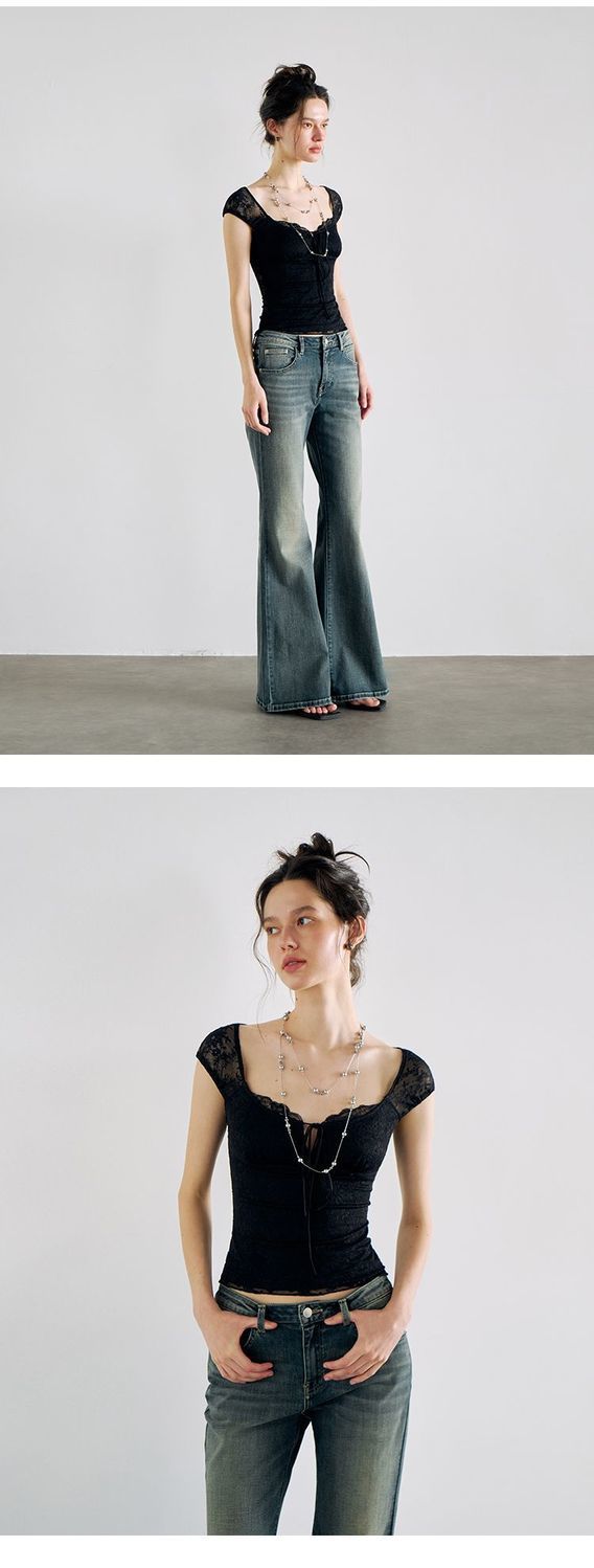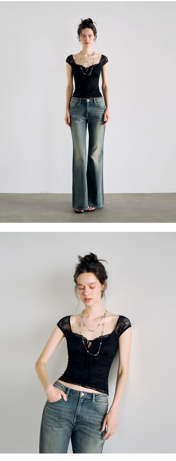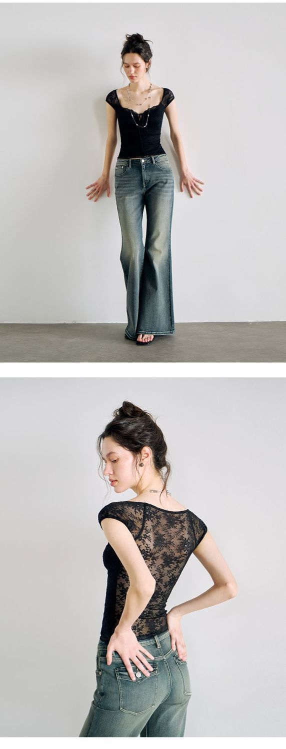 섹시한 핫 소녀 레이스 스플 라이스 오른쪽 어깨 반팔 티셔츠 여성 여름 새로운 슬림 피트 짧은 크롭 탑 트렌디스토어 가기