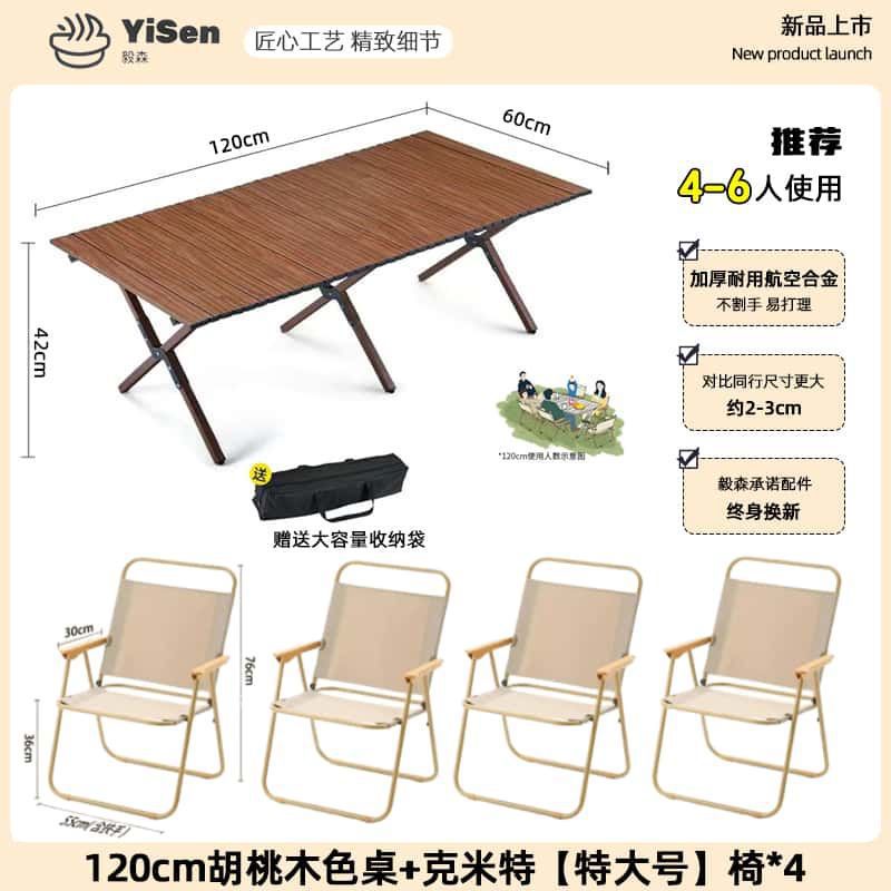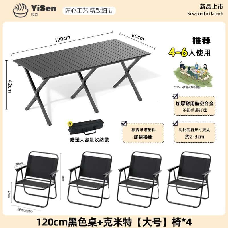 야외 휴대용 접이식 캠핑 테이블과 의자 합금 계란 롤 테이블 피크닉 테이블과 의자 세트 캠핑 용품 장비 테이블