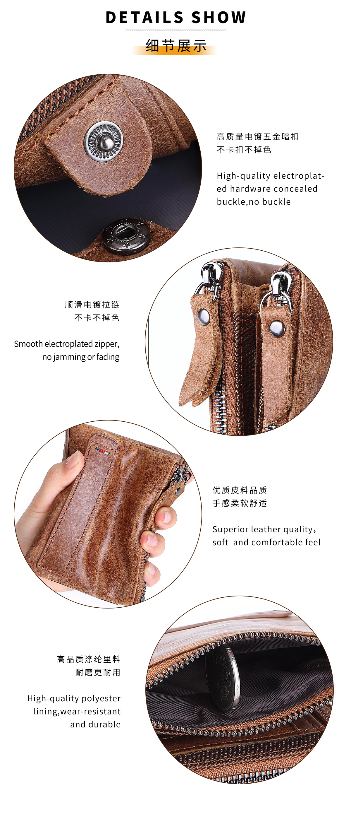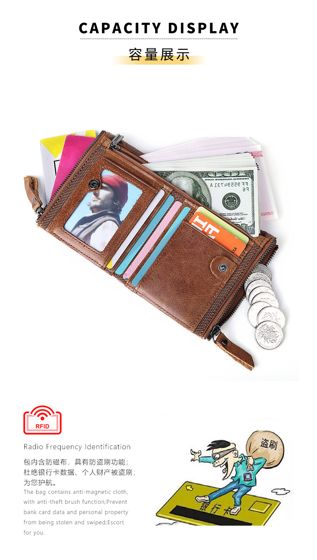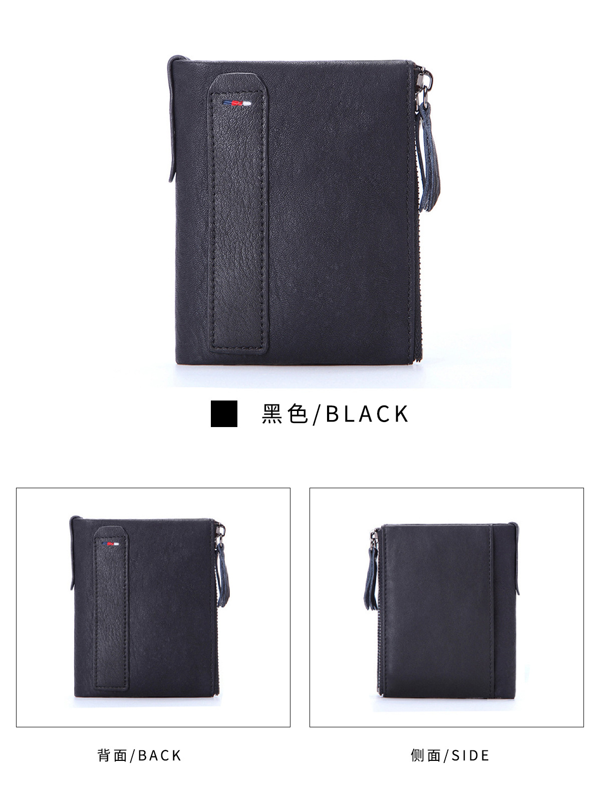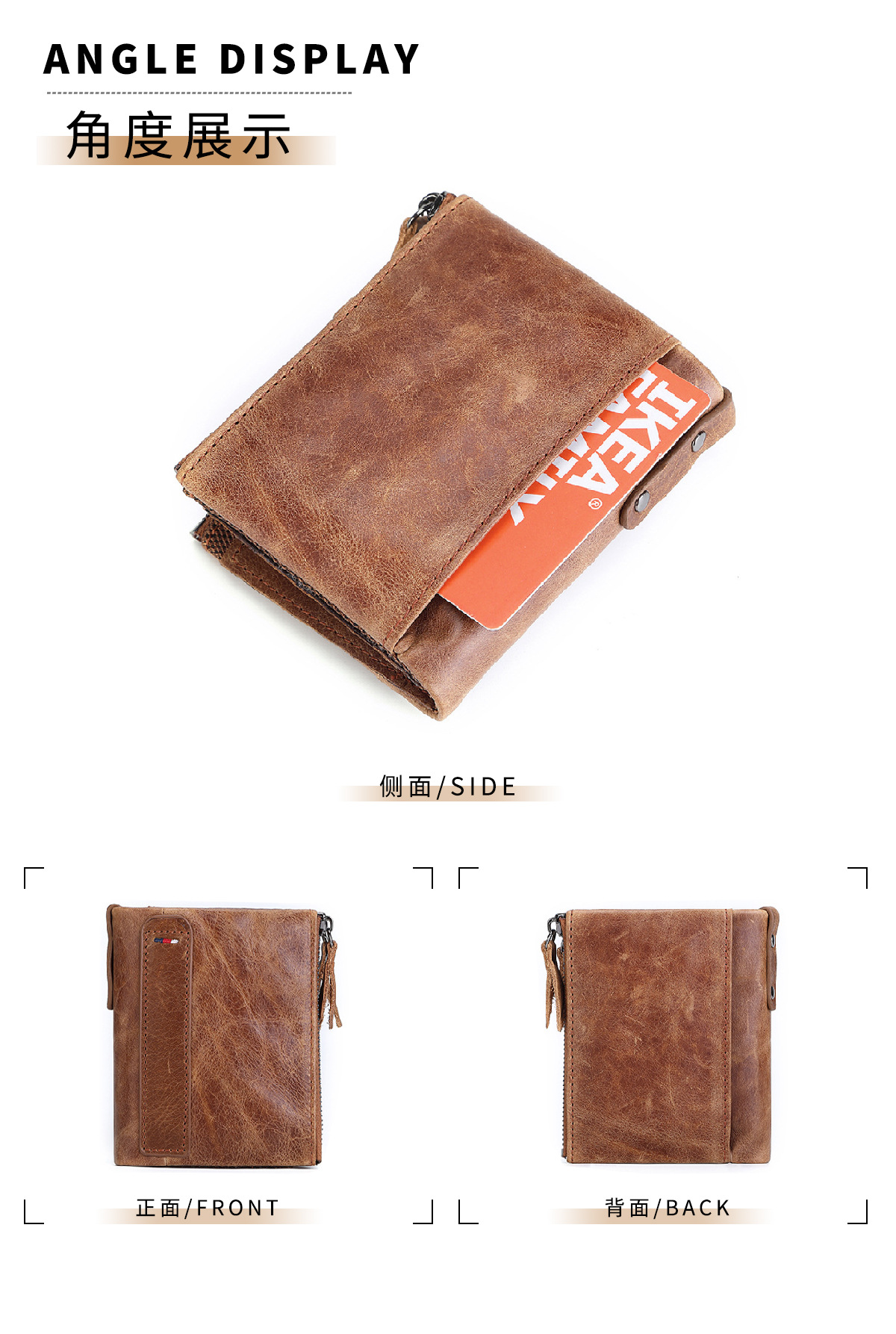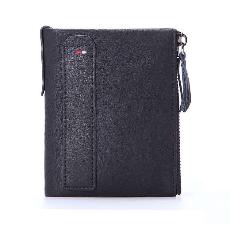 공장 직판 해외 무역 신제품 RFID 가죽 지갑 남성용 짧은 지갑 더블 지퍼 머니클립