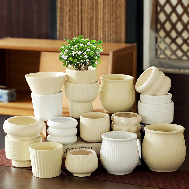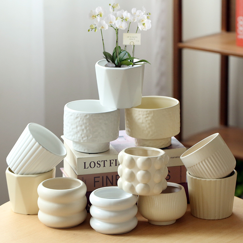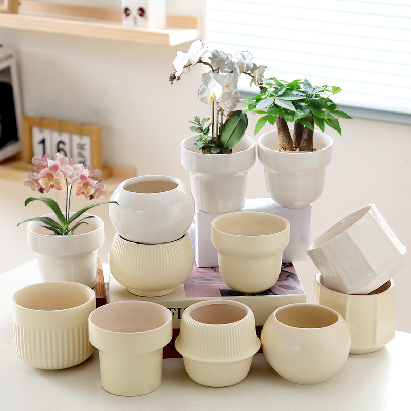 도매 국경 간 라벨링 크림 스타일 세라믹 화분 북유럽 가정용 간단한 빛 럭셔리 나비 난초 다육 녹색 식물 작은 크기